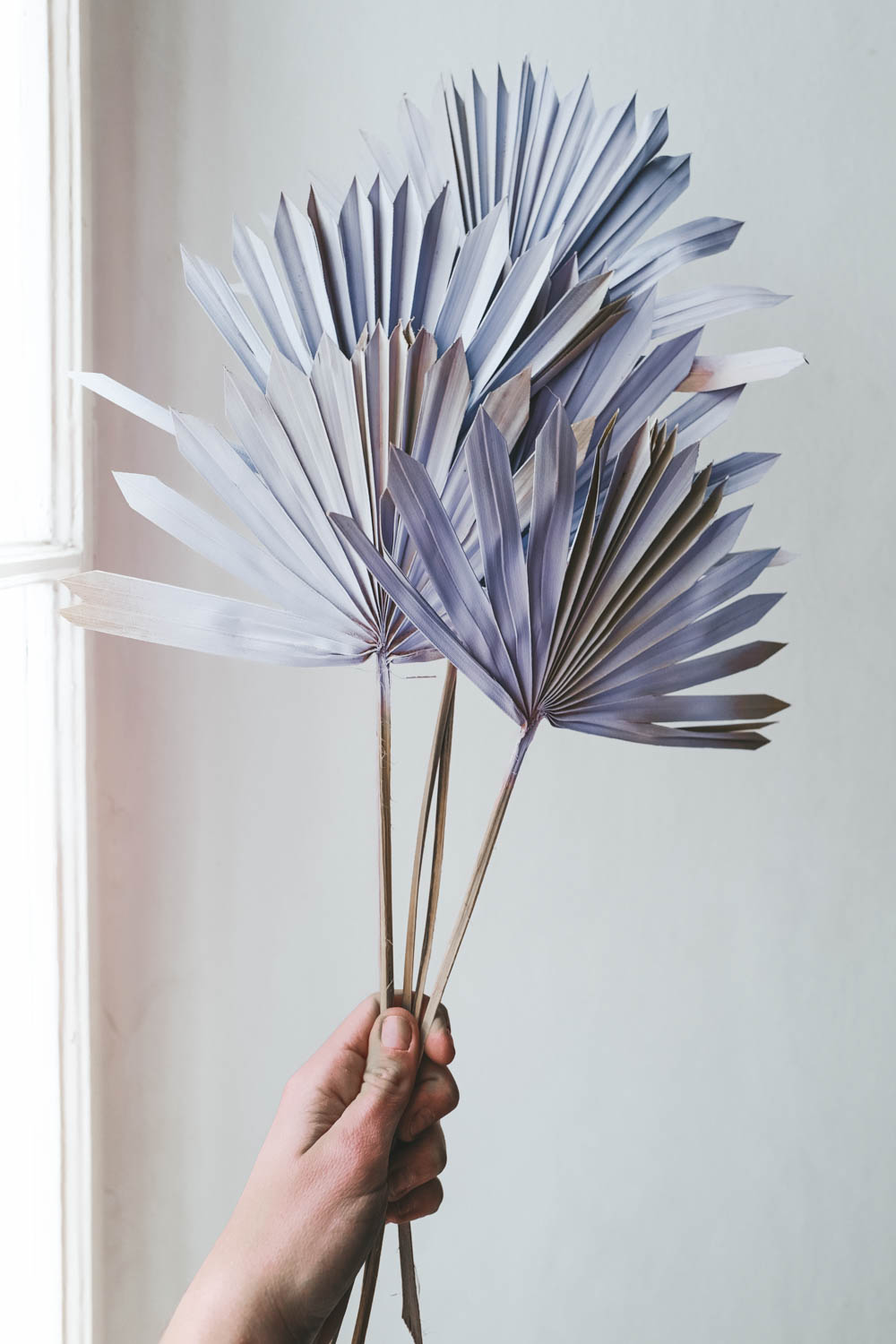 Pastell blaue Palmenblätter für den natural Eye-Catcher Look in deiner Wohnung. Perfekt zu drapieren in einer Vase.