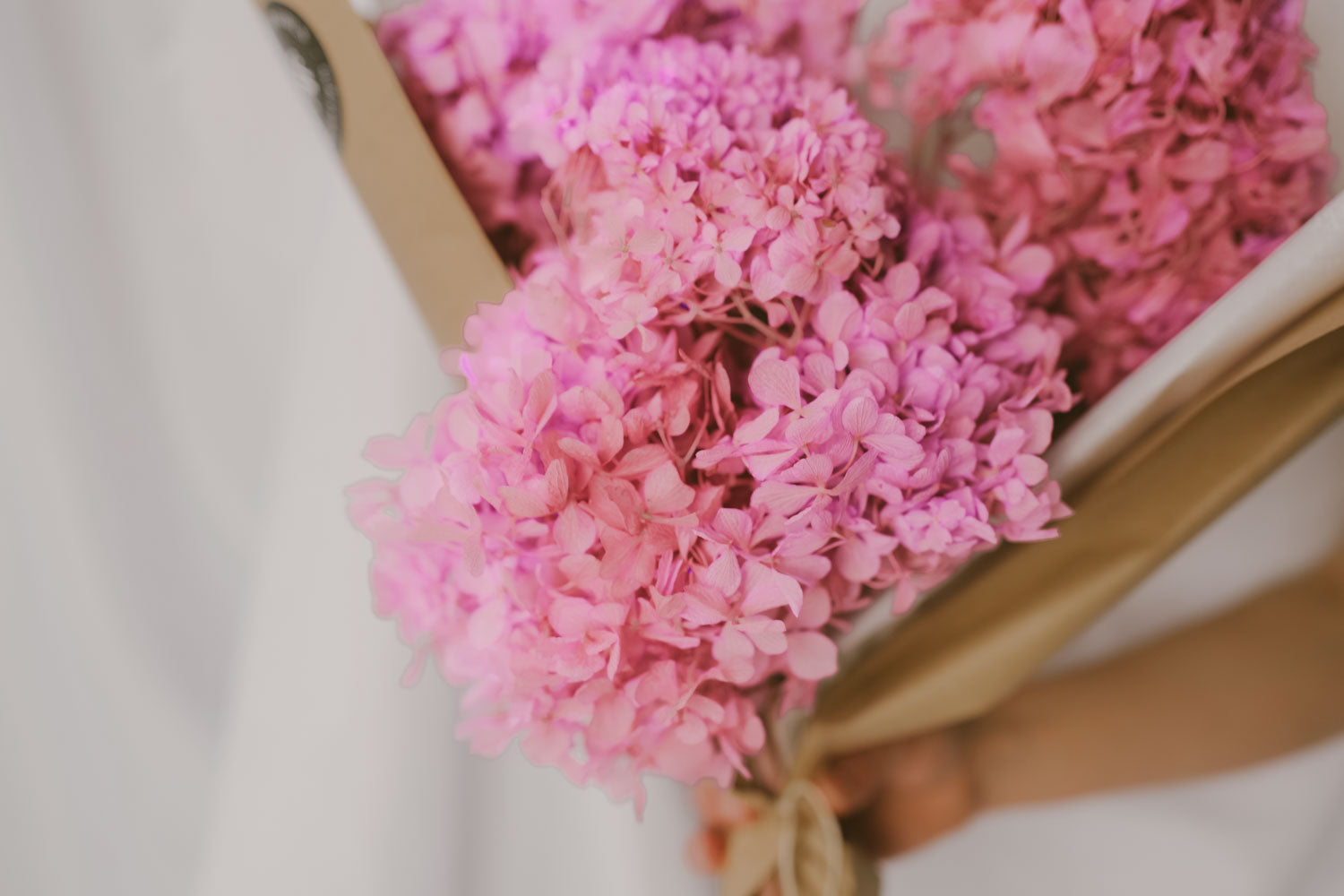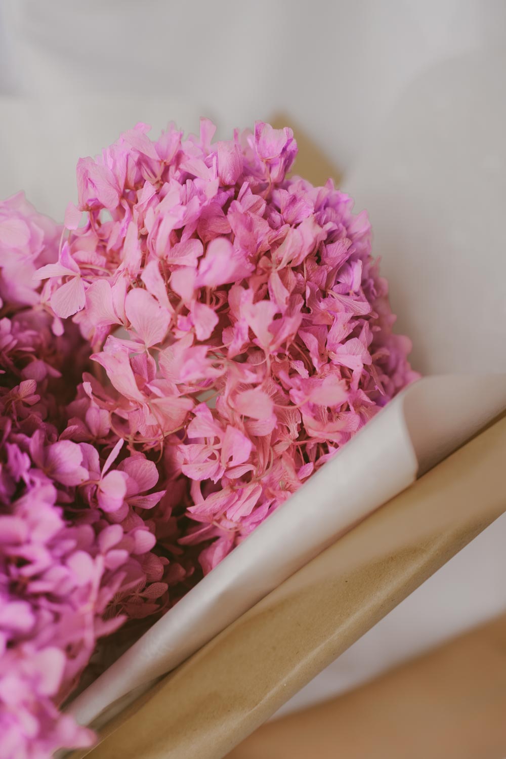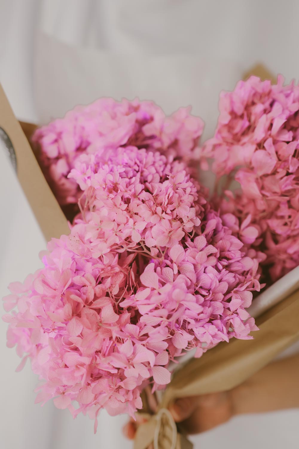 Ein Bund von konservierten Hortensien in zartem Rosaton ist die perfekte Dekoration für dein Zuhause und zugleich nachhaltig und forever blooming.