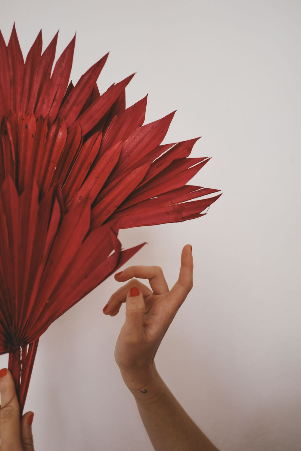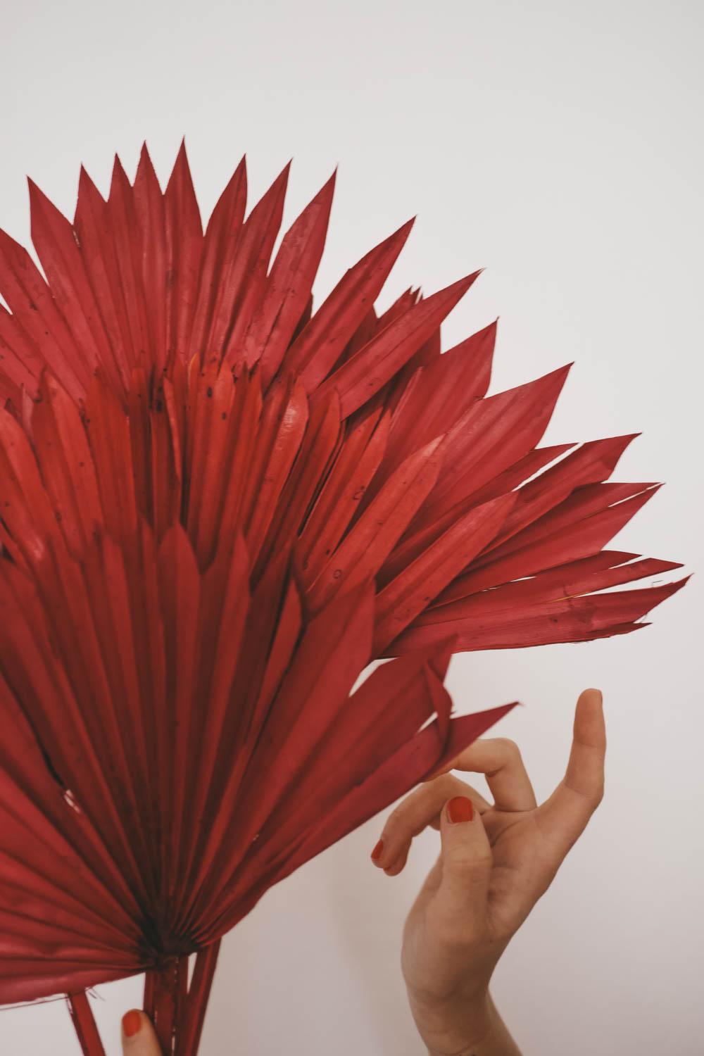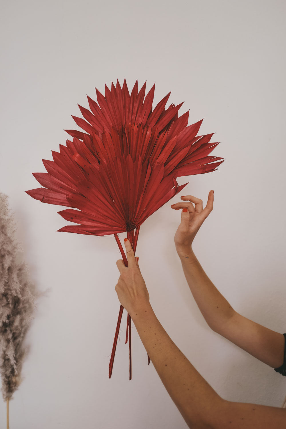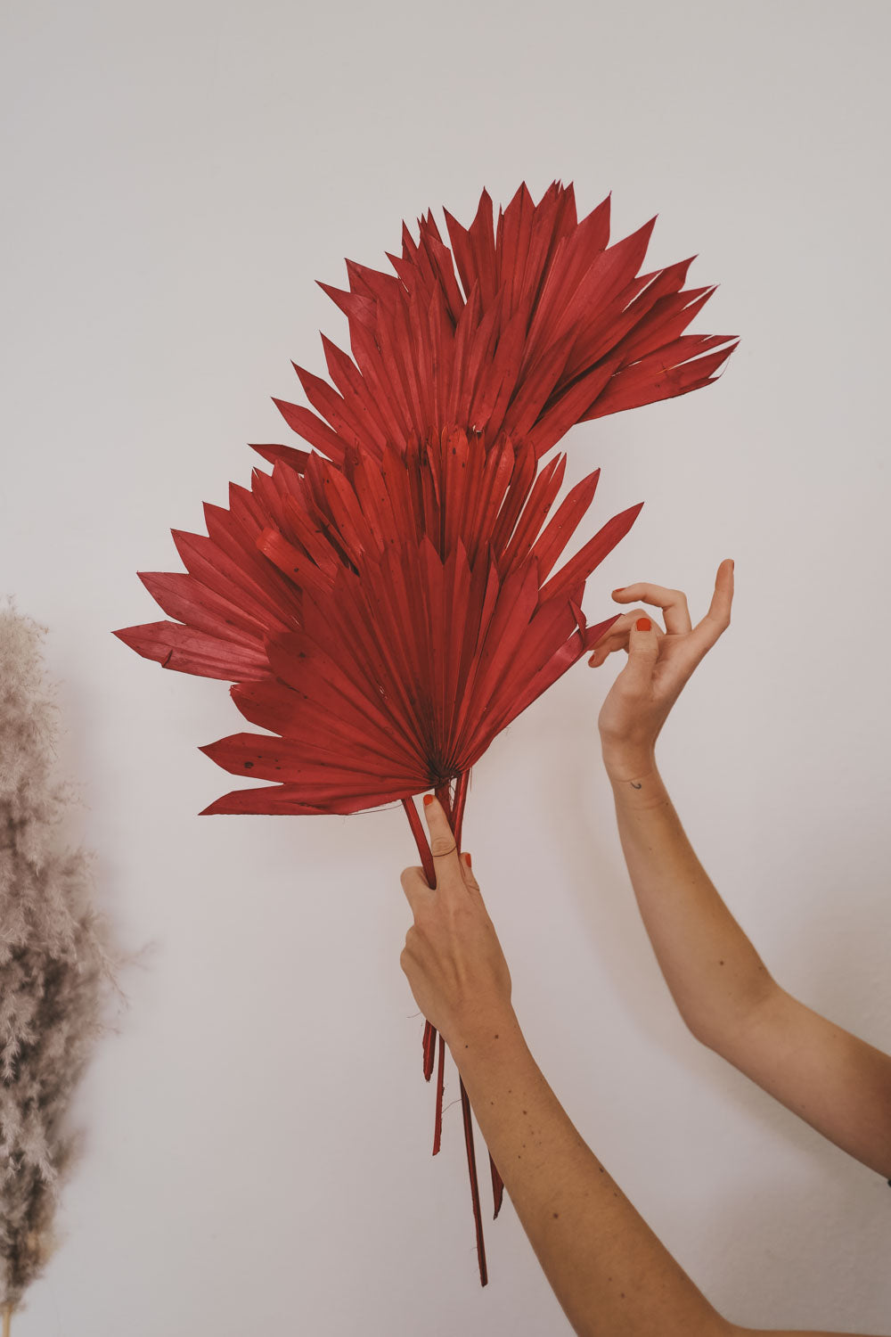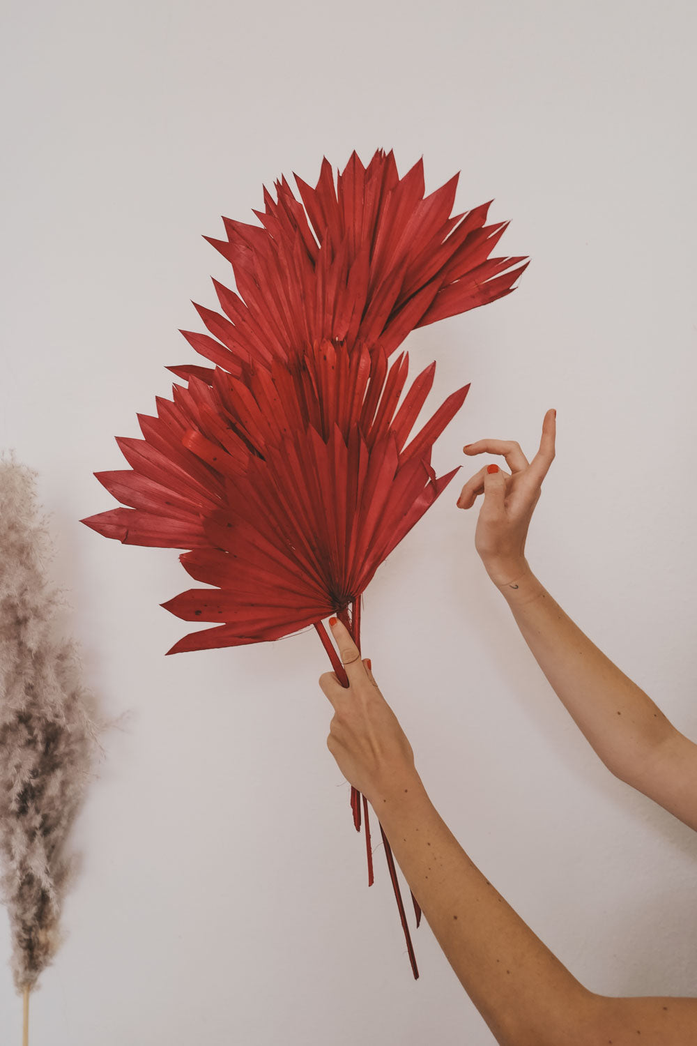 Rot farbenes Palmenblatt für den natural Eye-Catcher Look in deiner Wohnung. Perfekt zu drapieren in einer Vase.