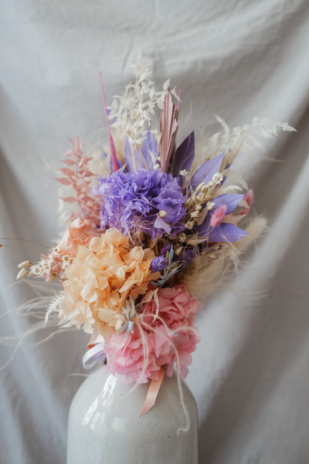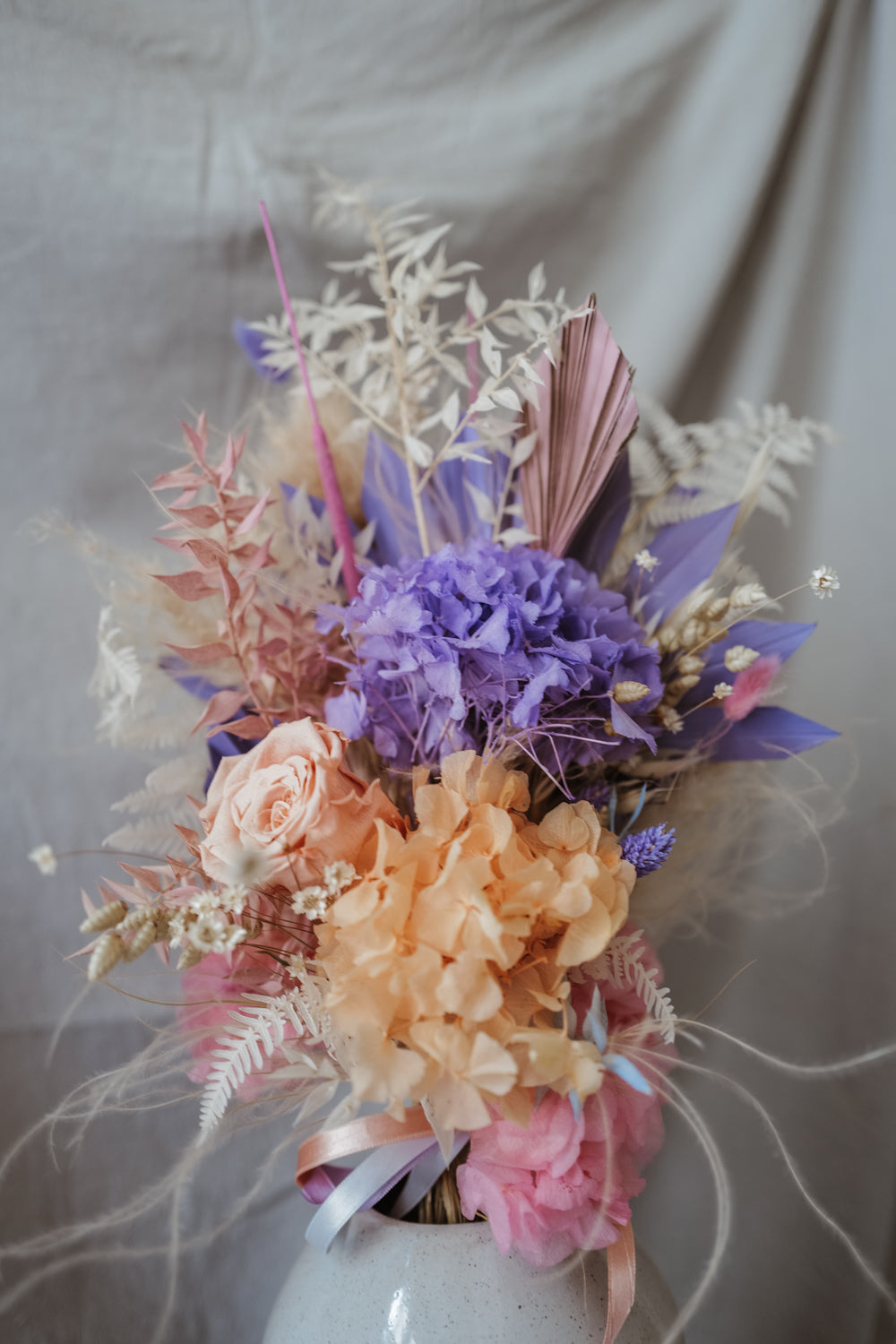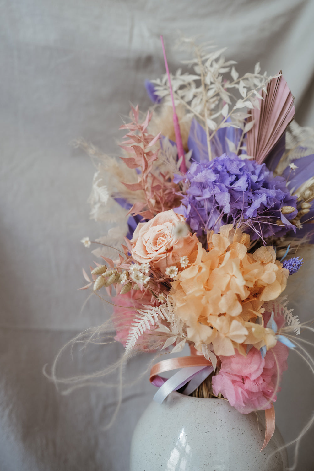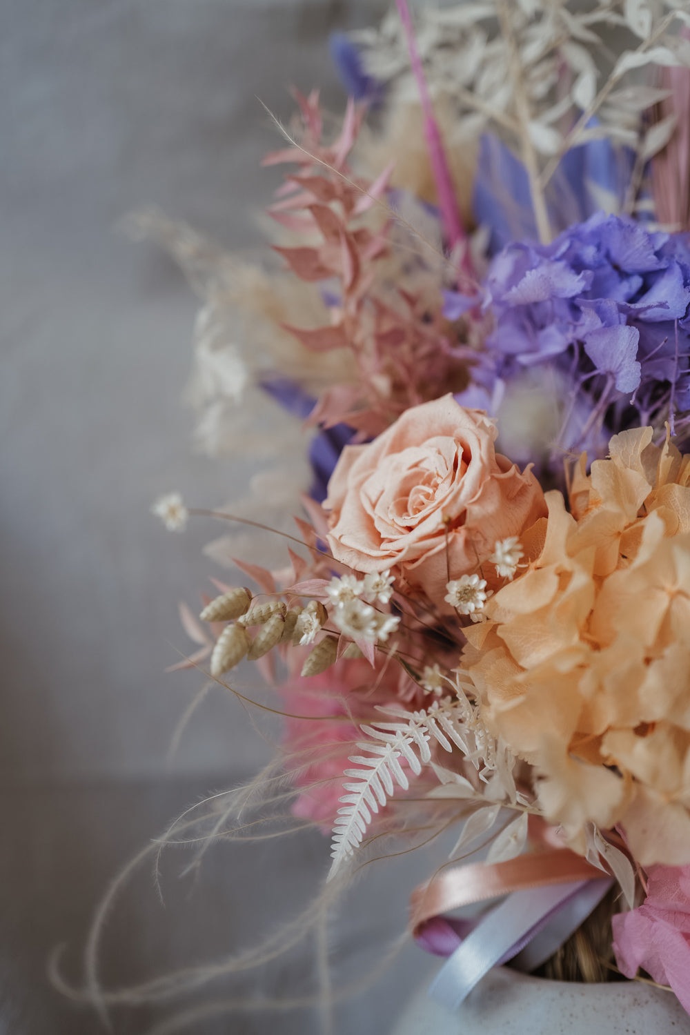 Unsere Trockenblumensträuße werden von uns aus hochwertig getrockneten und konservierten Dried Flowers gebunden und halten ein Leben lang. Sie sind die pflegeleichteste Dekoration für Zuhause und ein traumhaftes Geschenk wenn es mal einen Tick anders sein soll als ein klassischer Blumenstrauss.