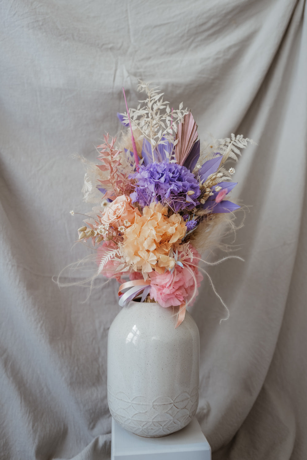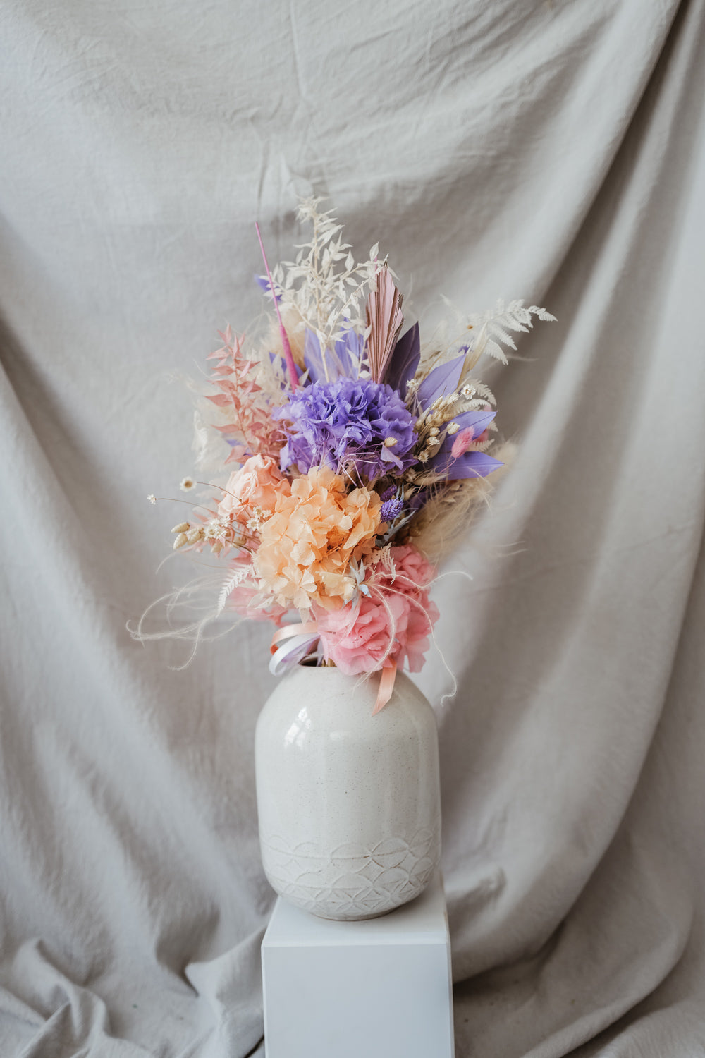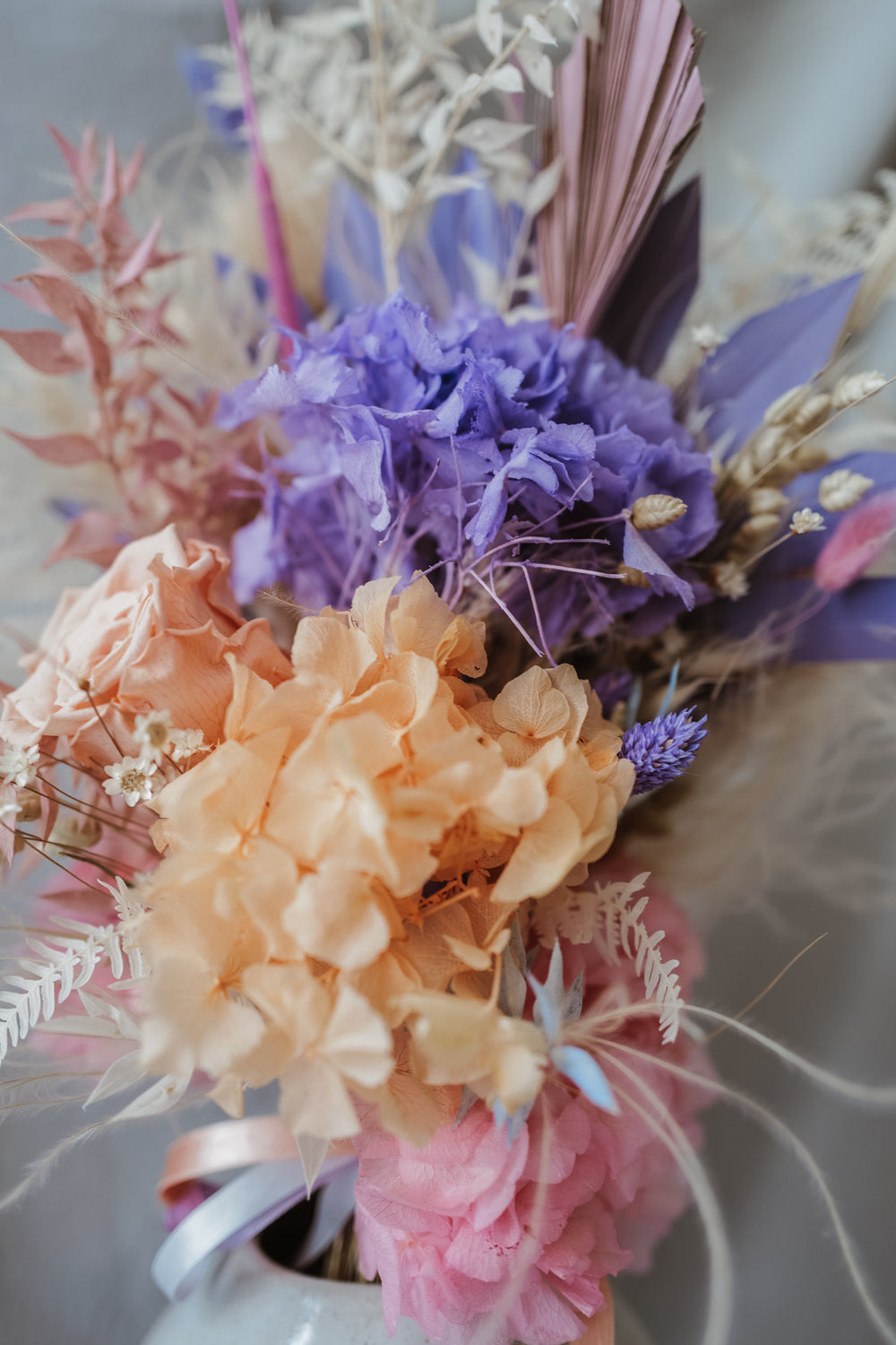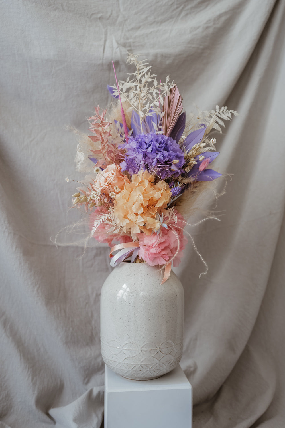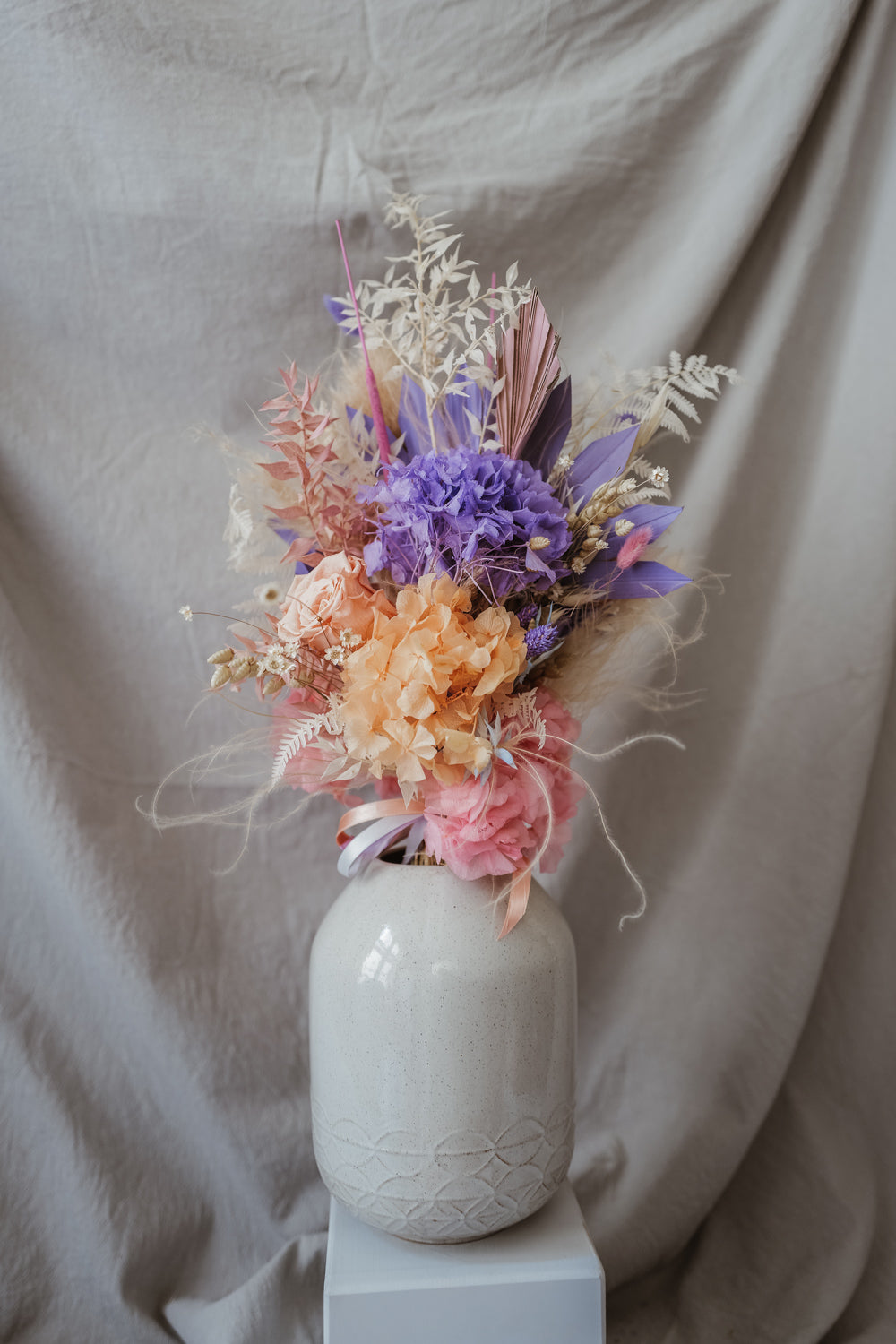 Unsere Trockenblumensträuße werden von uns aus hochwertig getrockneten und konservierten Dried Flowers gebunden und halten ein Leben lang. Sie sind die pflegeleichteste Dekoration für Zuhause und ein traumhaftes Geschenk wenn es mal einen Tick anders sein soll als ein klassischer Blumenstrauss.