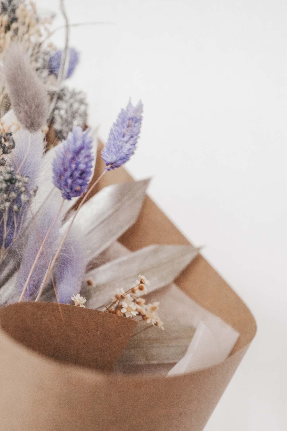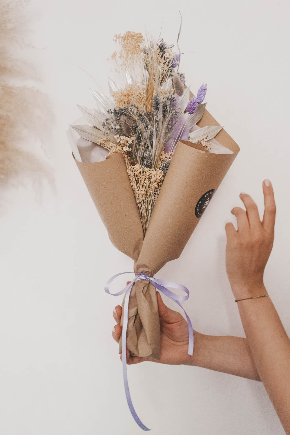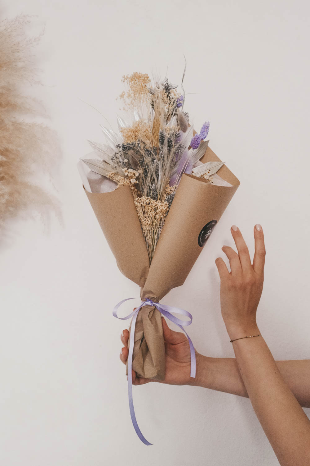 Unsere Trockenblumensträuße werden von uns aus hochwertig getrockneten und konservierten Dried Flowers gebunden und halten ein Leben lang. Sie sind die pflegeleichteste Dekoration für Zuhause und ein traumhaftes Geschenk wenn es mal einen Tick anders sein soll als ein klassischer Blumenstrauss.