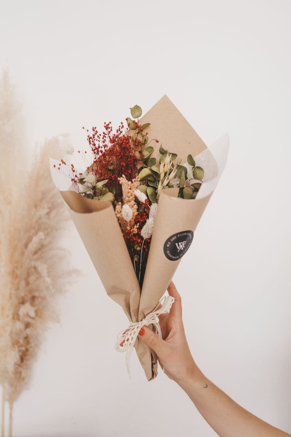 Unsere Trockenblumensträuße werden von uns aus hochwertig getrockneten und konservierten Dried Flowers gebunden und halten ein Leben lang. Sie sind die pflegeleichteste Dekoration für Zuhause und ein traumhaftes Geschenk wenn es mal einen Tick anders sein soll als ein klassischer Blumenstrauss.