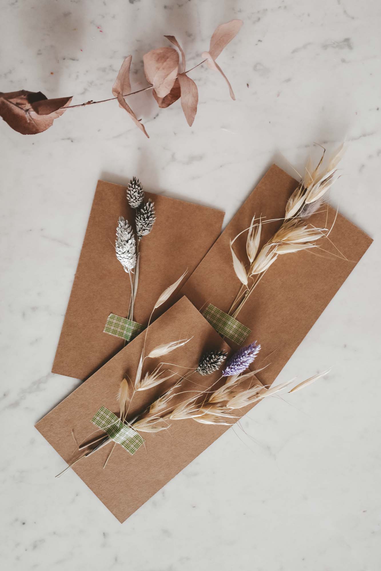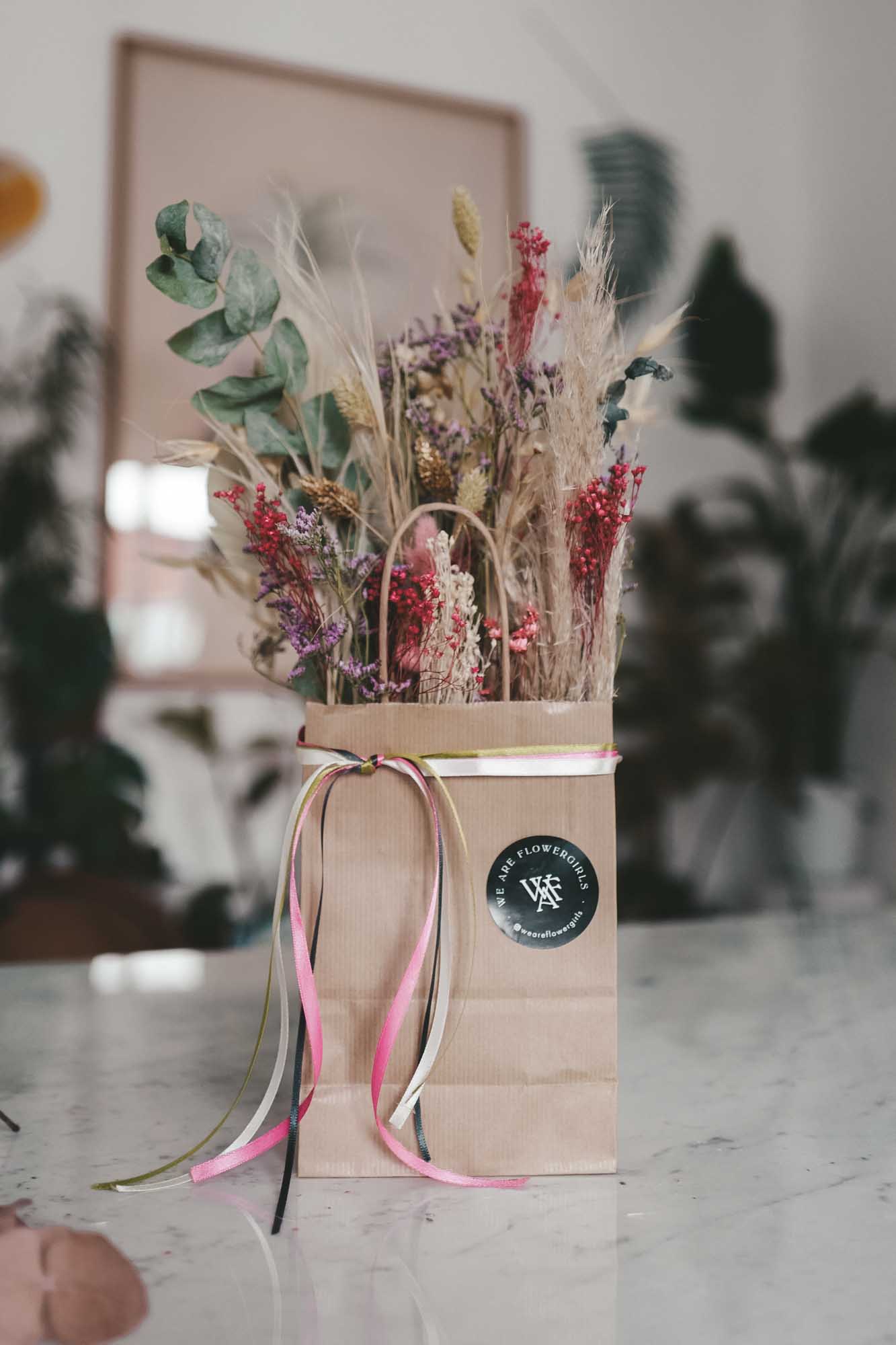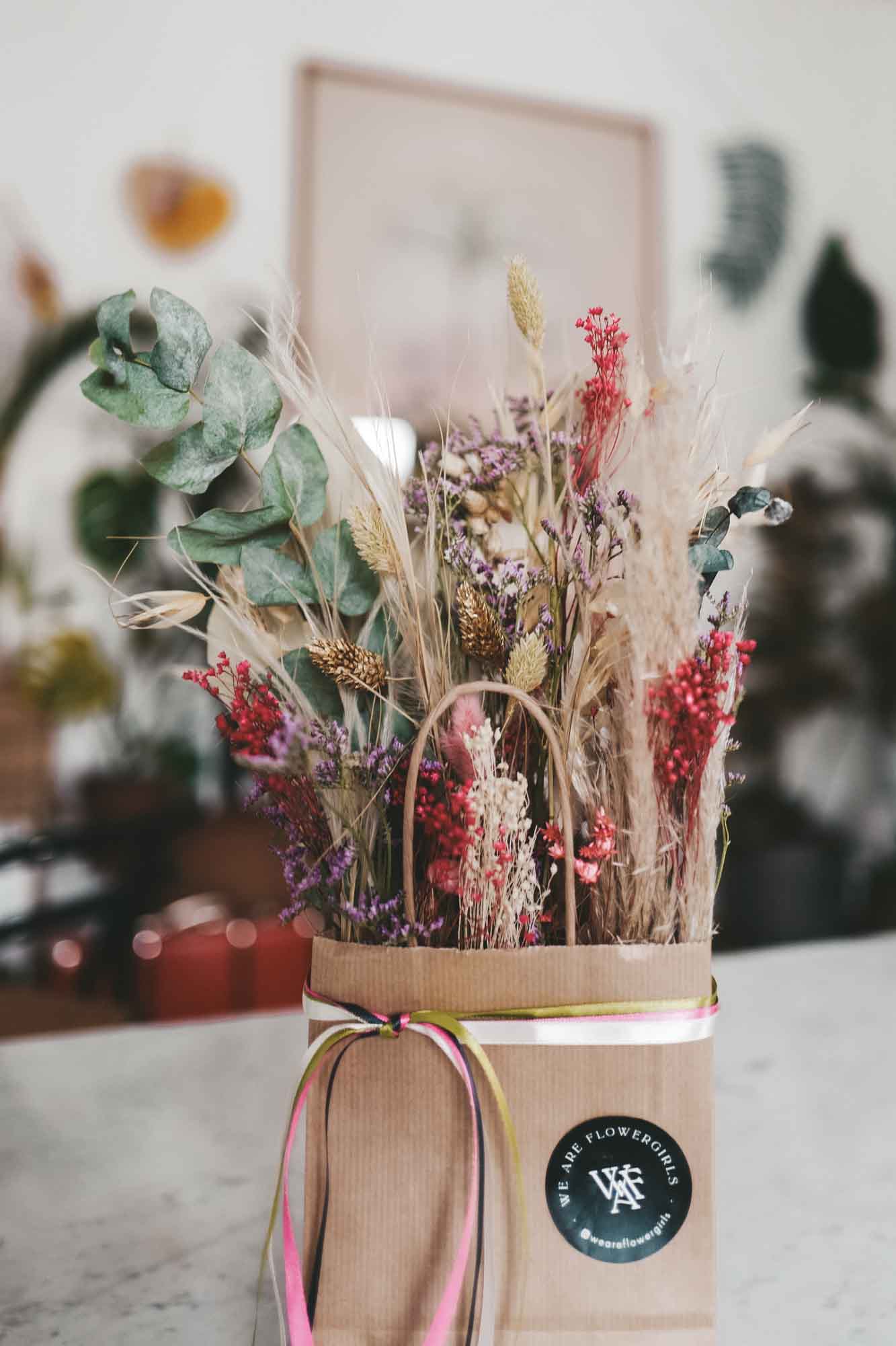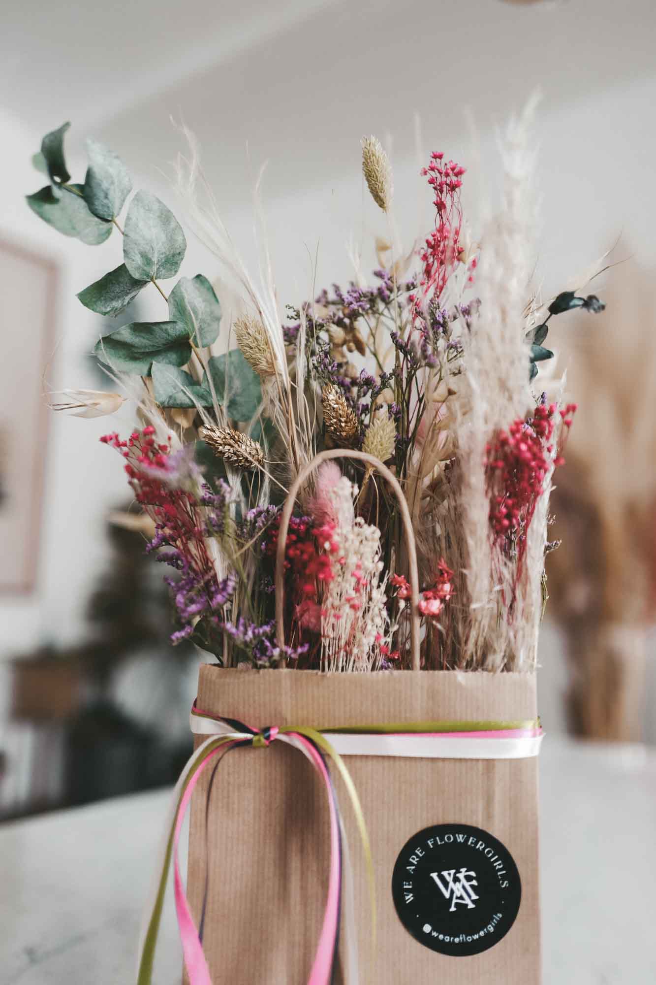 Inkl. sind die Bänder, eine Dried Flower Karte sowie die Papiertasche mit Dried Flowers.