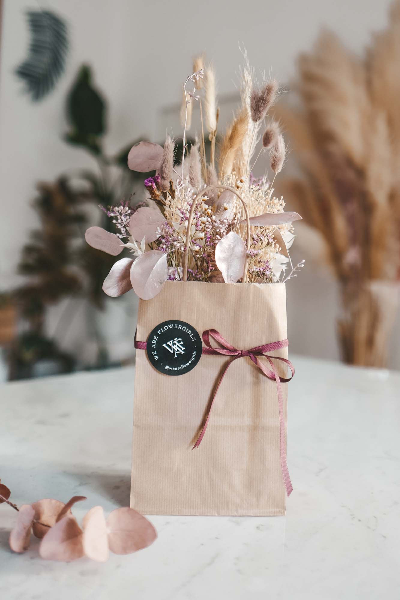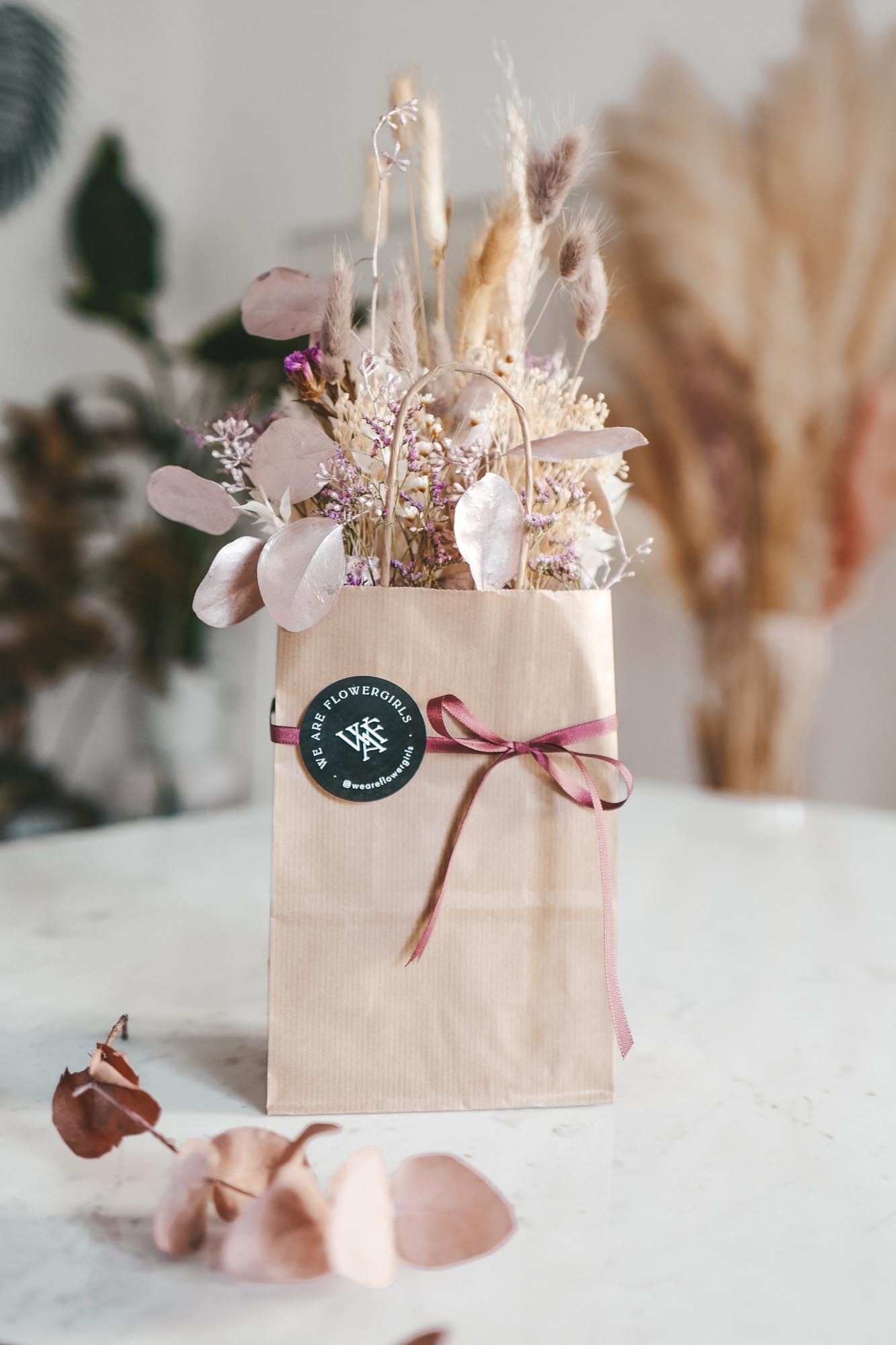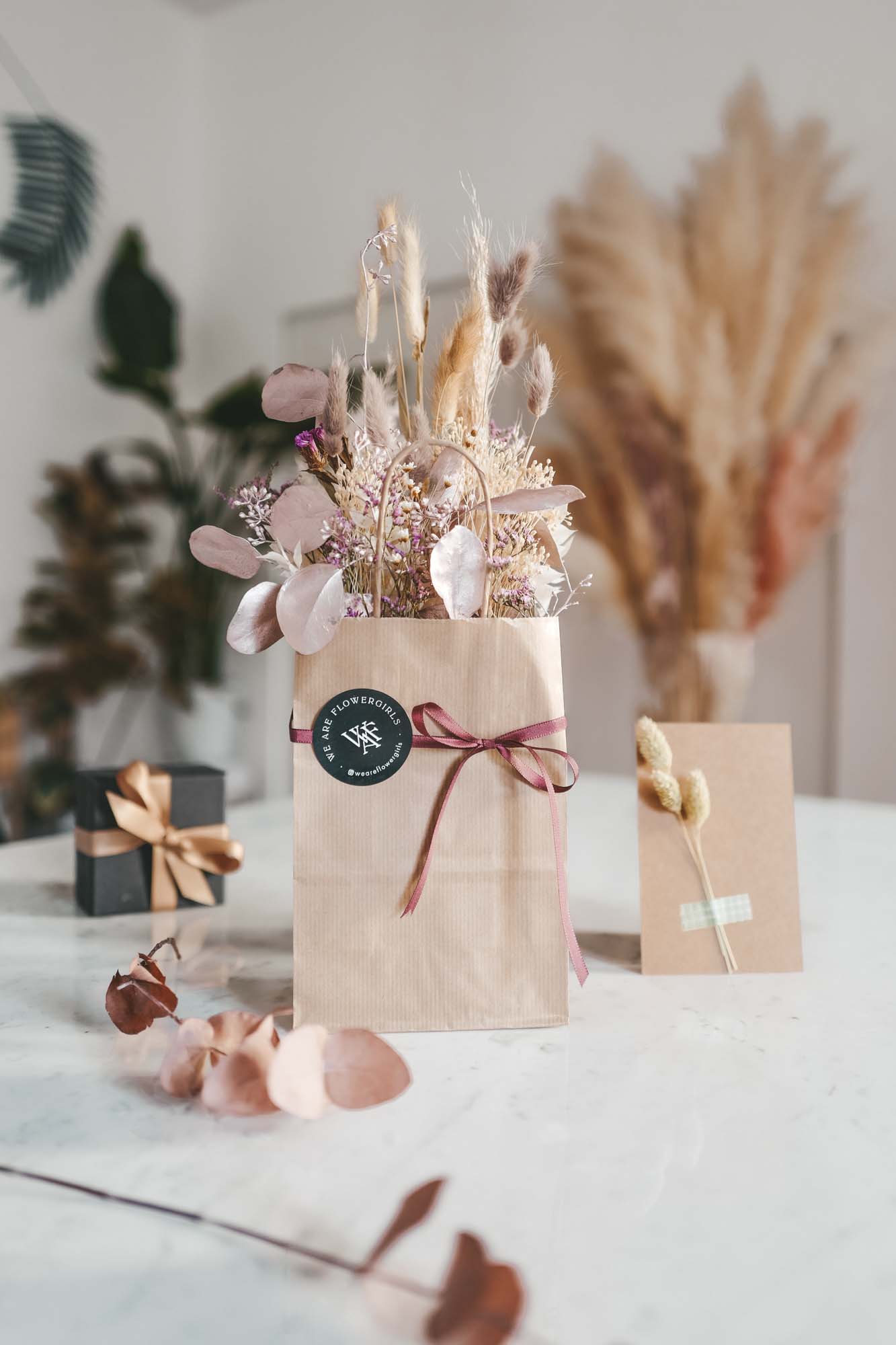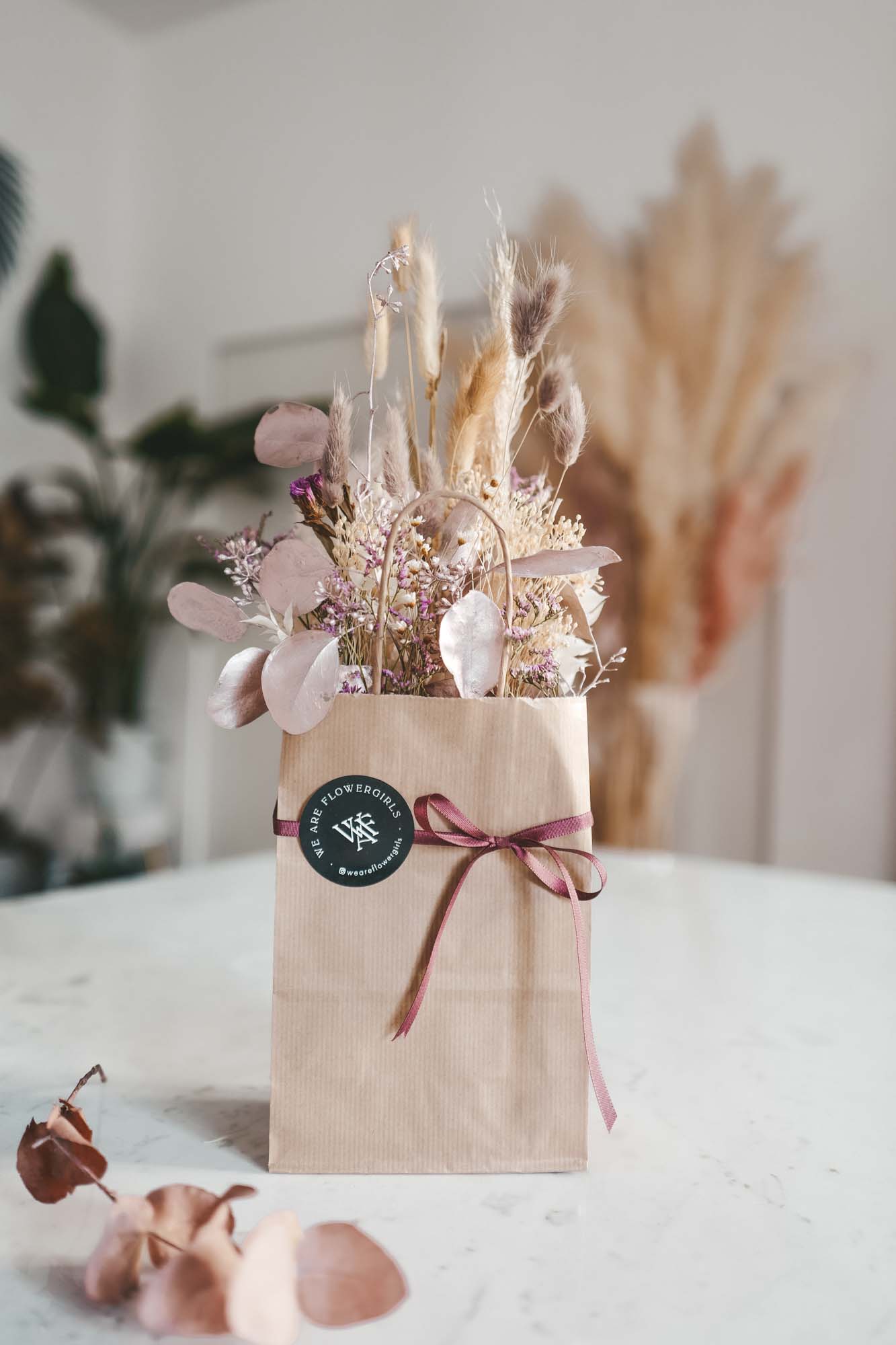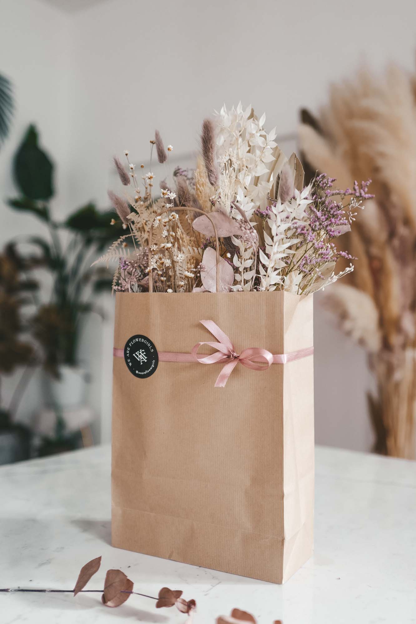 Inkl. sind die Bänder, eine Dried Flower Karte sowie die Papiertasche mit Dried Flowers.