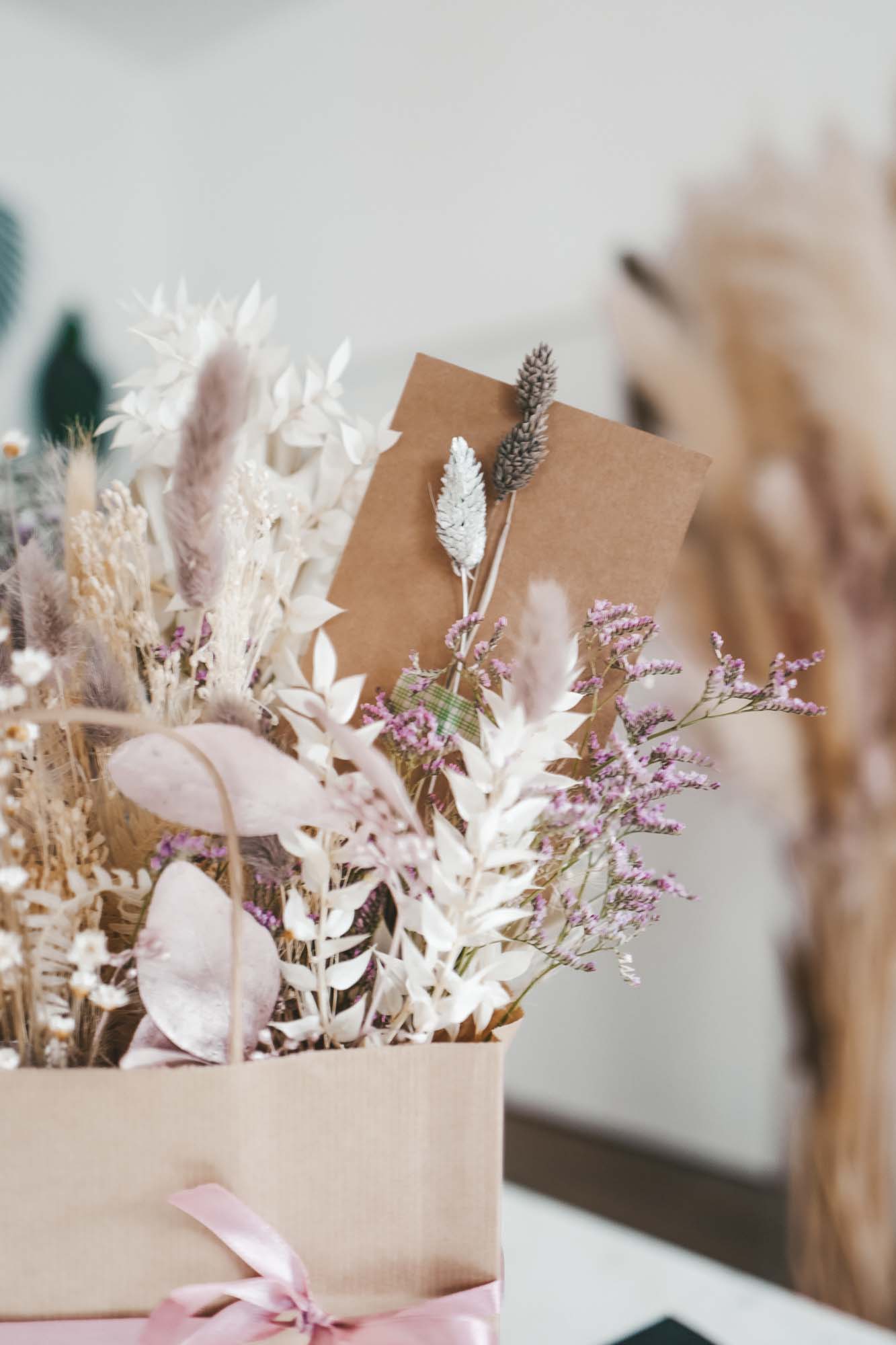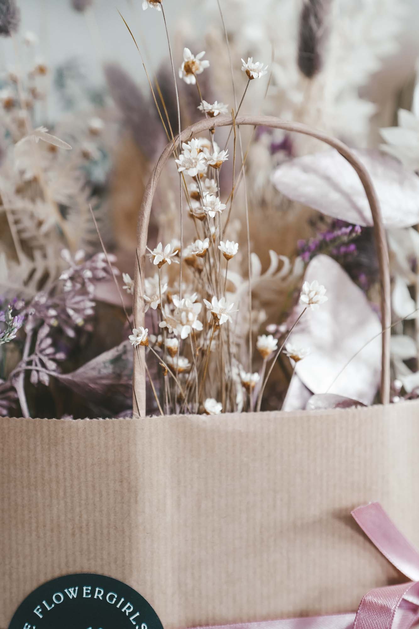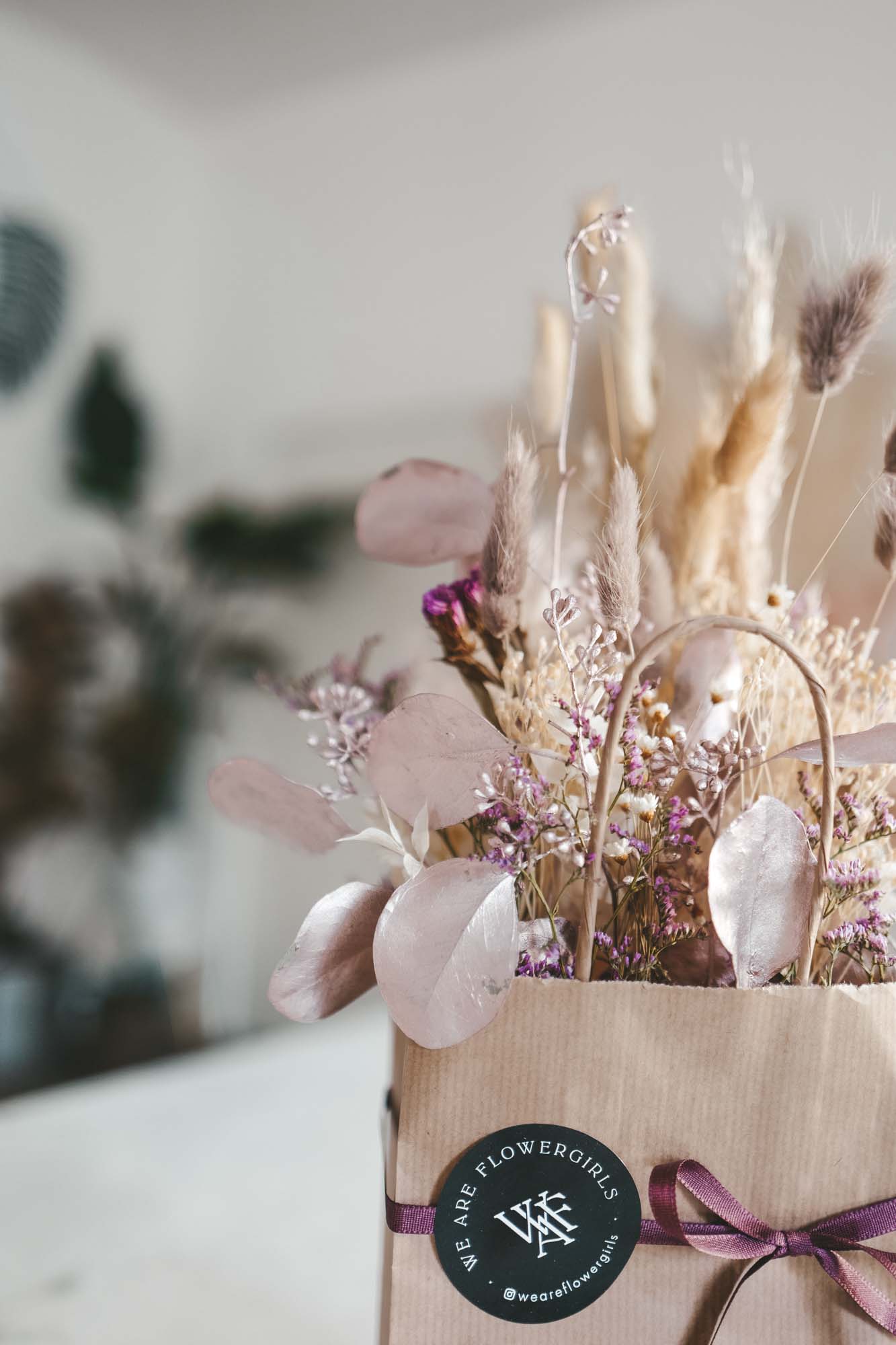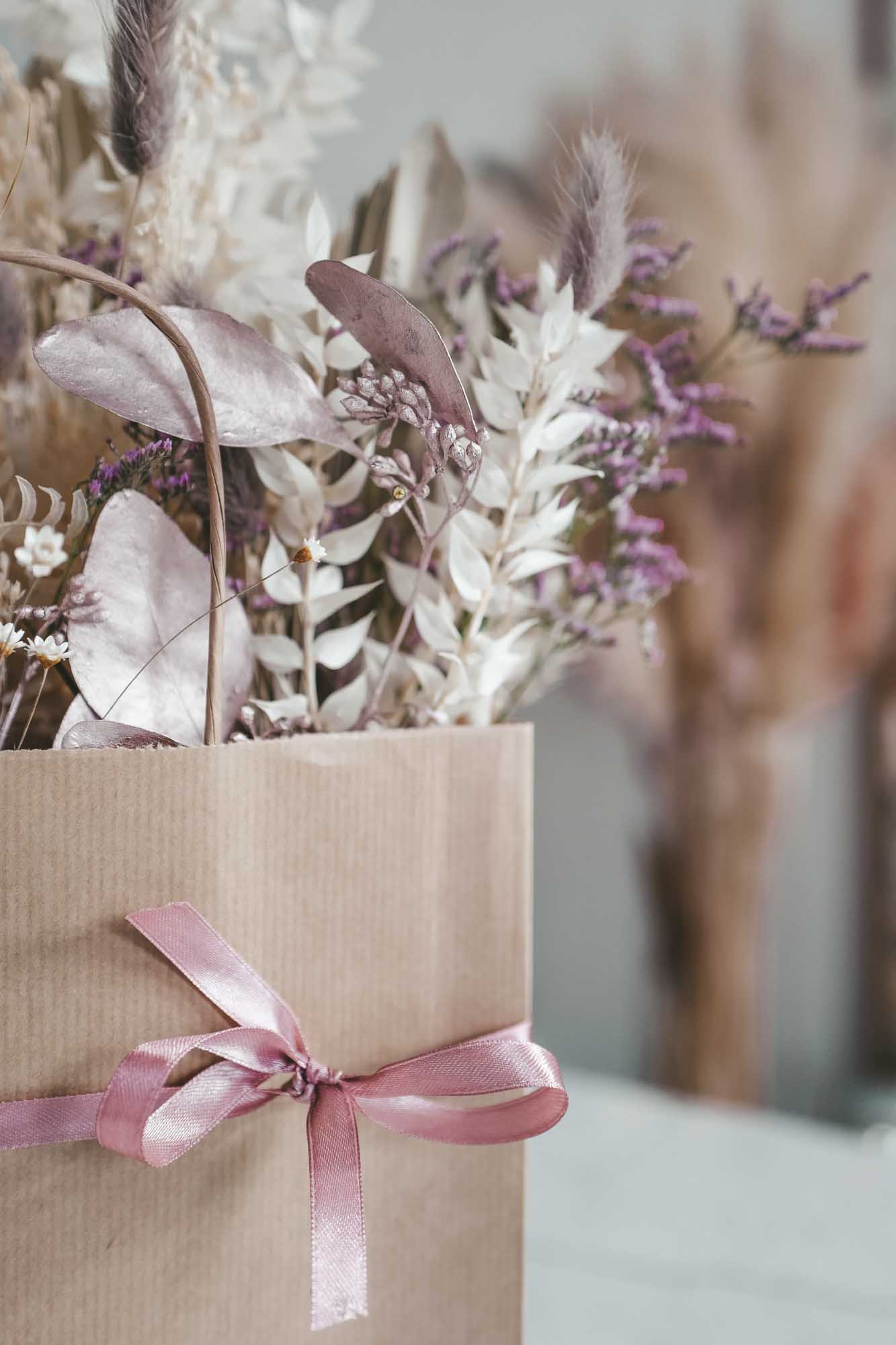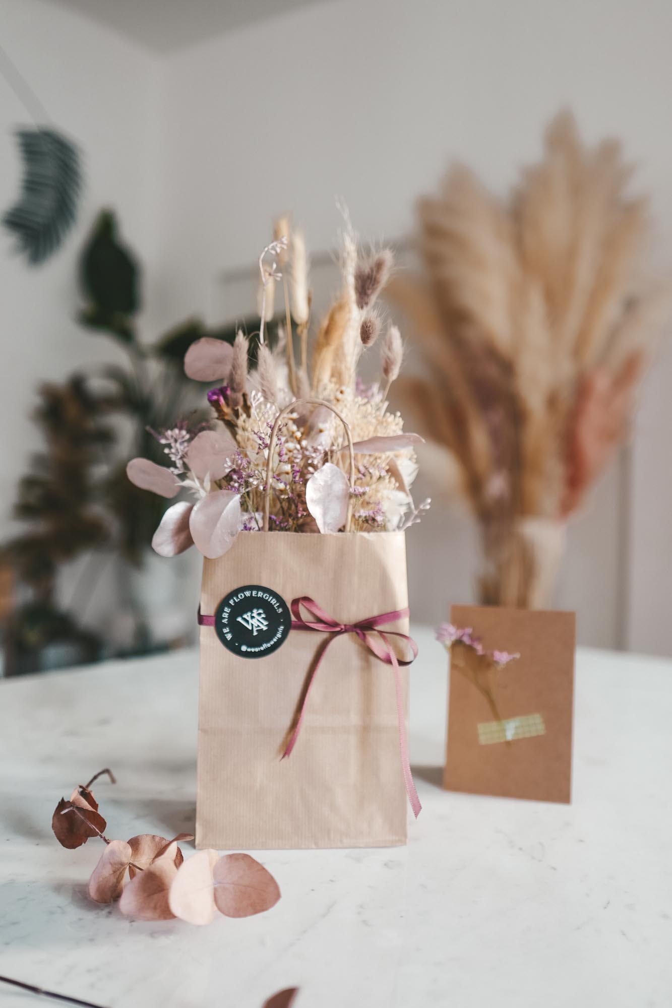 Inkl. sind die Bänder, eine Dried Flower Karte sowie die Papiertasche mit Dried Flowers.