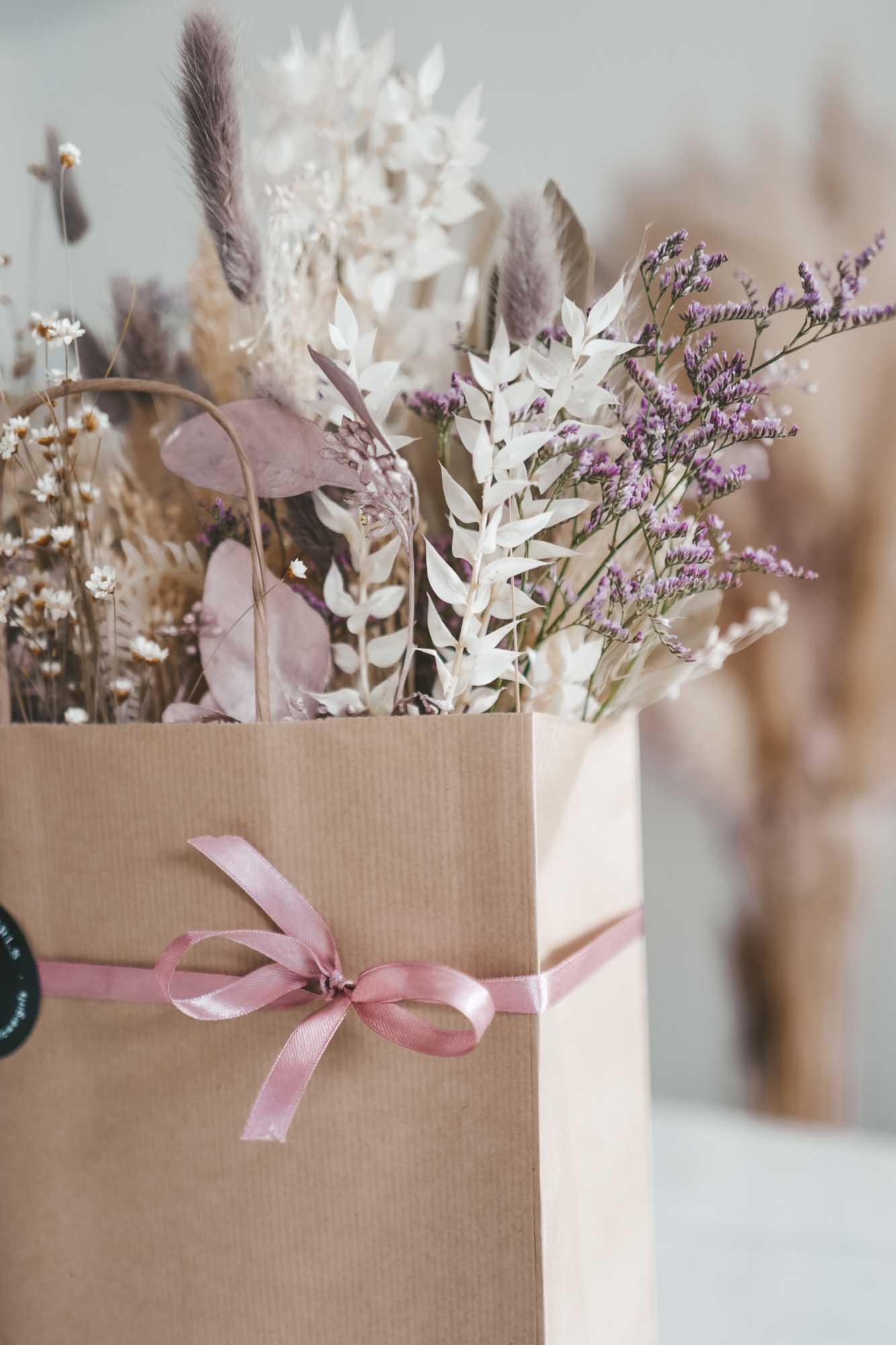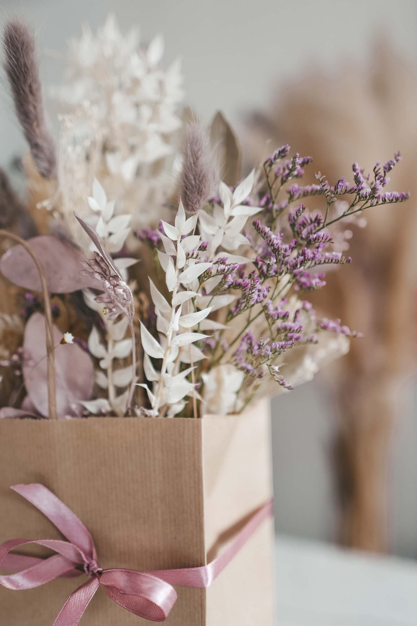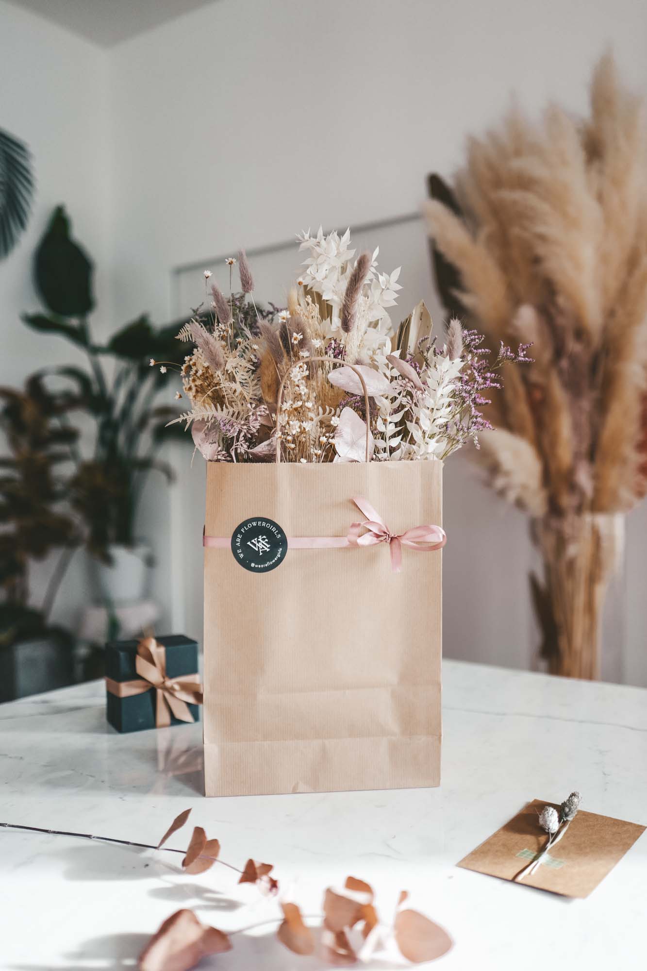 Unsere Dried Flower Bags sind das perfekte Mitbringsel zum Geburtstag, Geschenk zum Valentinstag oder Home-Deko für dein eigenes Zuhause oder Events. Unsere Blumenboxen werden von uns aus hochwertig getrockneten und konservierten Dried Flowers gefertigt und halten ein Leben lang. Sie sind die pflegeleichteste Dekoration für Zuhause und ein traumhaftes Geschenk wenn es mal einen Tick anders sein soll als ein klassischer Blumenstrauss.