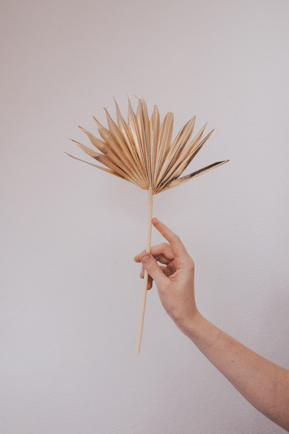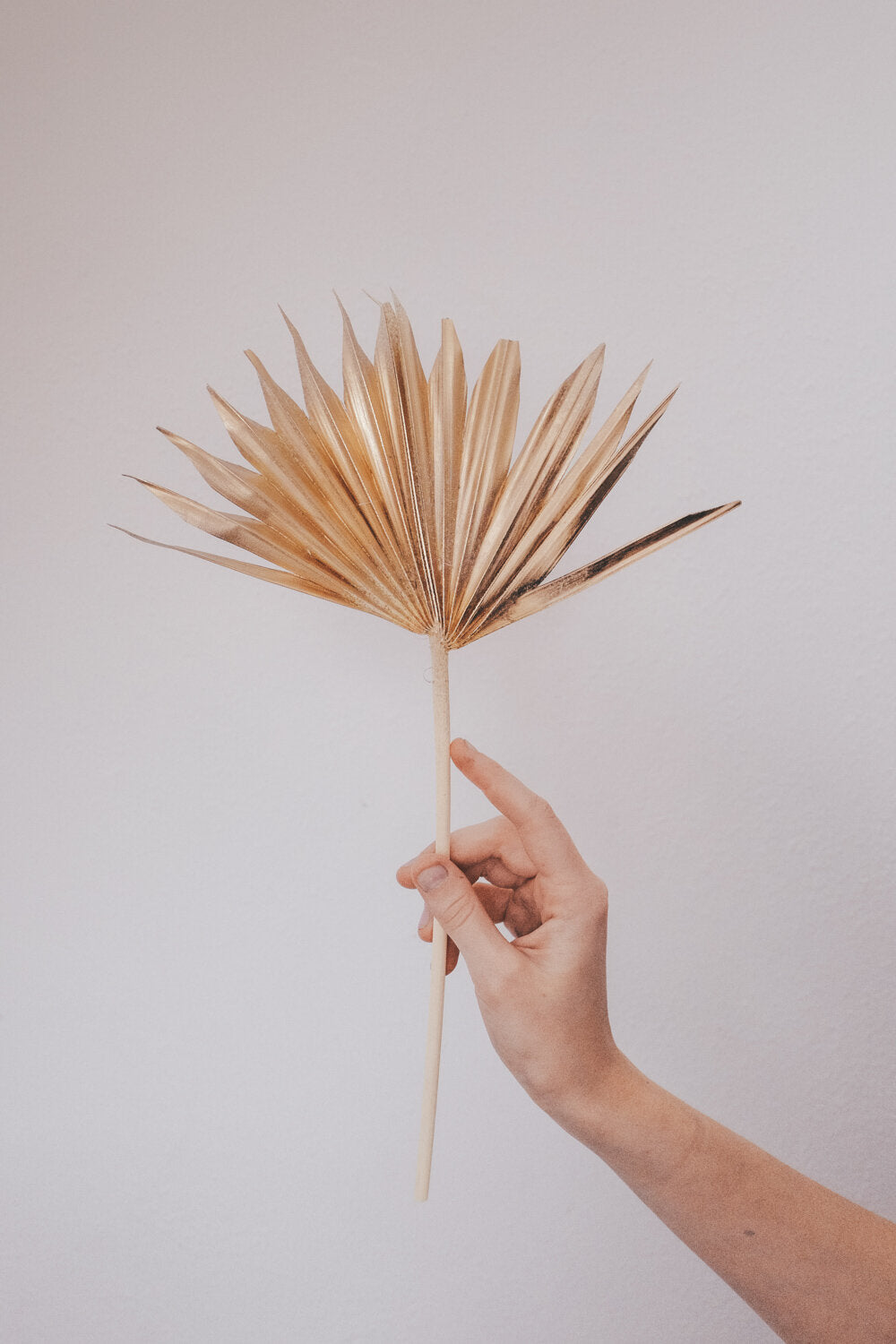 Vergoldetes Palmenblatt für den Eye-Catcher Look in deiner Wohnung. Perfekt zu drapieren in einer Vase.
