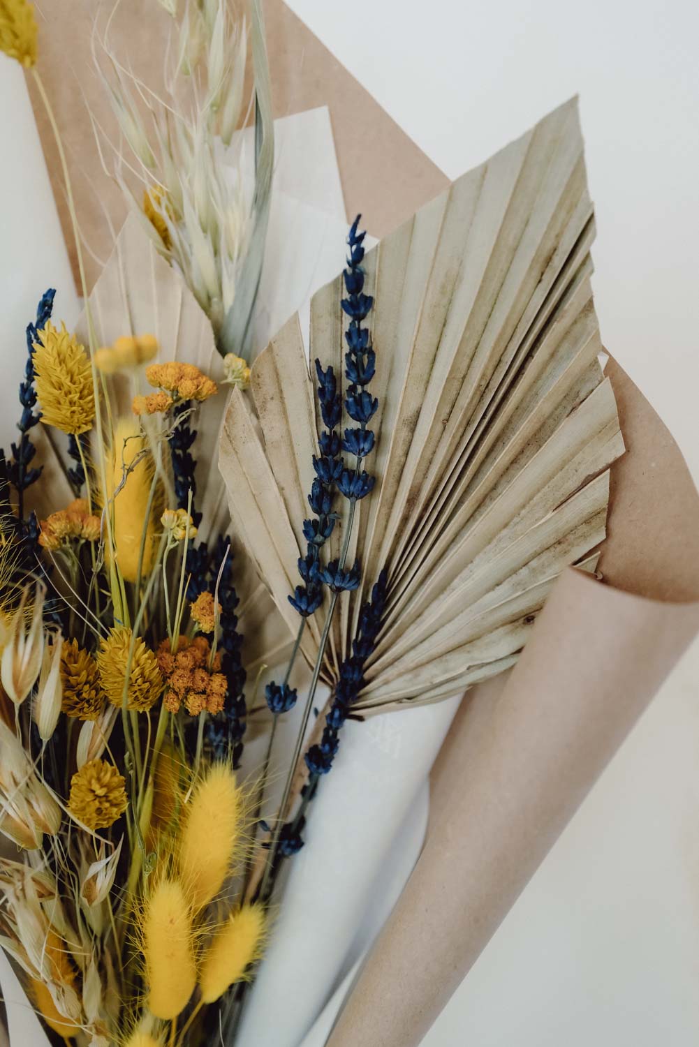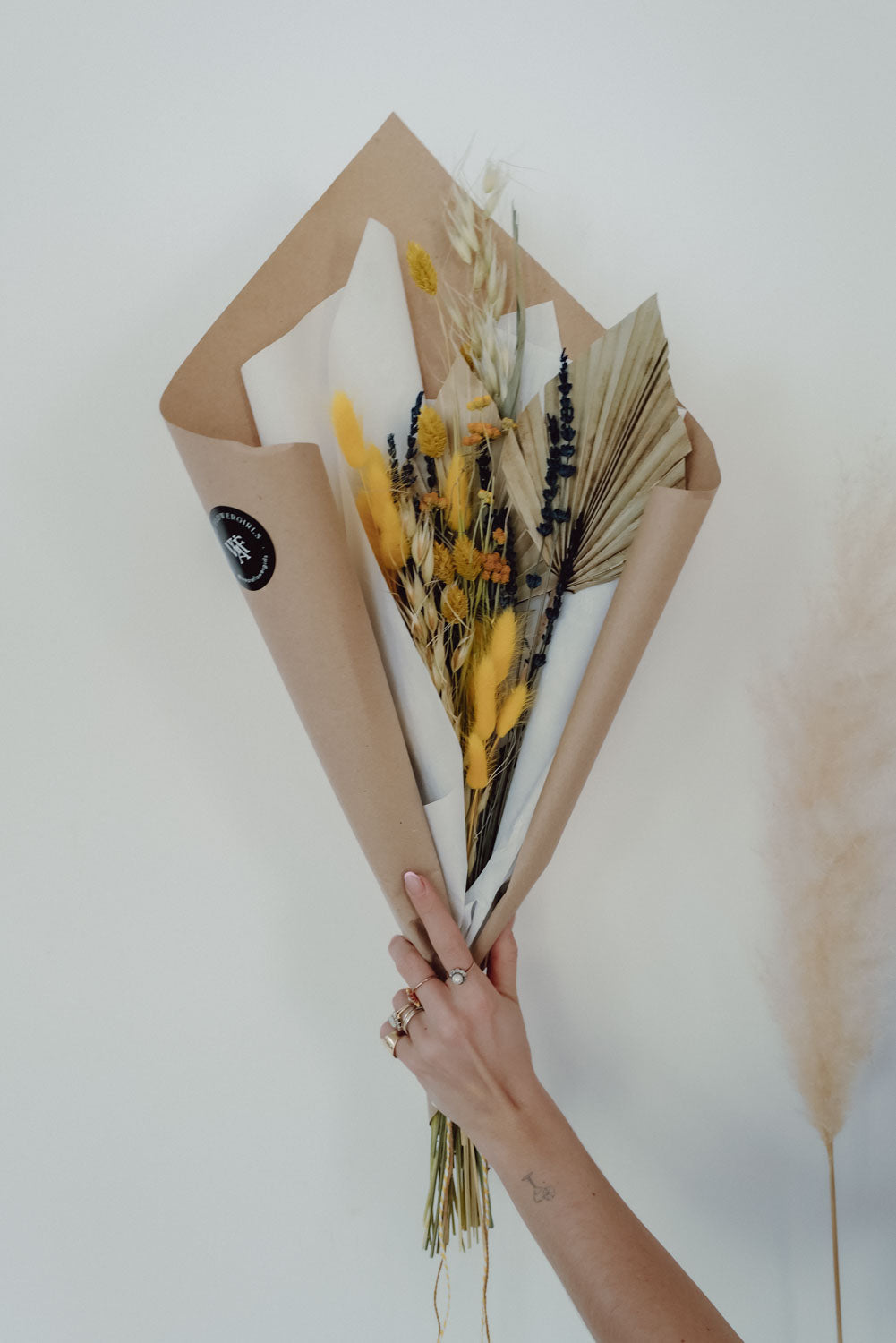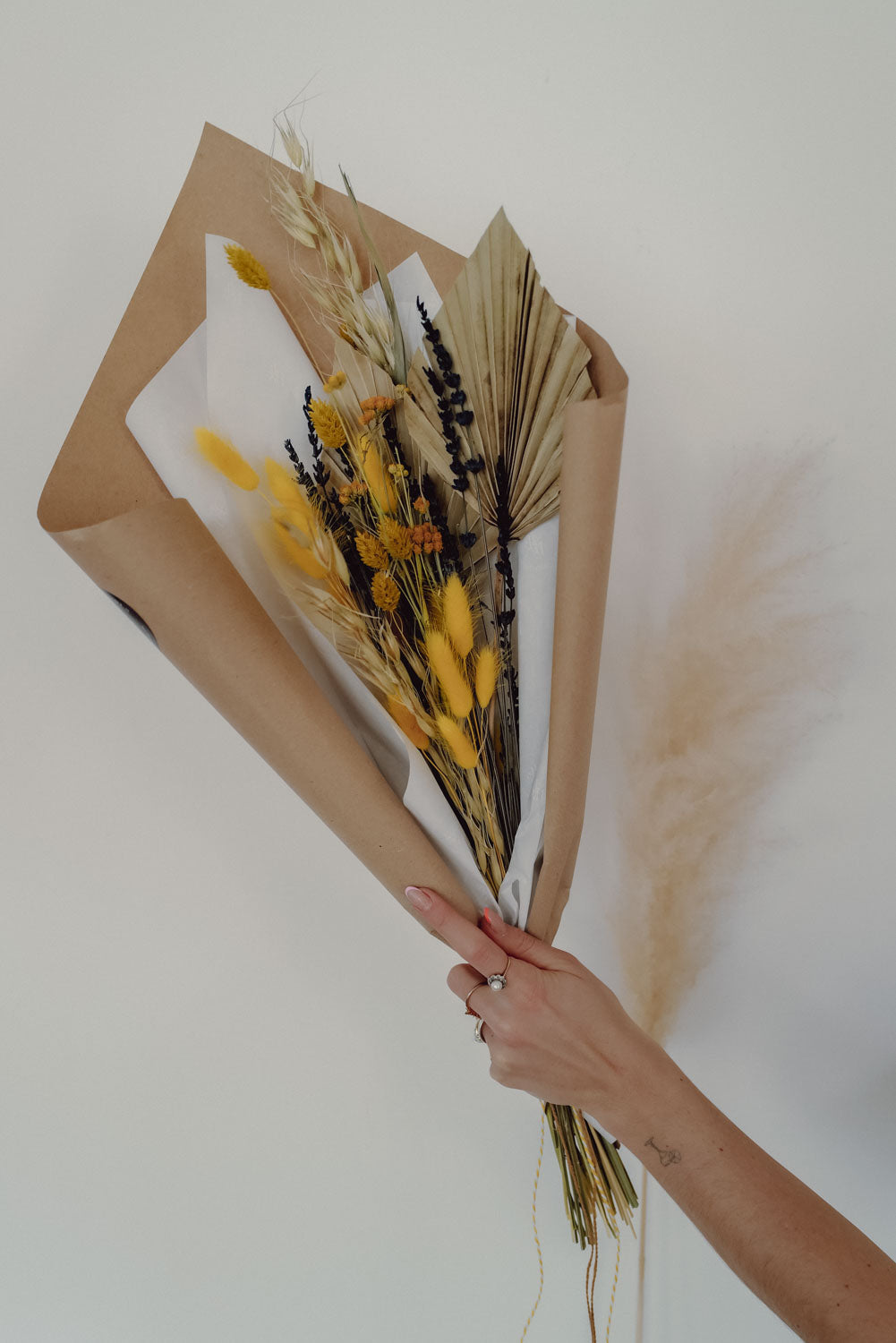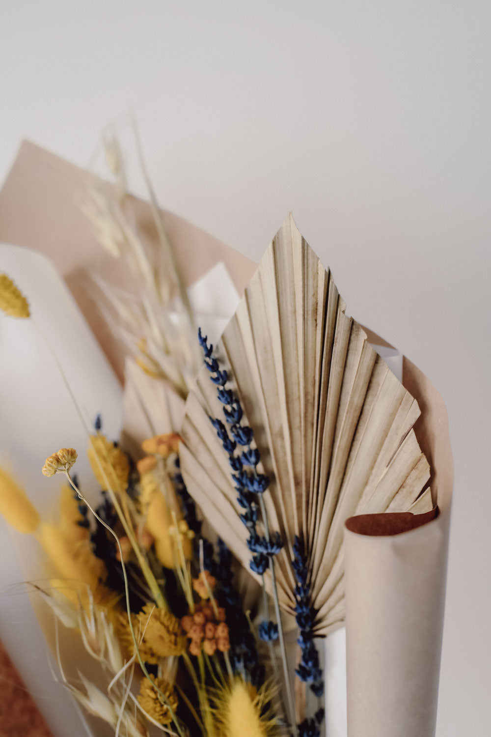 - hochwertig getrocknete und konservierte Blumen und Gräser