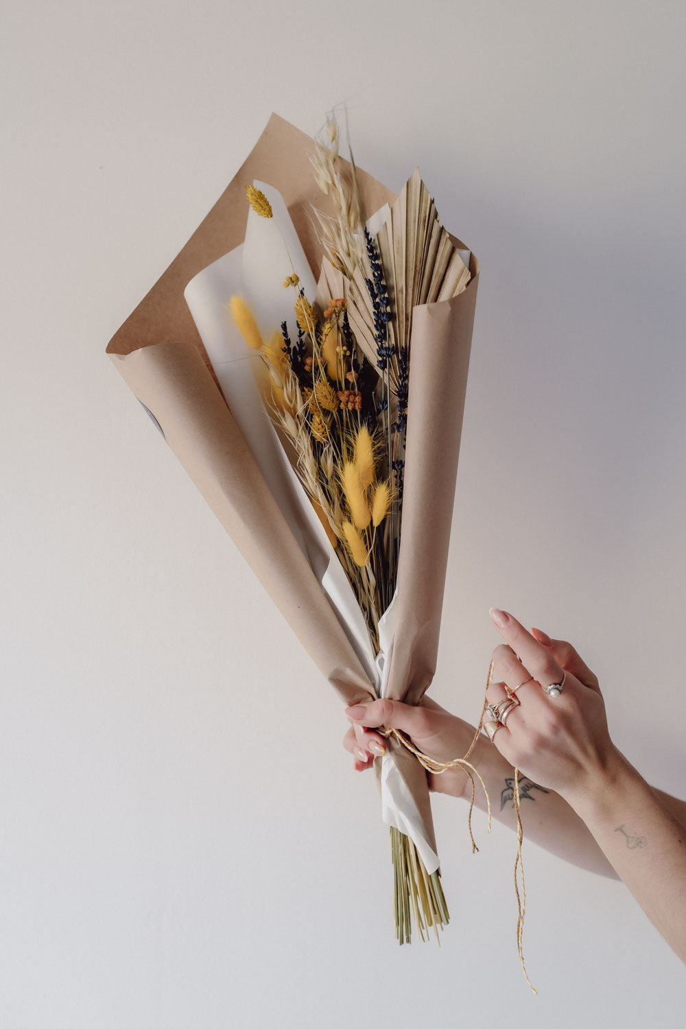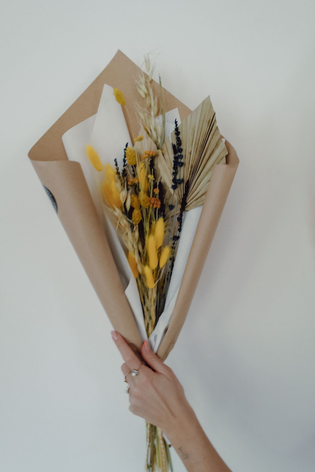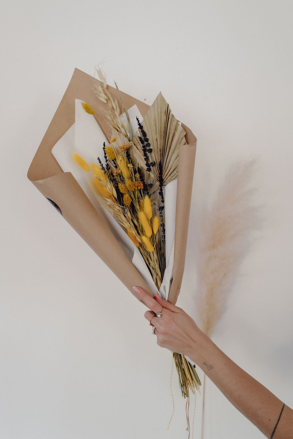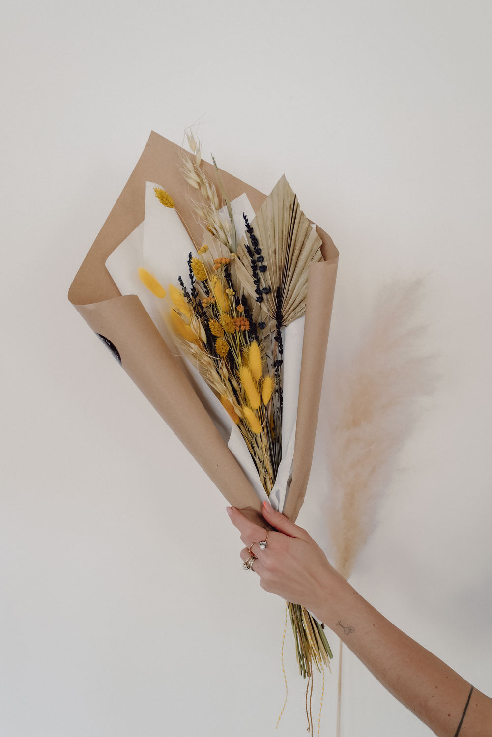 - hochwertig getrocknete und konservierte Blumen und Gräser