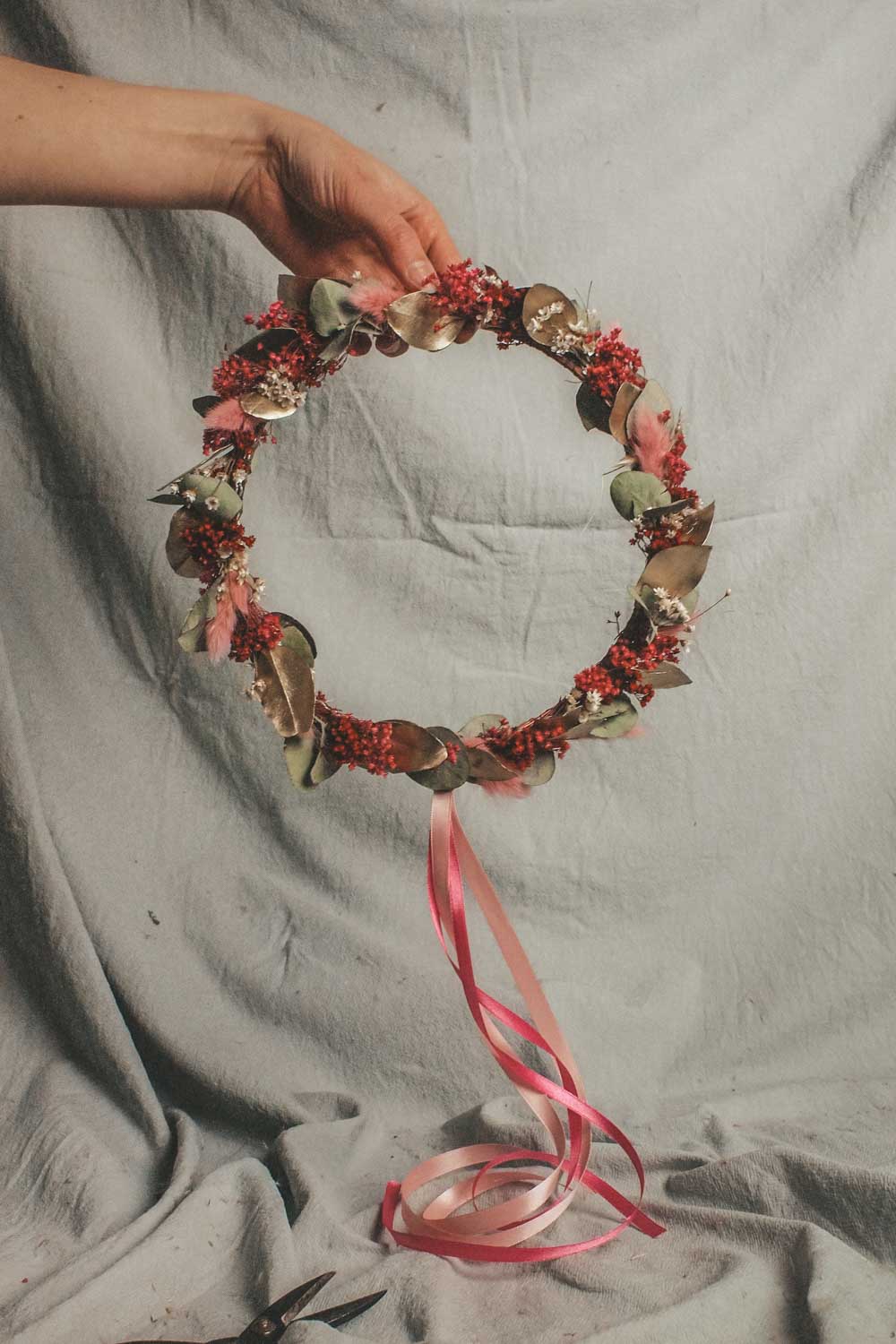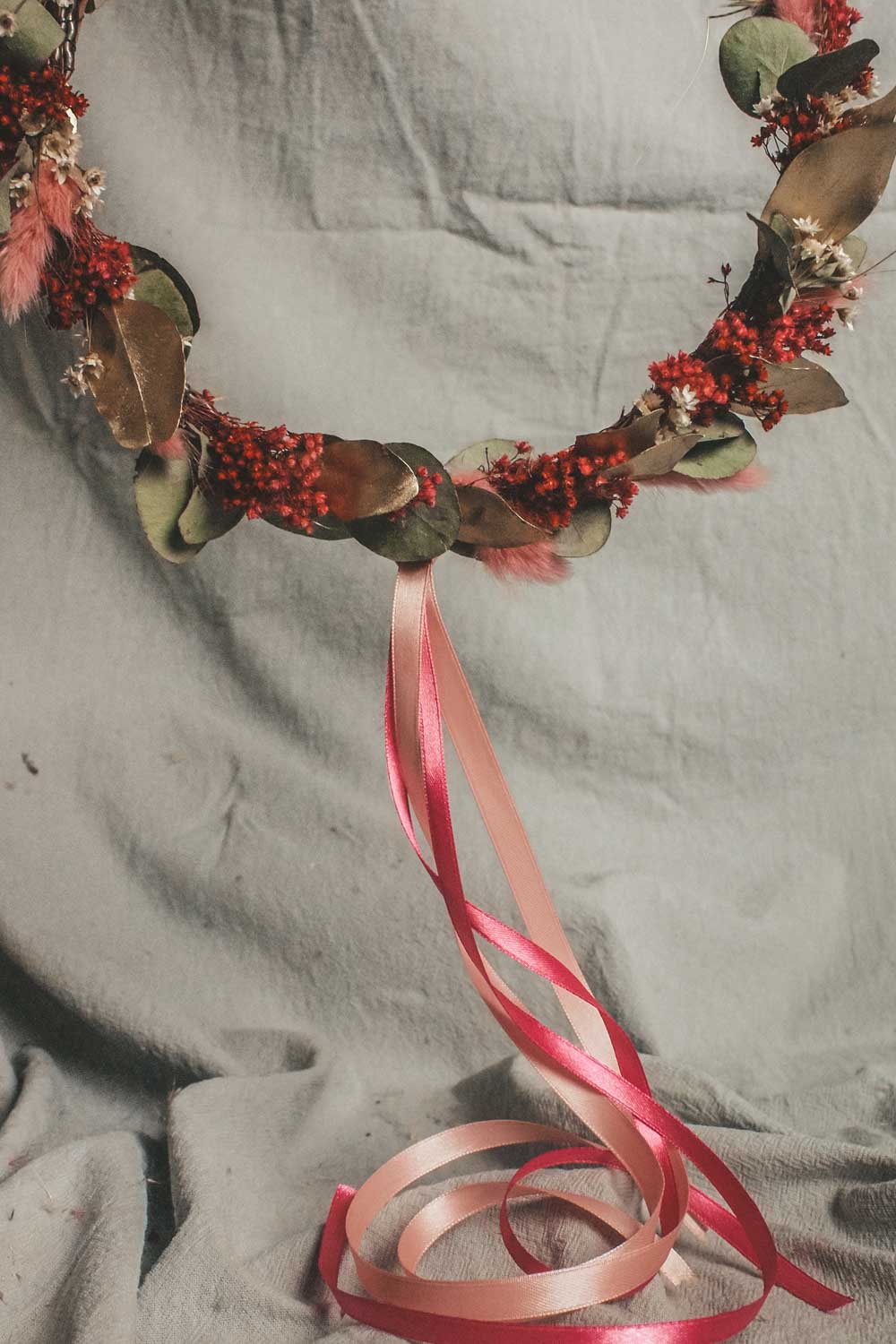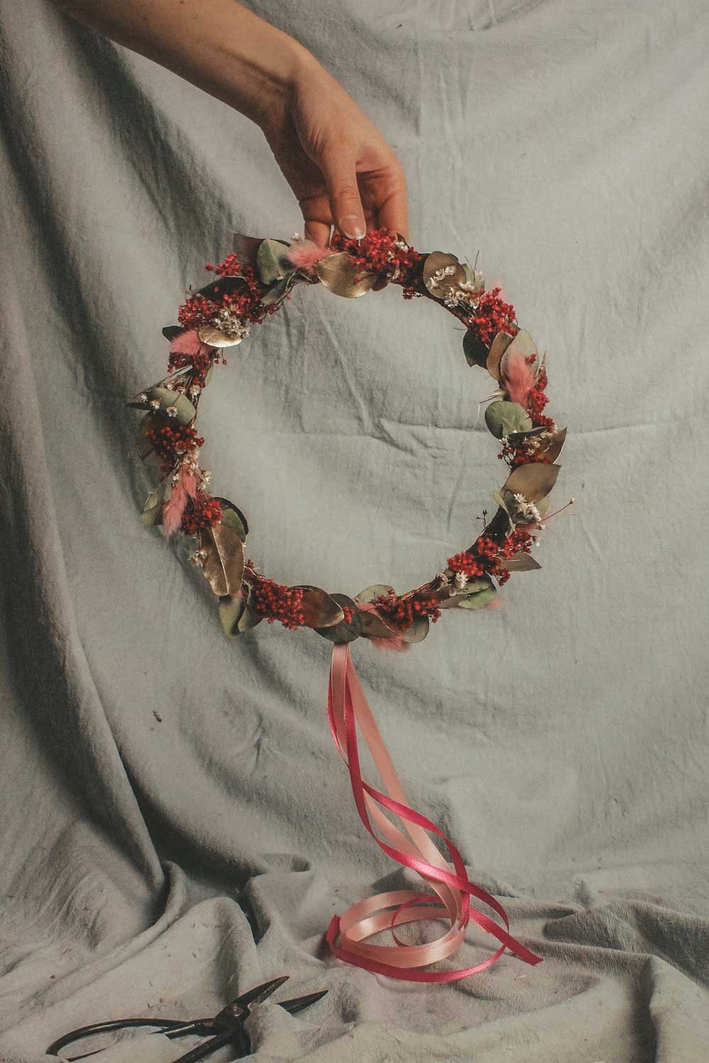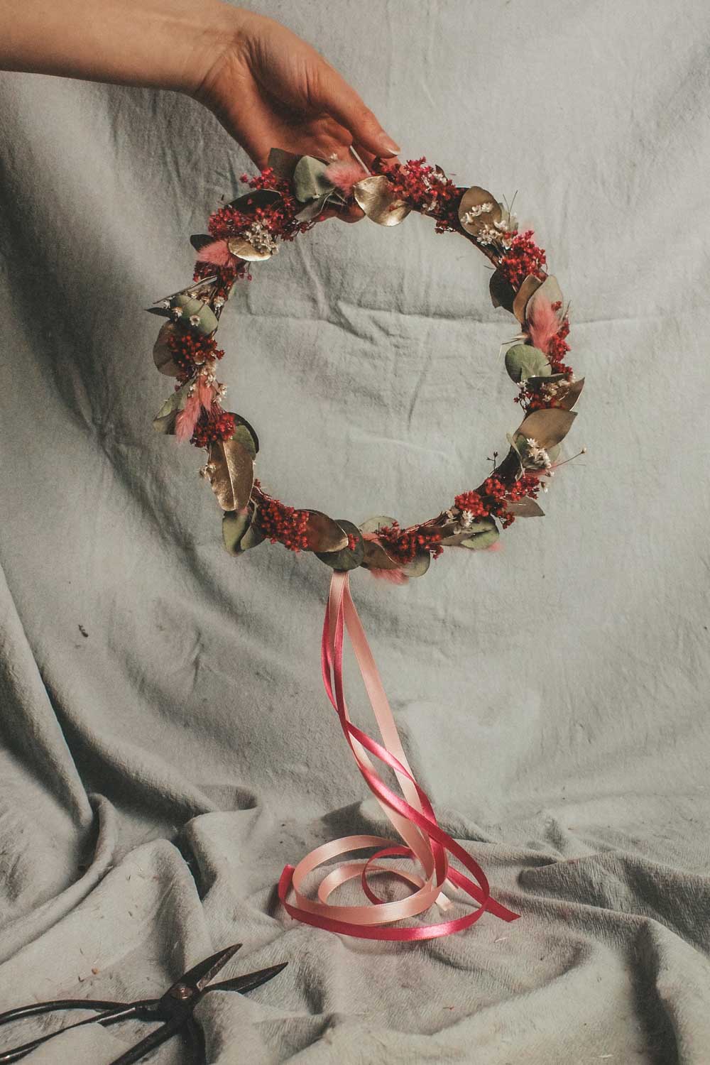 Hochwertig getrockneten und konservierten Blüten, Gräser und Blätter lassen unsere Wreaths für die Ewigkeit erblühen. Und das ganz ohne Gießen und Pflegen. Unsere Dried Flower Wreaths und Hoops werden in unserem Wiener Atelier mit viel Liebe und Zeit per Hand gefertigt. Die Designs werden wie am Foto abgebildet mit Satinbändern und Bastbändern geliefert und so kannst du die Kränze entweder an die Türe oder an die Wand als Dekoration hängen. Oder aber du lässt deinen Coffee-Table erblühen und verwandelst deinen Dried Flower Wreath in einen Tischkranz.