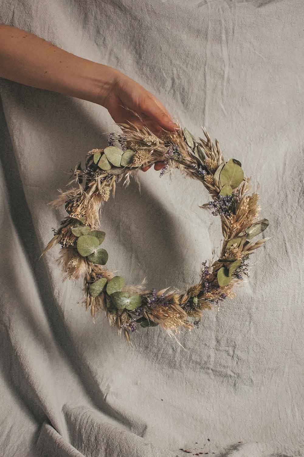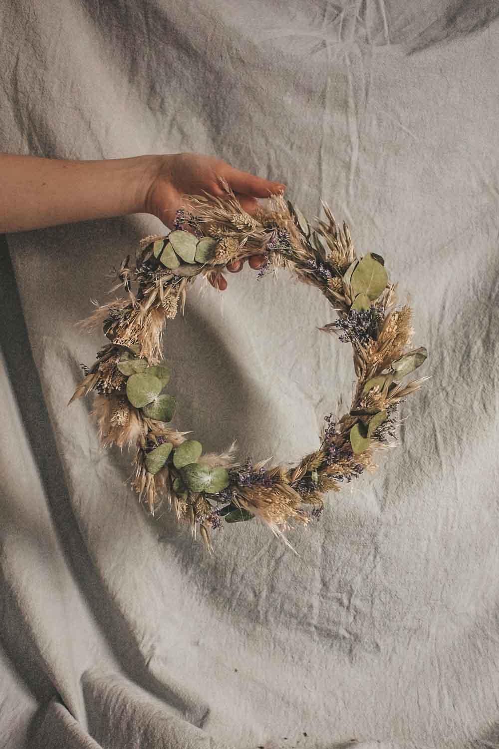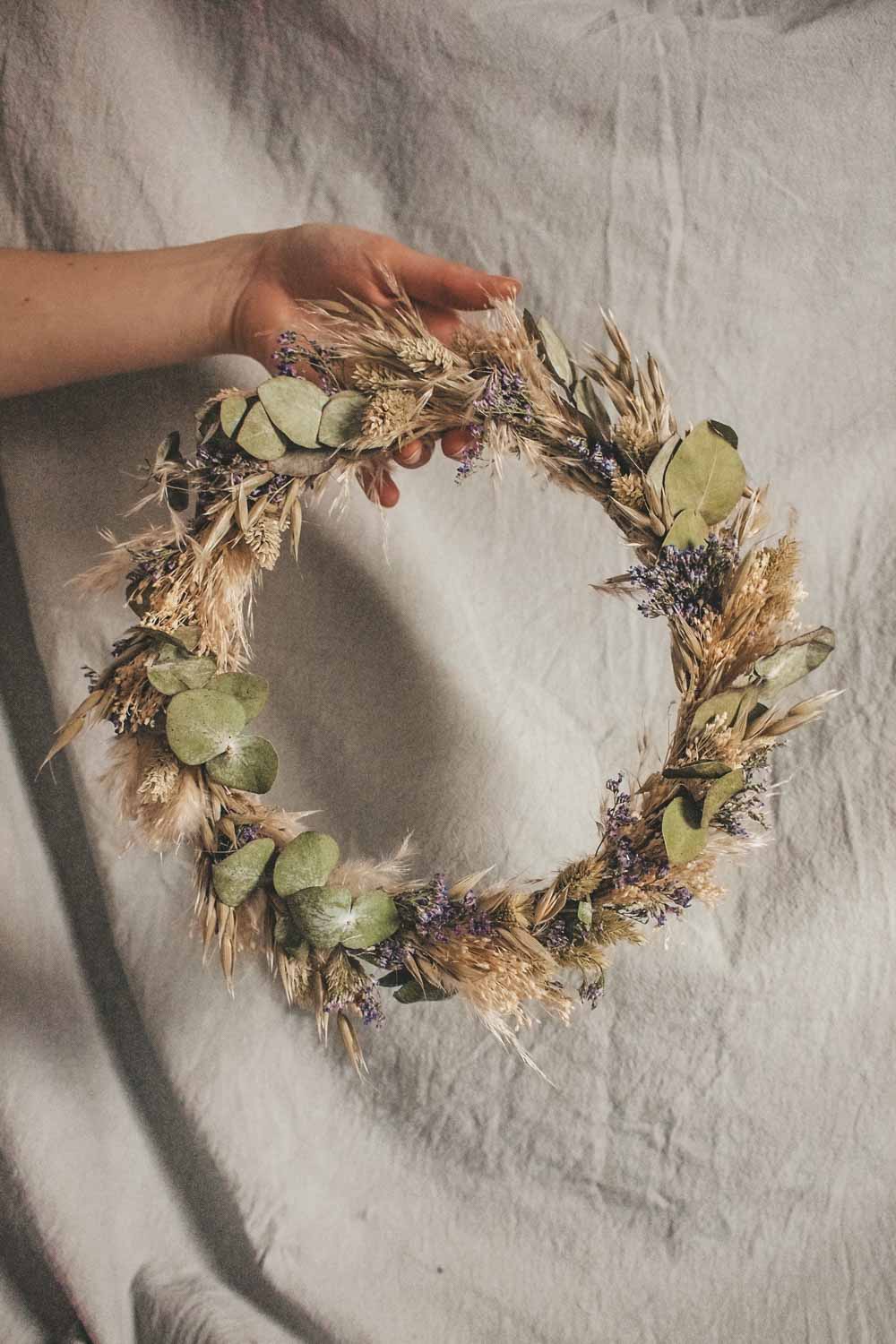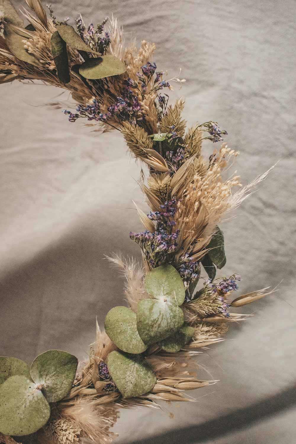 Hochwertig getrockneten und konservierten Blüten, Gräser und Blätter lassen unsere Wreaths für die Ewigkeit erblühen. Und das ganz ohne Gießen und Pflegen. Unsere Dried Flower Wreaths und Hoops werden in unserem Wiener Atelier mit viel Liebe und Zeit per Hand gefertigt. Die Designs werden wie am Foto abgebildet mit Satinbändern und Bastbändern geliefert und so kannst du die Kränze entweder an die Türe oder an die Wand als Dekoration hängen. Oder aber du lässt deinen Coffee-Table erblühen und verwandelst deinen Dried Flower Wreath in einen Tischkranz.