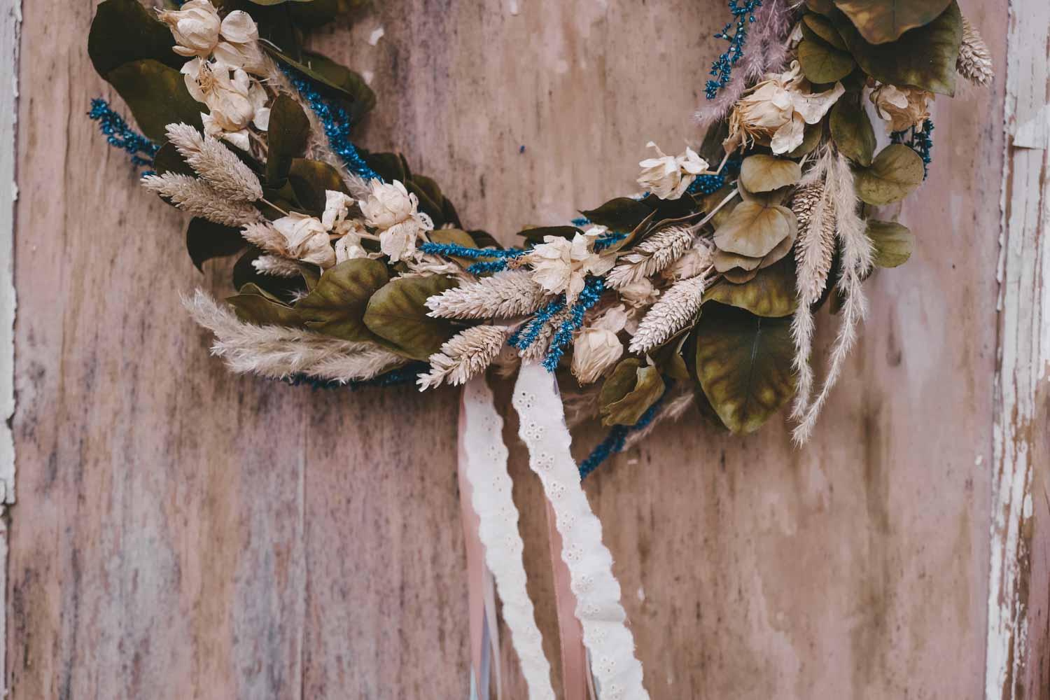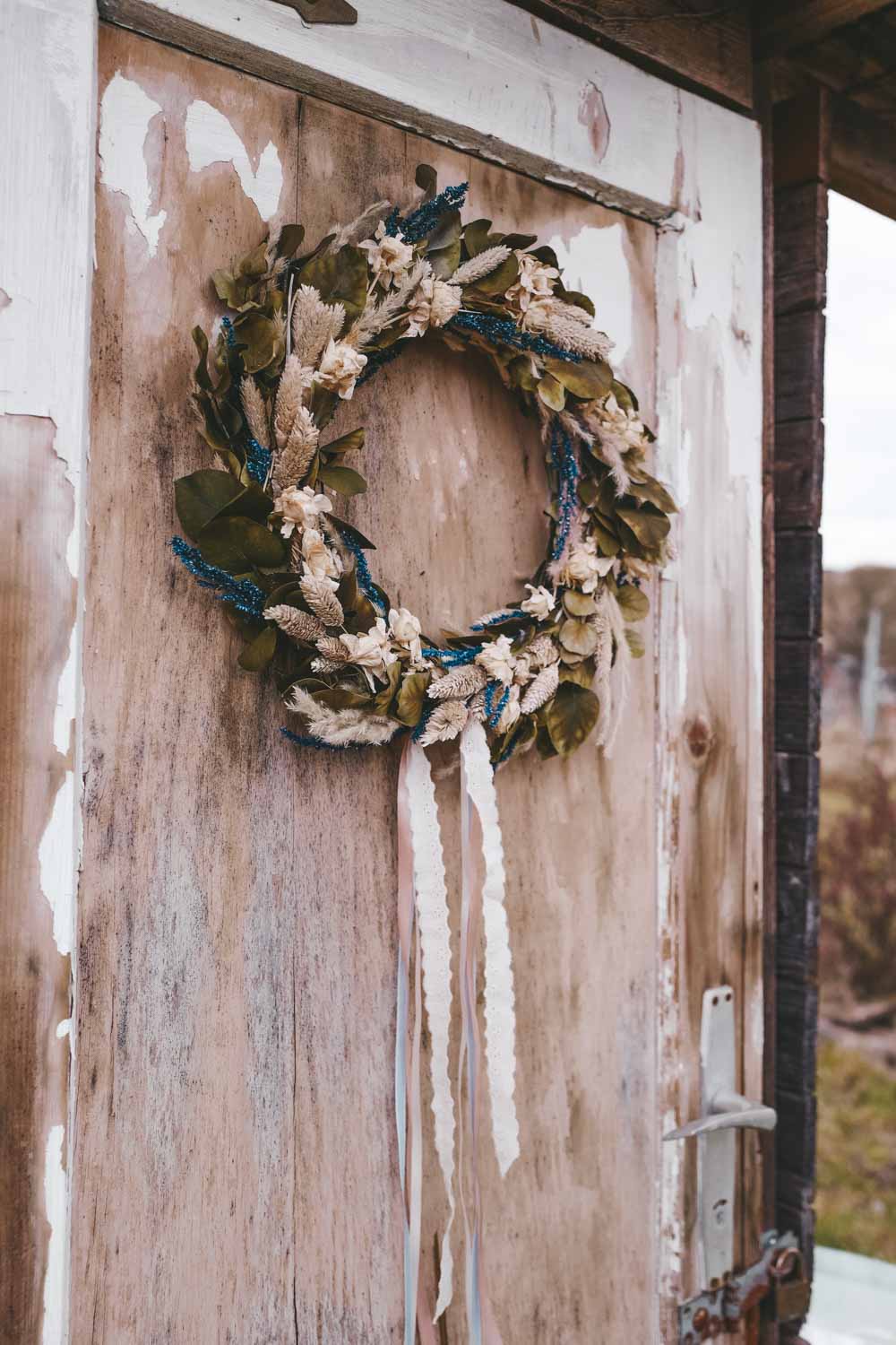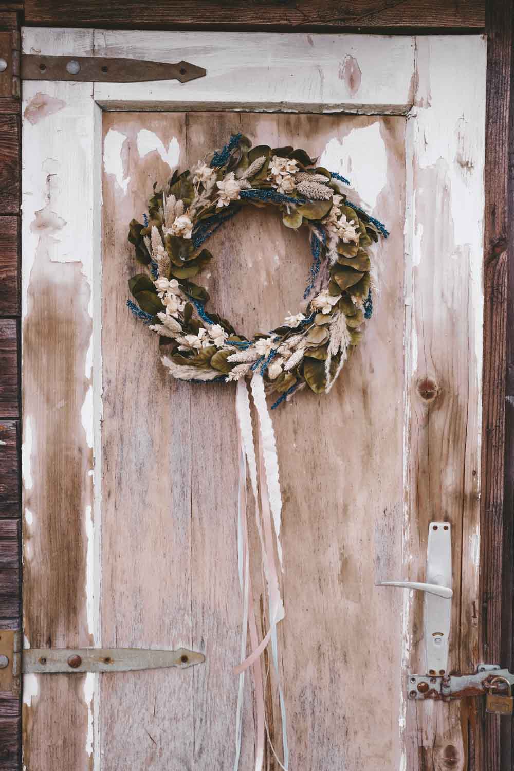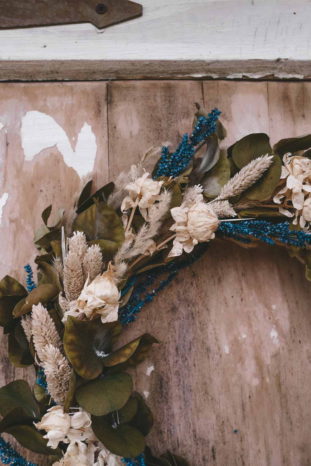 Du kannst den Look deines Dried Flower Wreaths im Handumdrehen jede Saison ändern. Einfach bei deinem stationären Stoffgeschäft oder Deko-Handel Bänder besorgen und immer wieder neue Farben und Bandstrukturen ausprobieren. Du kannst die Bänder ganz einfach in den Kranz einbinden oder mit einer Masche verzieren.