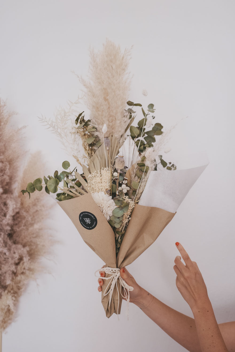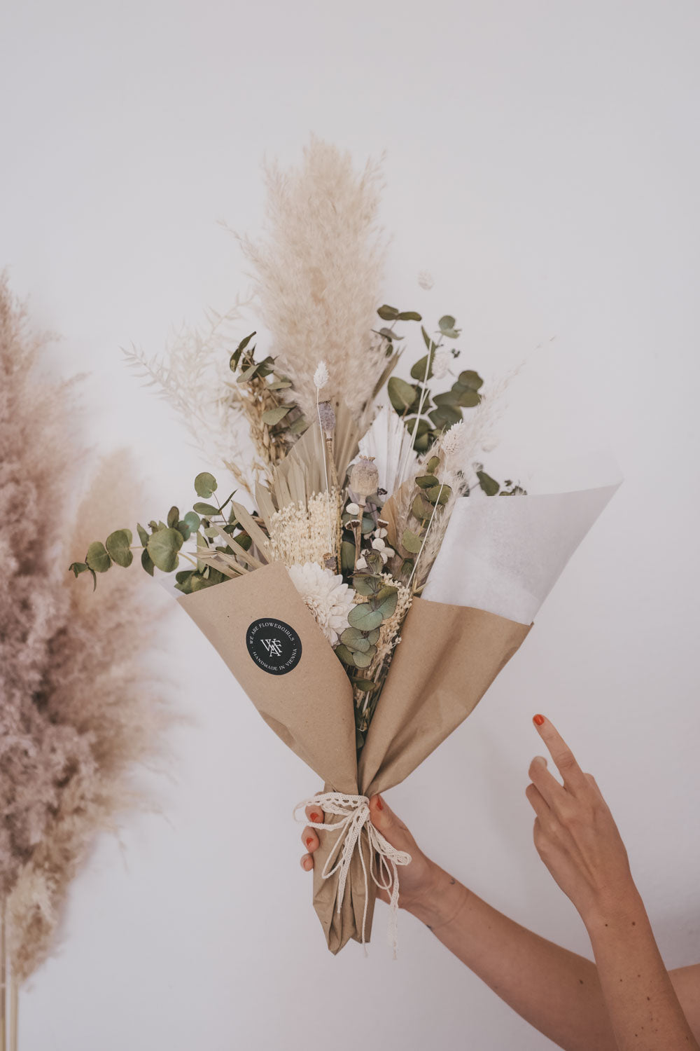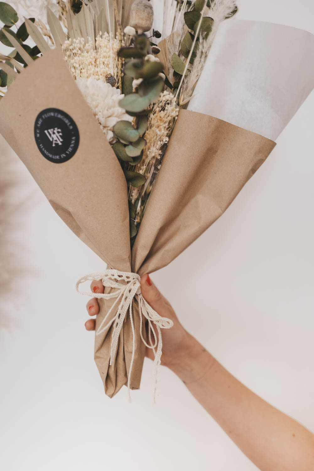 Unsere Trockenblumensträuße werden von uns aus hochwertig getrockneten und konservierten Dried Flowers gebunden und halten ein Leben lang. Sie sind die pflegeleichteste Dekoration für Zuhause und ein traumhaftes Geschenk wenn es mal einen Tick anders sein soll als ein klassischer Blumenstrauss.