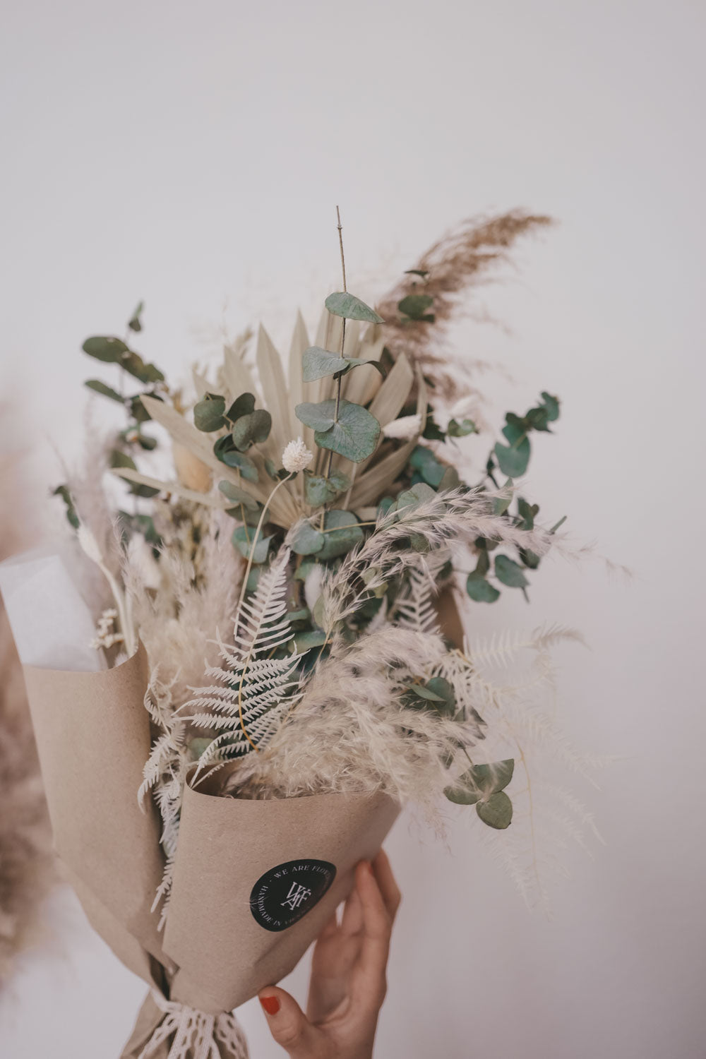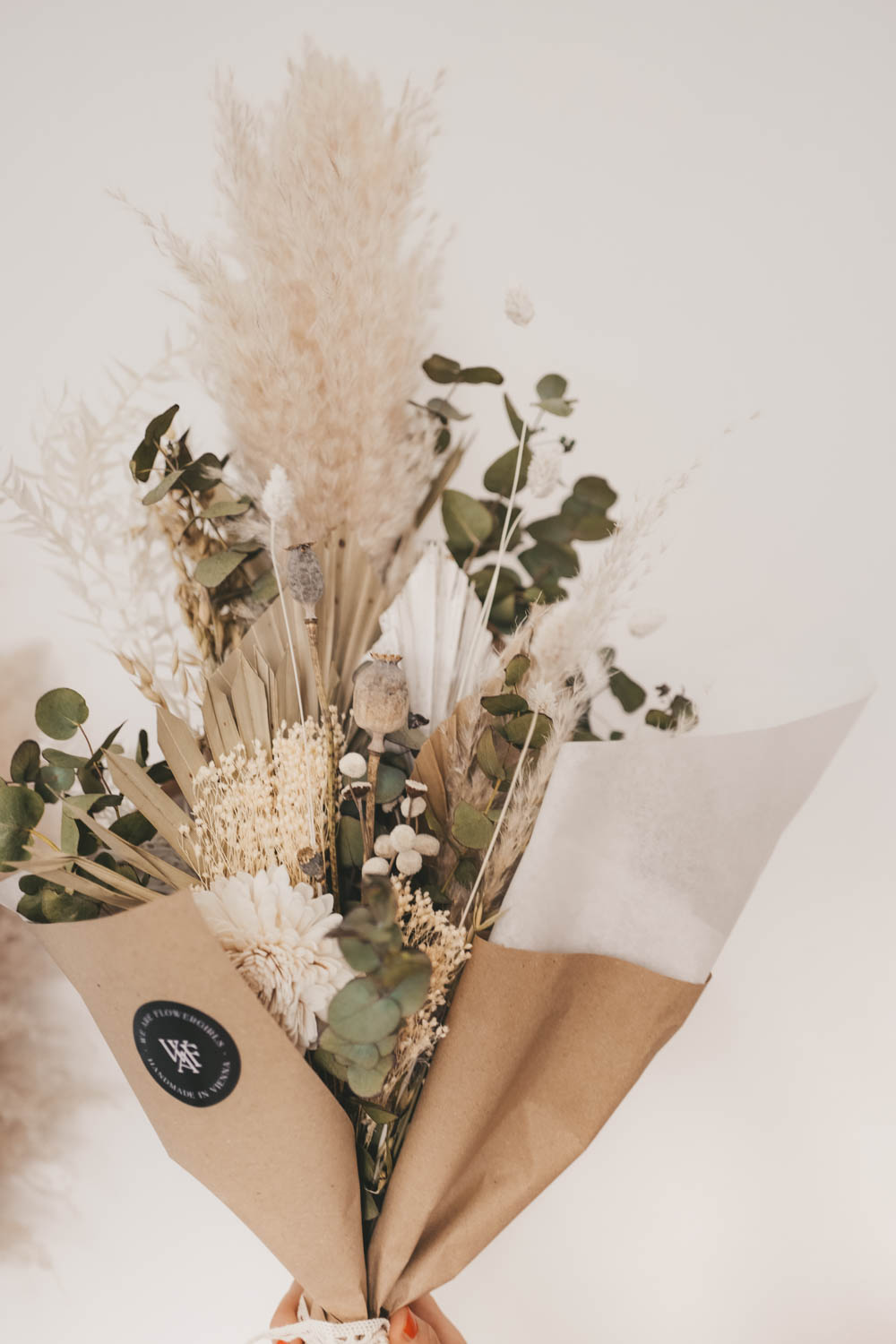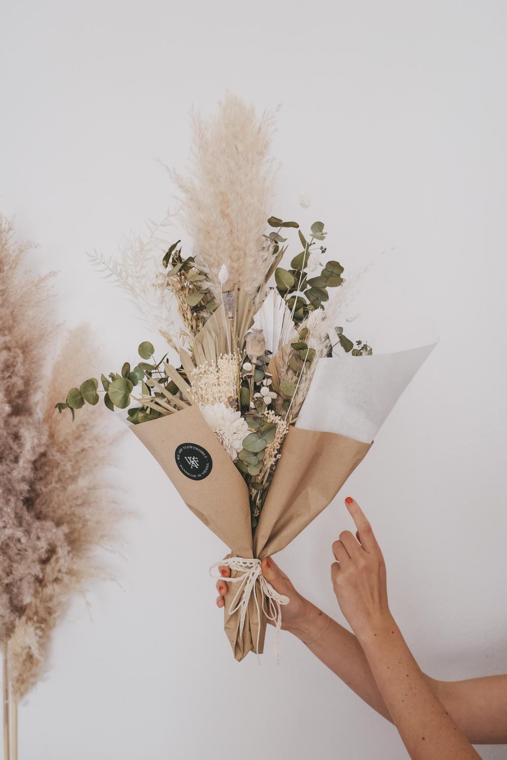 Unsere Trockenblumensträuße werden von uns aus hochwertig getrockneten und konservierten Dried Flowers gebunden und halten ein Leben lang. Sie sind die pflegeleichteste Dekoration für Zuhause und ein traumhaftes Geschenk wenn es mal einen Tick anders sein soll als ein klassischer Blumenstrauss.