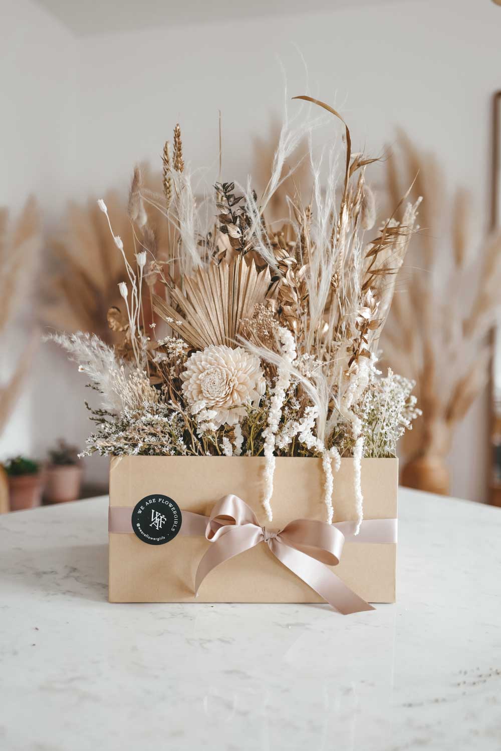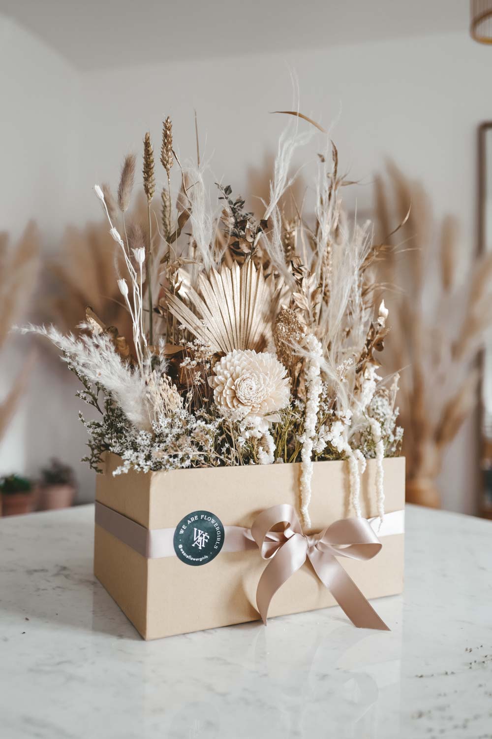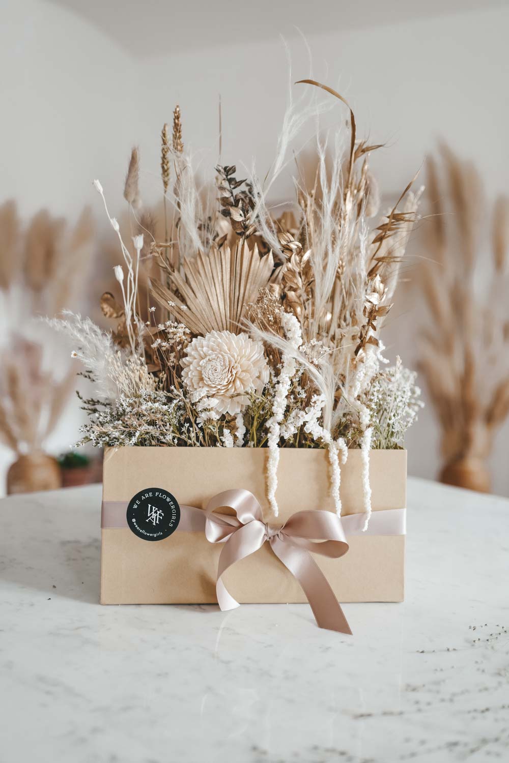 Unsere Dried Flower Boxen aus der »Flowers To Go Collection« sind das perfekte Mitbringsel zum Geburtstag, Geschenk zum Valentinstag oder Home-Deko für dein eigenes Zuhause. Unsere Blumenboxen werden von uns aus hochwertig getrockneten und konservierten Dried Flowers gefertigt und halten ein Leben lang. Sie sind die pflegeleichteste Dekoration für Zuhause und ein traumhaftes Geschenk wenn es mal einen Tick anders sein soll als ein klassischer Blumenstrauss.