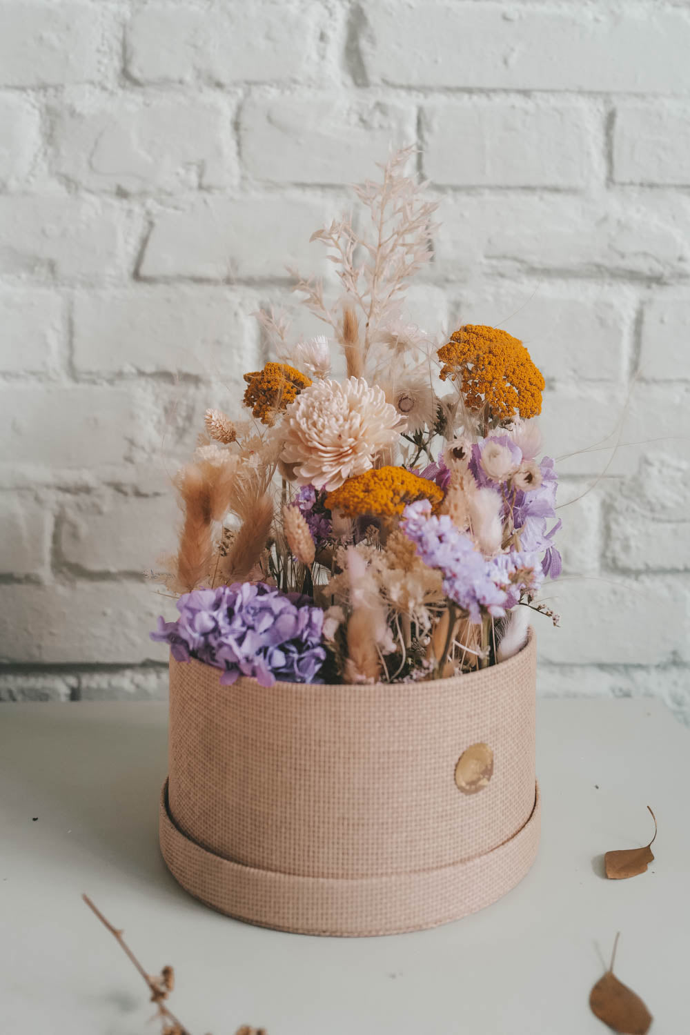 Unsere Dried Flower Boxen aus der »Flowers To Go Collection« sind das perfekte Mitbringsel zum Geburtstag, Geschenk zu Anlässen oder Home-Deko für dein eigenes Zuhause. Unsere Blumenboxen werden von uns aus hochwertig getrockneten und konservierten Dried Flowers gefertigt und halten ein Leben lang. Sie sind die pflegeleichteste Dekoration für Zuhause und ein traumhaftes Geschenk wenn es mal einen Tick anders sein soll als ein klassischer Blumenstrauss.