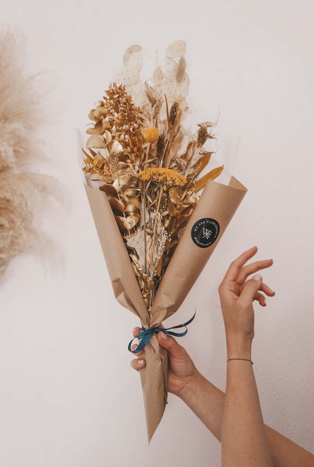 Unsere Trockenblumensträuße werden von uns aus hochwertig getrockneten und konservierten Dried Flowers gebunden und halten ein Leben lang. Sie sind die pflegeleichteste Dekoration für Zuhause und ein traumhaftes Geschenk wenn es mal einen Tick anders sein soll als ein klassischer Blumenstrauss.
