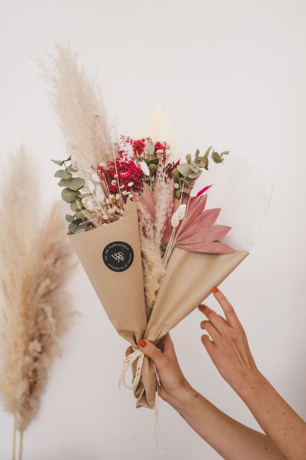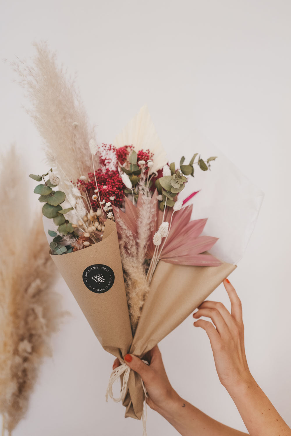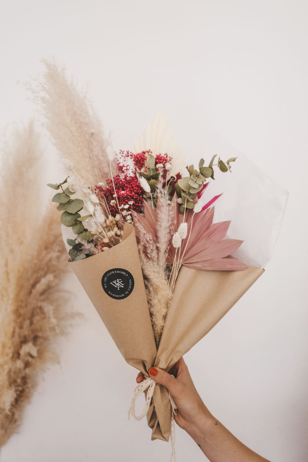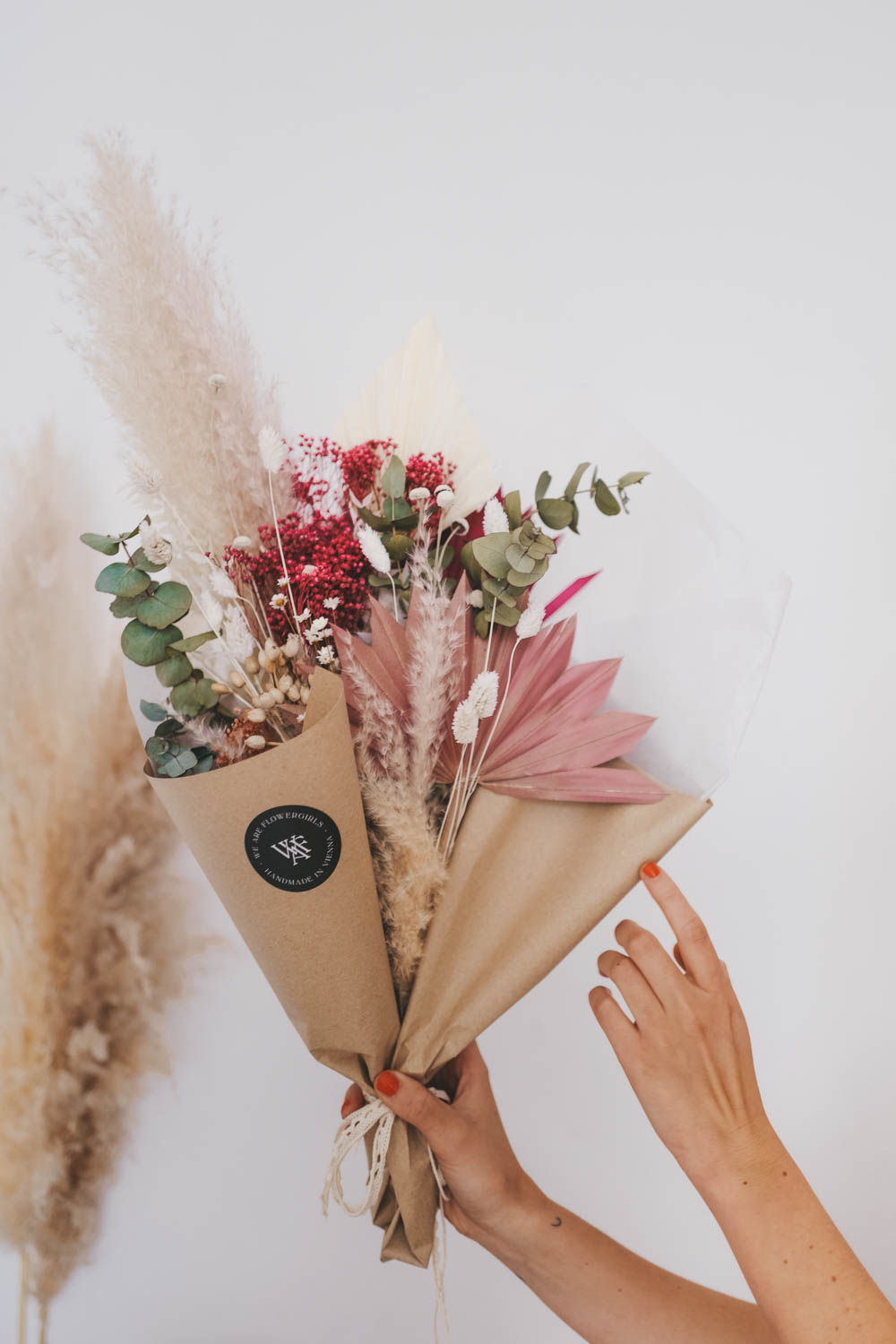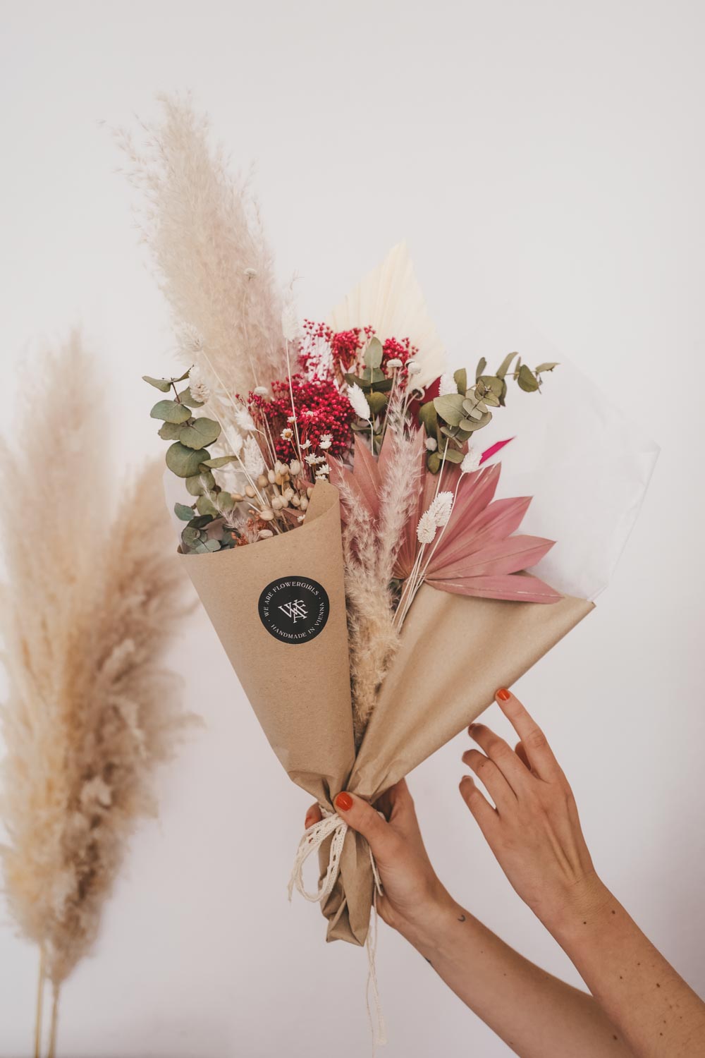 Unsere Trockenblumensträuße werden von uns aus hochwertig getrockneten und konservierten Dried Flowers gebunden und halten ein Leben lang. Sie sind die pflegeleichteste Dekoration für Zuhause und ein traumhaftes Geschenk wenn es mal einen Tick anders sein soll als ein klassischer Blumenstrauss.
