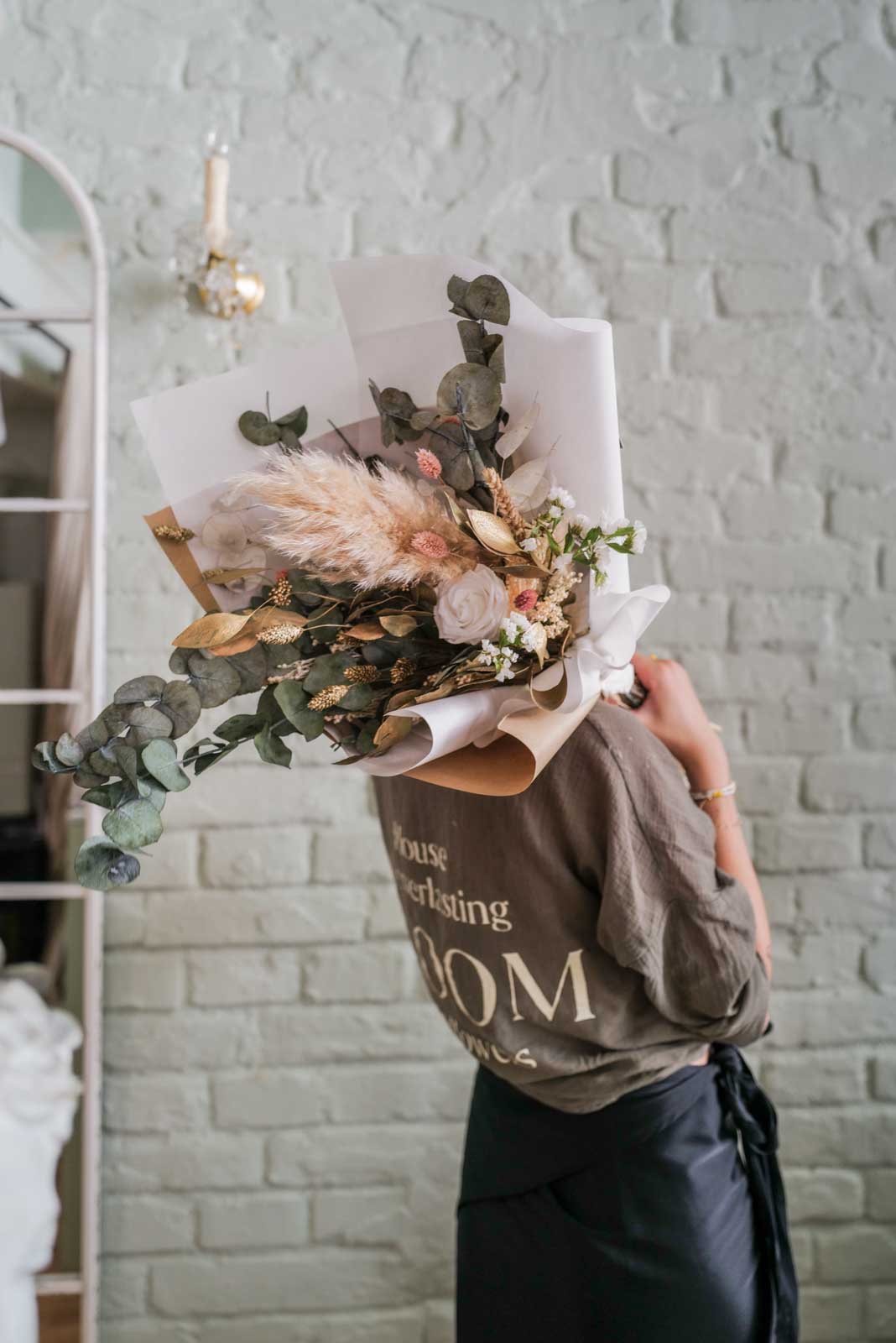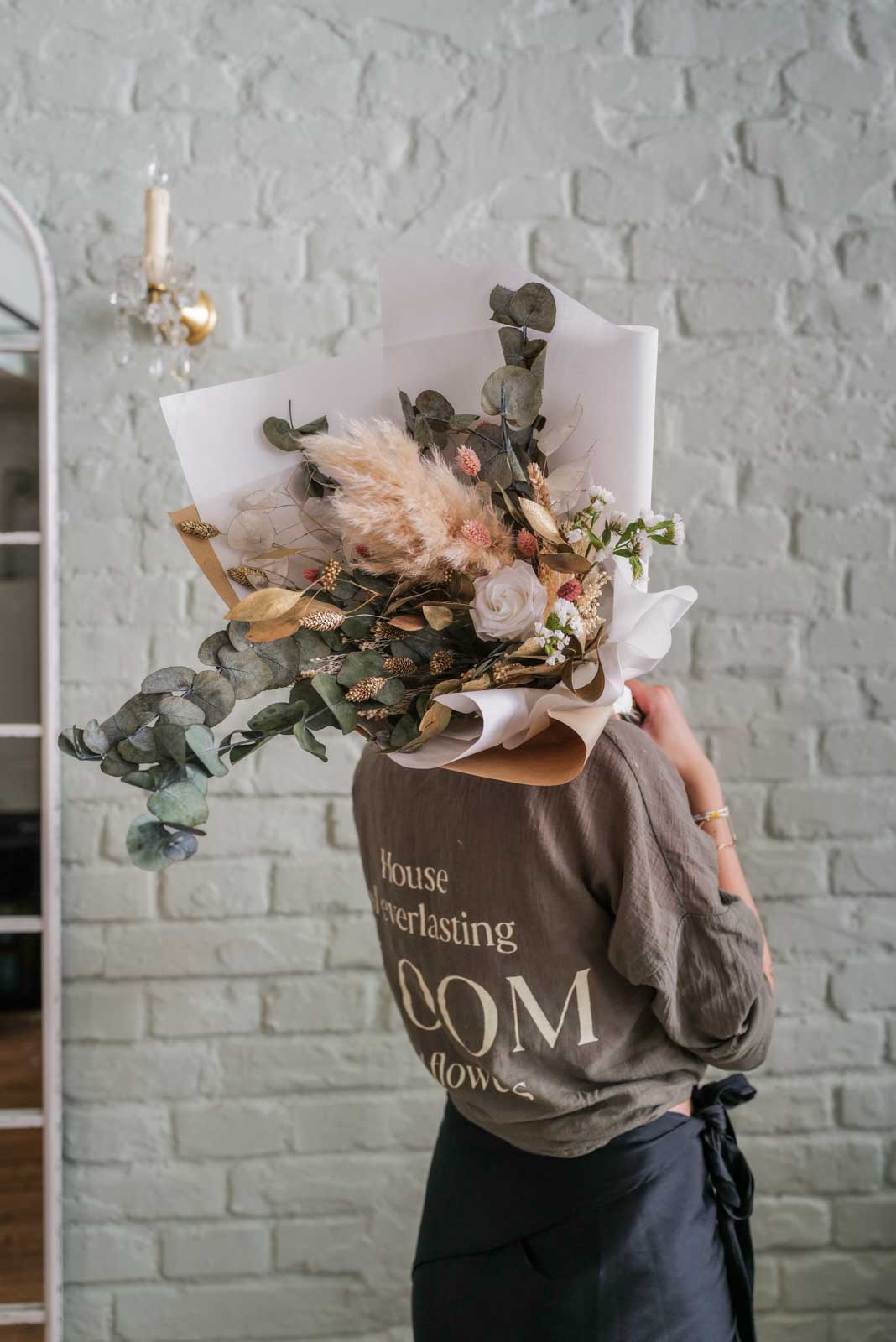 Unsere Trockenblumensträuße werden von uns aus hochwertig getrockneten und konservierten Dried Flowers gebunden und halten ein Leben lang. Sie sind die pflegeleichteste Dekoration für Zuhause und ein traumhaftes Geschenk wenn es mal einen Tick anders sein soll als ein klassischer Blumenstrauss.