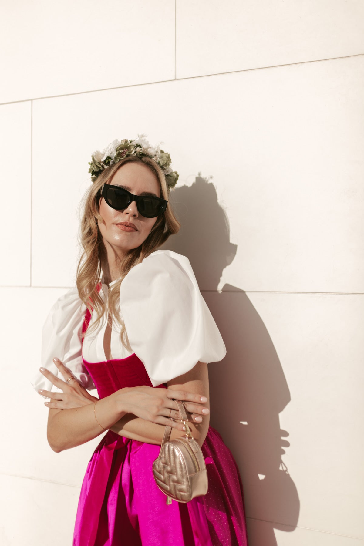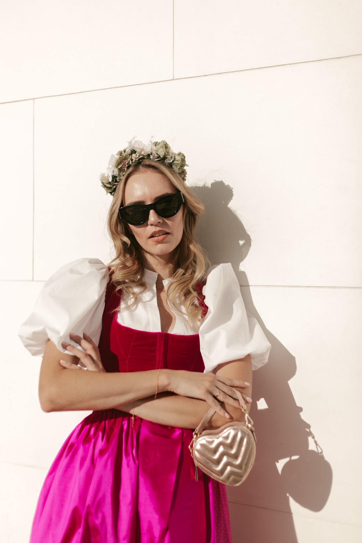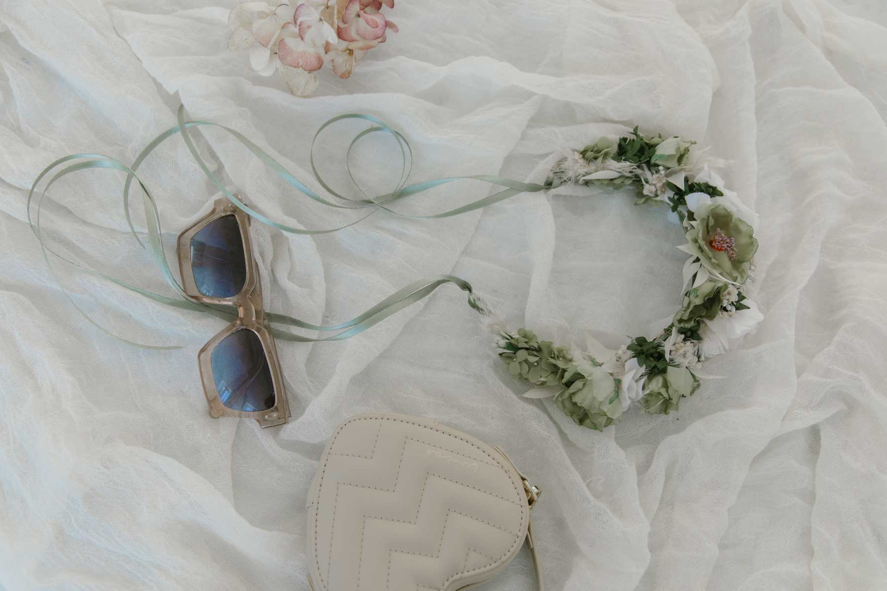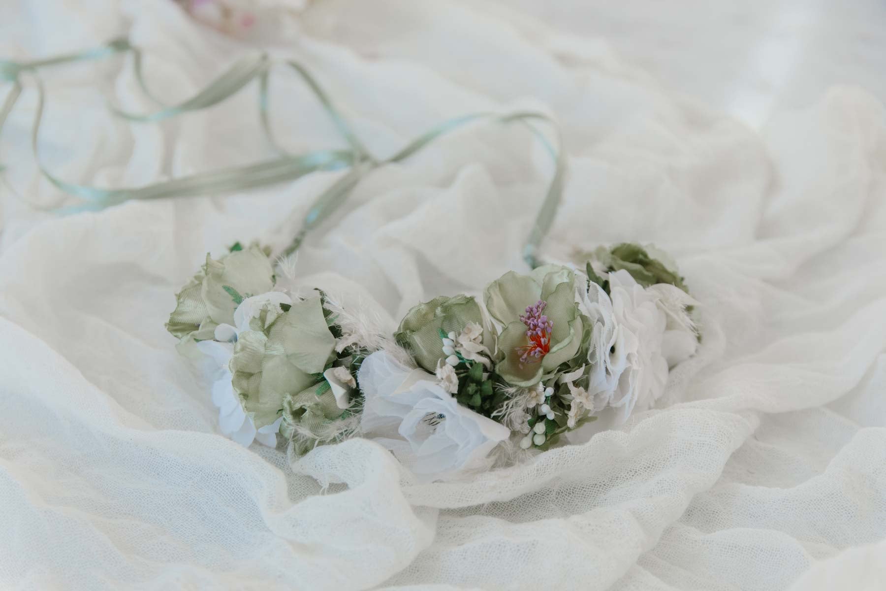 Flowercrown Adeen ist eine romantische Blumenkrone für die Ewigkeit die niemals verblüht. Handgemacht in Wien aus vintage Seidenblumen im Wiener Atelier von We Are Flowergirls. Zum Binden mit Satinbändern aus der Schweiz.