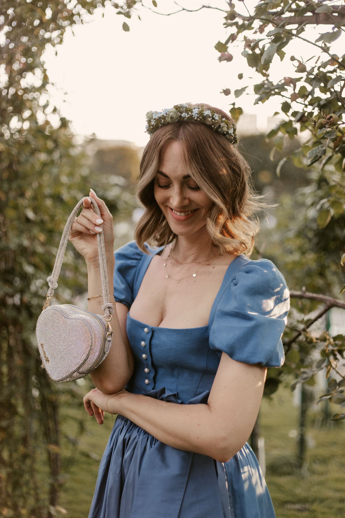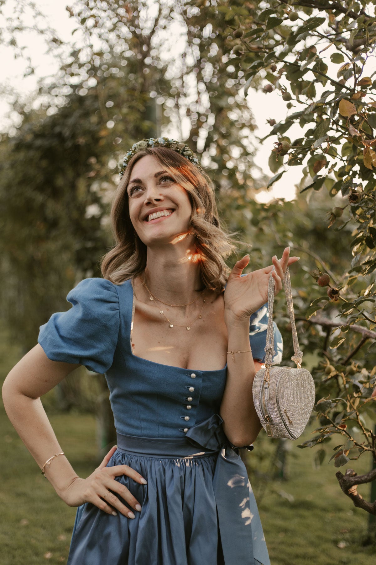 Beachte, dass unsere Designs aus hochwertigen Materialien gefertigt werden. Jedes Stück wird in unserem Wiener Atelier mit Blumen-Raritäten aus den 50ern bis 90ern per Hand gefertigt. Daher behandle dein Stück bitte mit Liebe, lege das Design nicht über länge Zeit in die Sonne und schütze es vor Nässe. So hält dein Unikat ein Leben lang und überdauert Generationen.