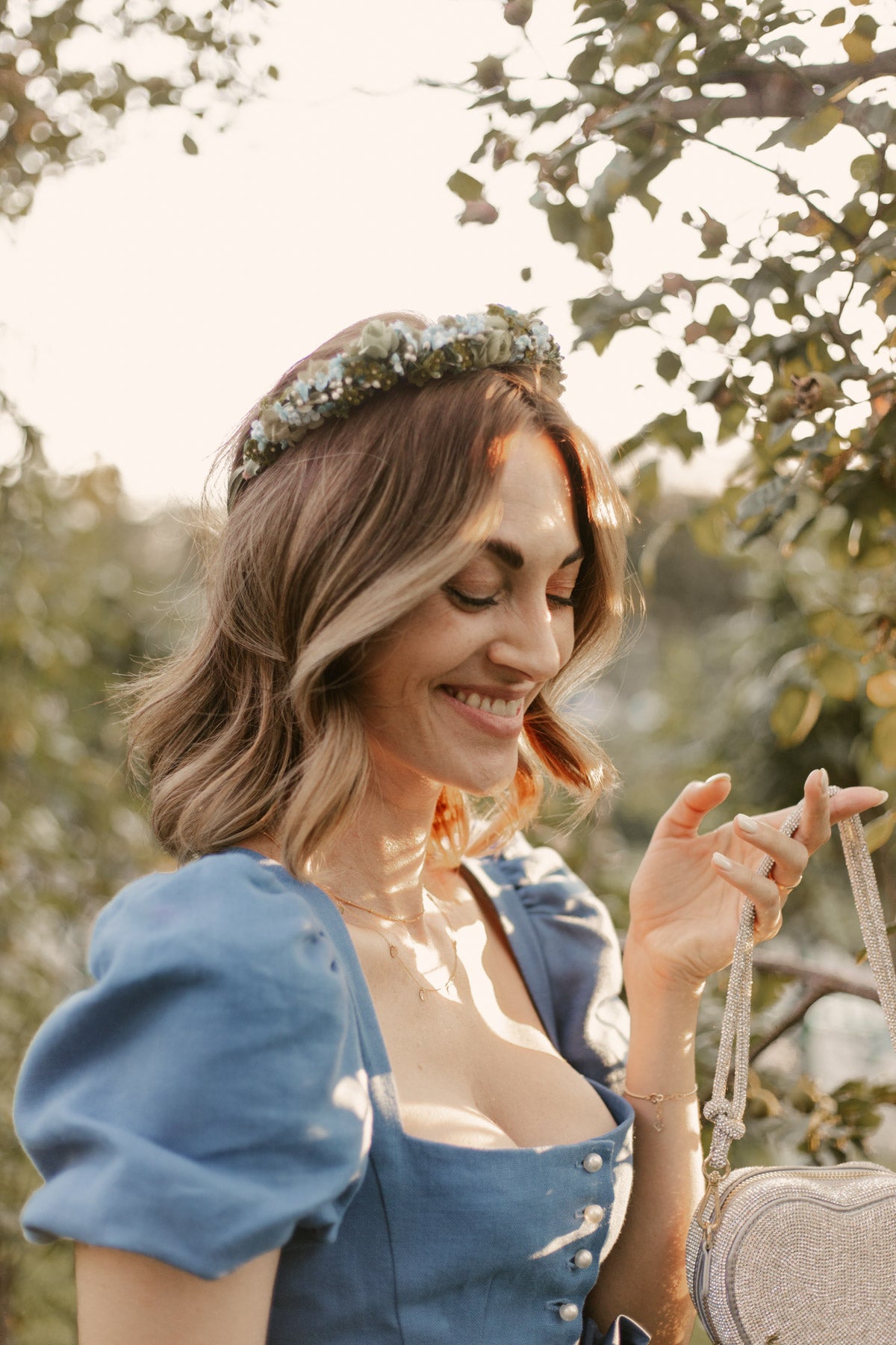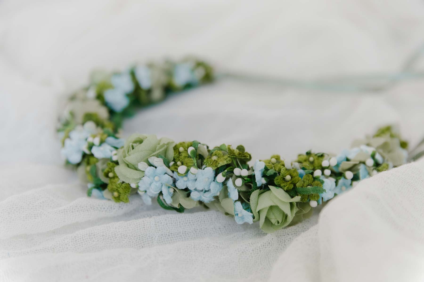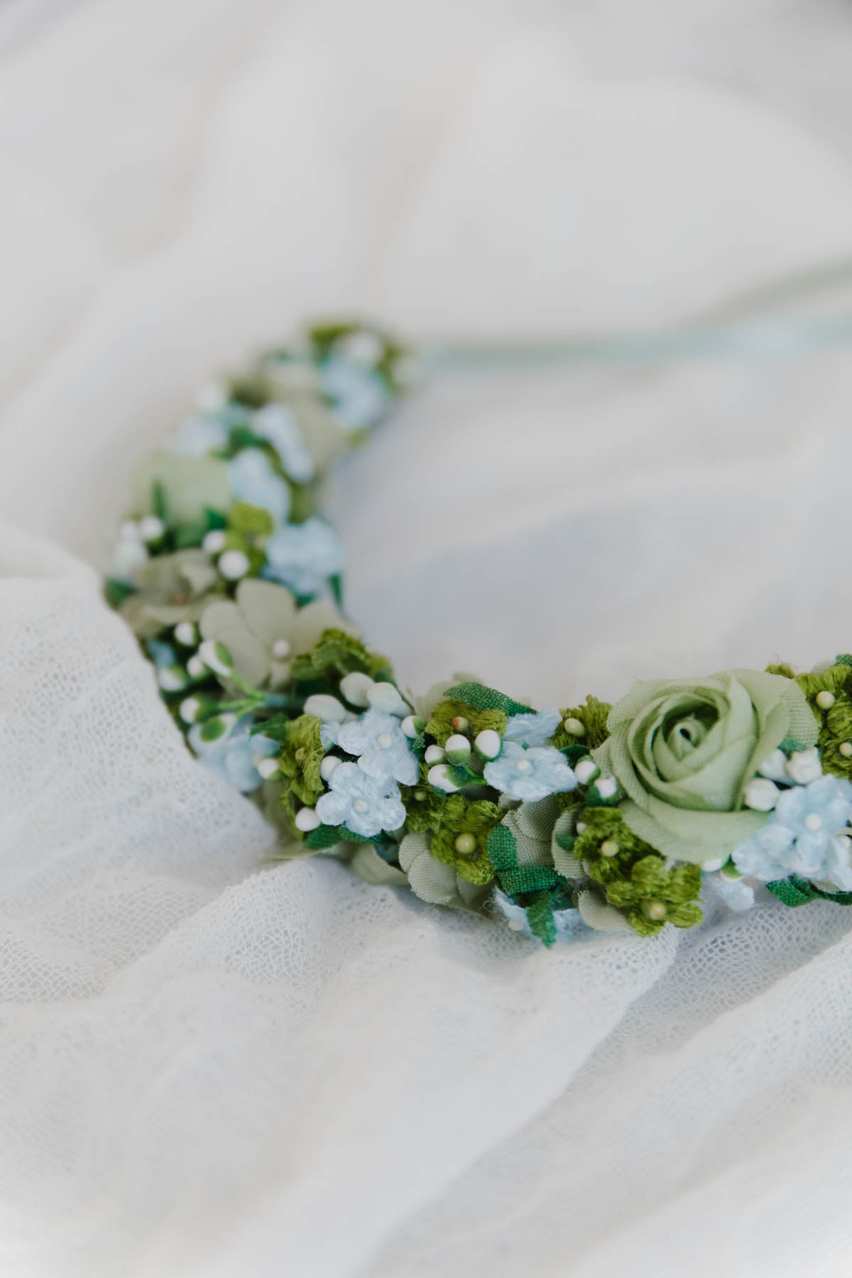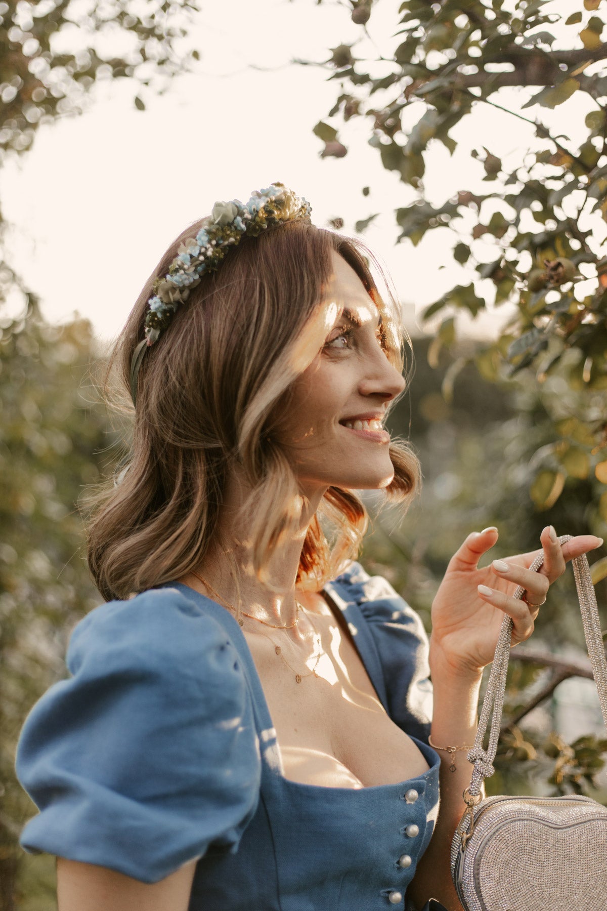Flowercrown Anda ist eine romantische Blumenkrone für die Ewigkeit die niemals verblüht. Handgemacht in Wien aus vintage Seidenblumen im Wiener Atelier von We Are Flowergirls. Zum Binden mit Satinbändern aus der Schweiz.