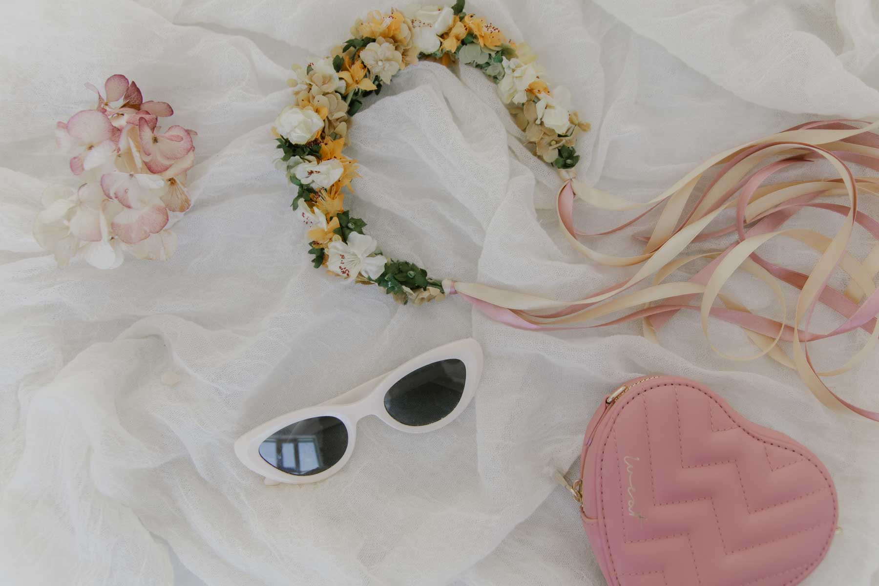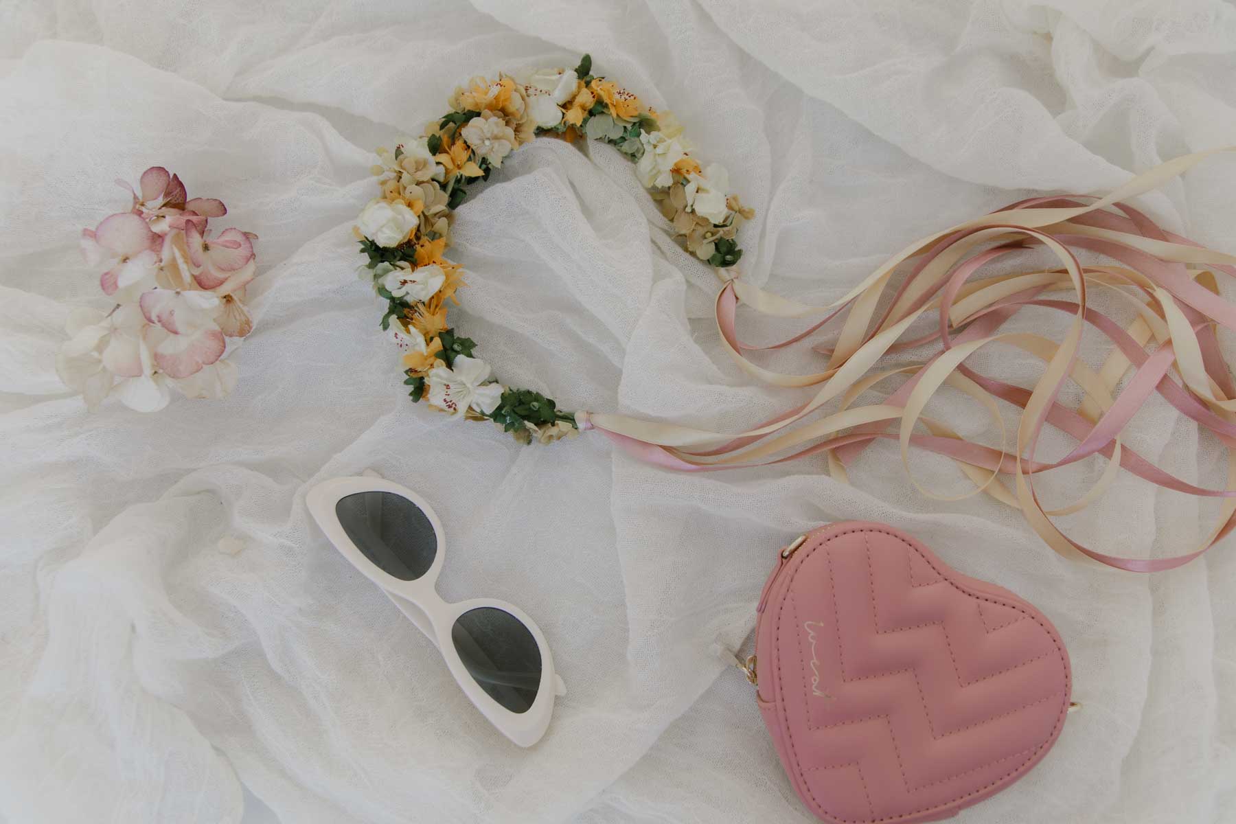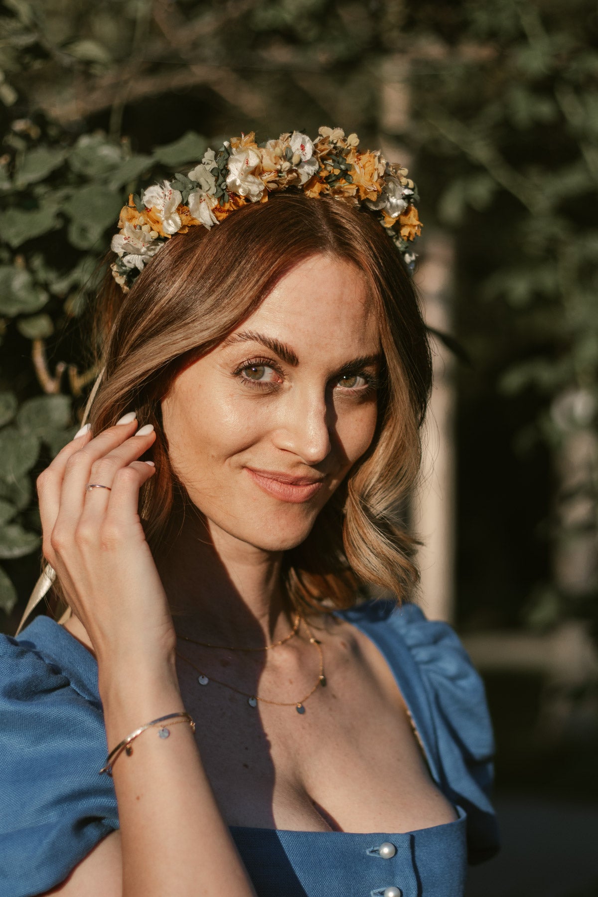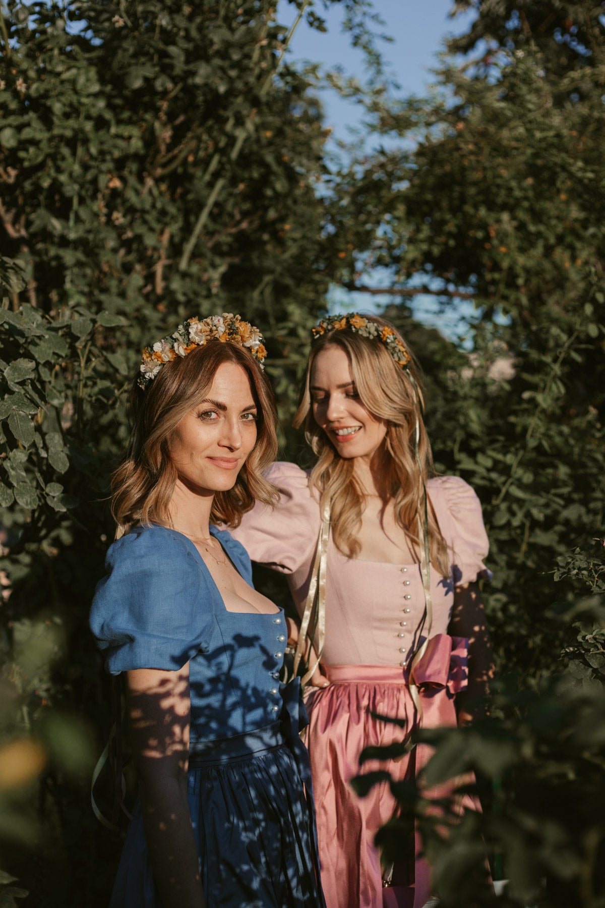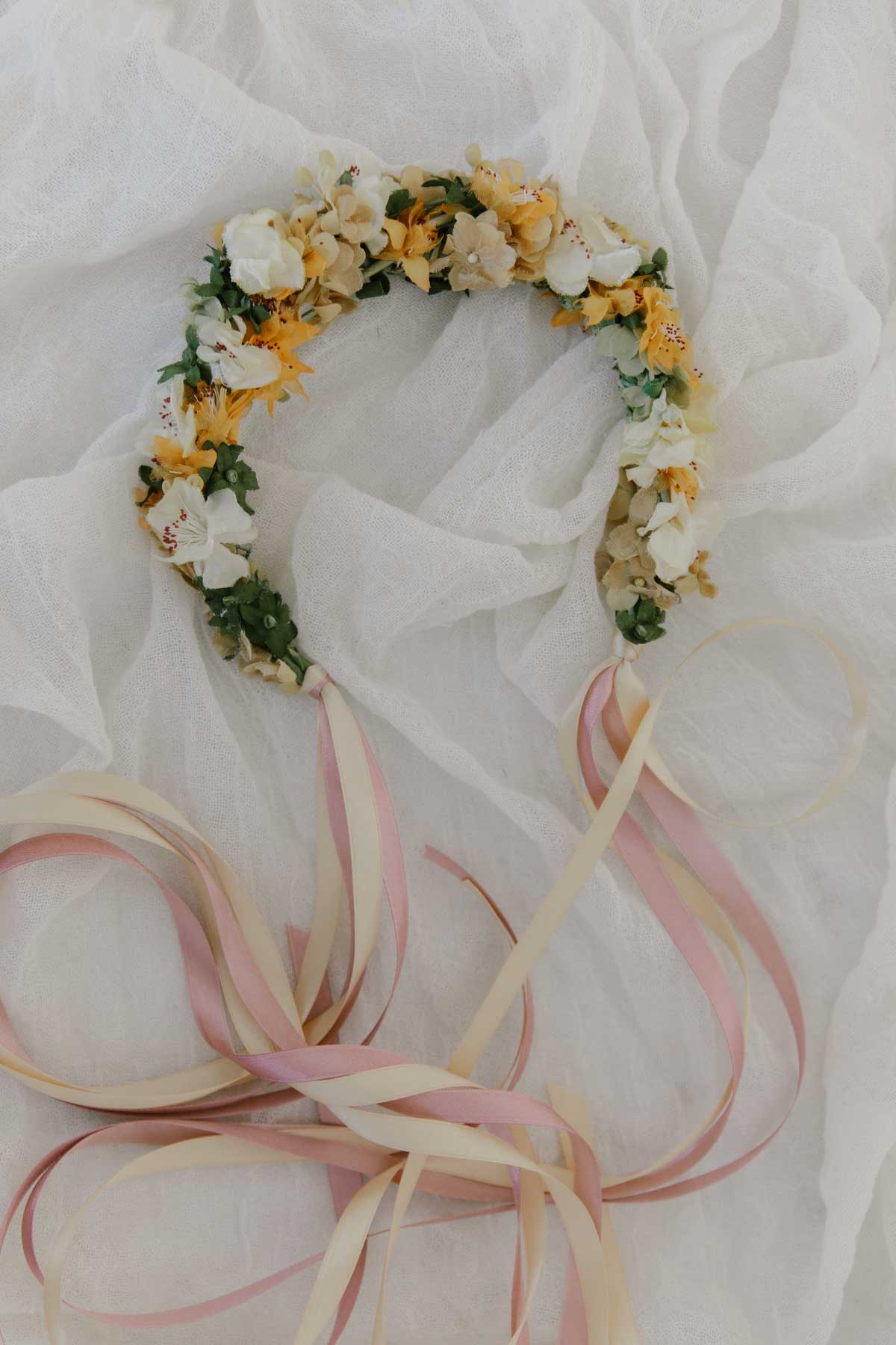 Flowercrown Ina ist eine romantische Blumenkrone für die Ewigkeit die niemals verblüht. Handgemacht in Wien aus vintage Seidenblumen im Wiener Atelier von We Are Flowergirls. Zum Binden mit Satinbändern aus der Schweiz.