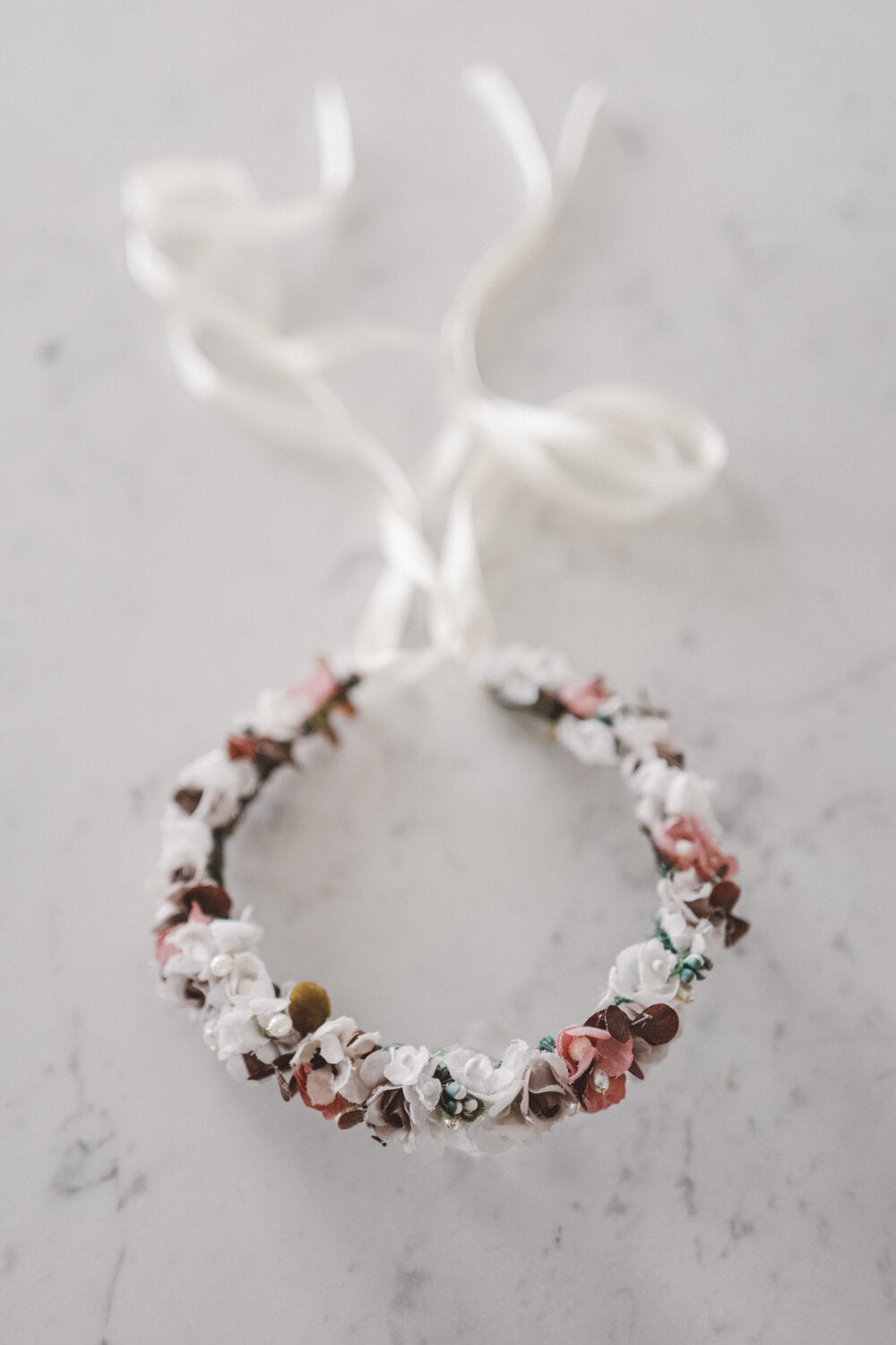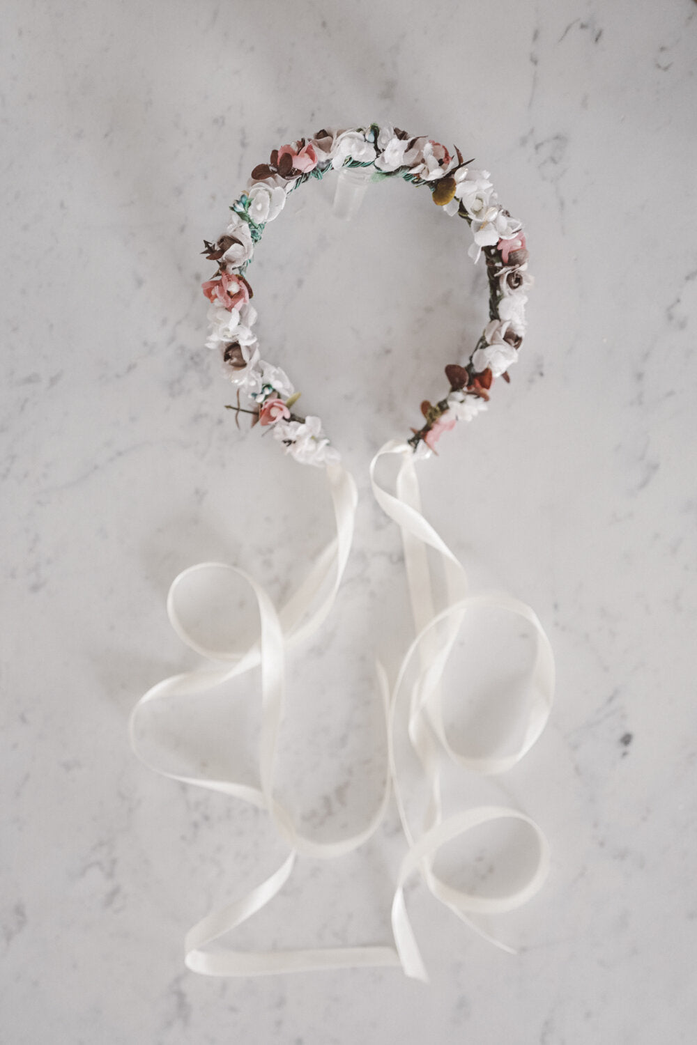 Unsere Blumenkronen sind biegsam und können so jeder Kopfform angepasst werden.