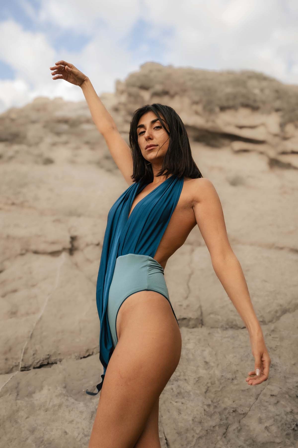 Du kannst unseren Swimsuit klassisch mit 3/5 Po-Bedeckung tragen, oder auch höher gezogen etwas sexier mit “cheeky shape”.