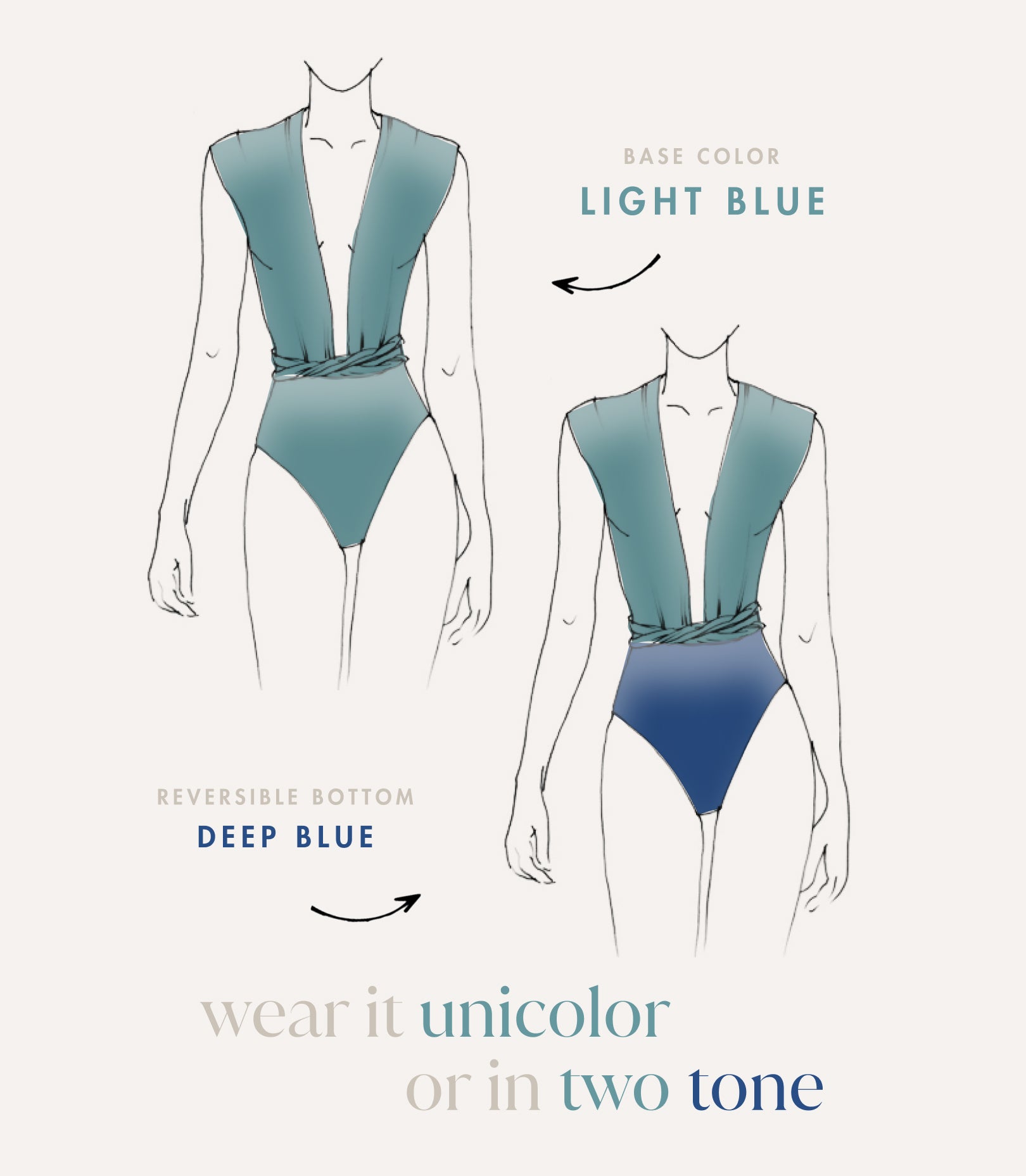 Reversible & Convertible Swimsuit LIGHT BLUE and Deep Blue