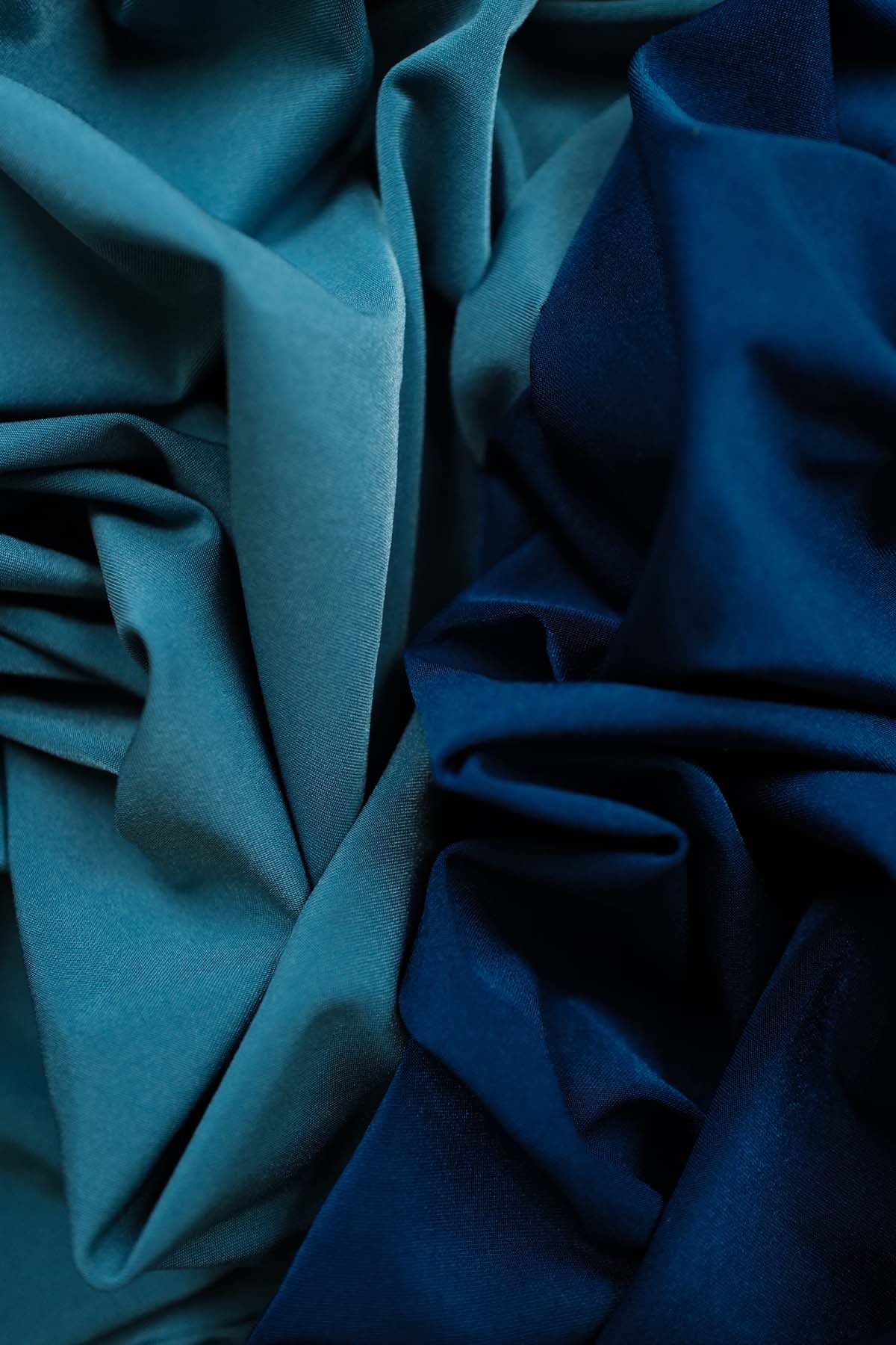 Die Außenhose und Oberteilbahnen sind Hellblau. Das Innenhöschen Dunkelblau. So kannst du unseren Swimsuit entweder Unicolour oder two tone tragen.