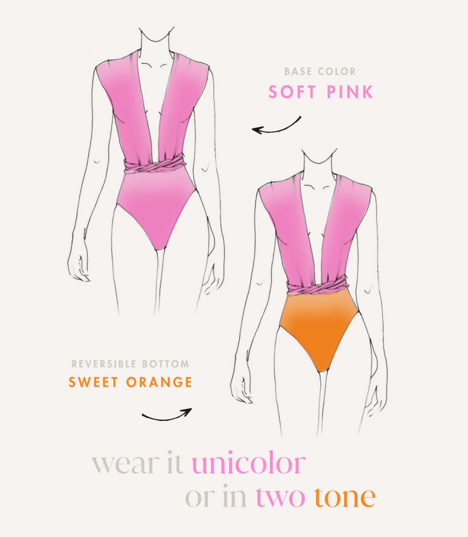 Reversible & Convertible Swimsuit SOFT PINK and Sweet Orange
