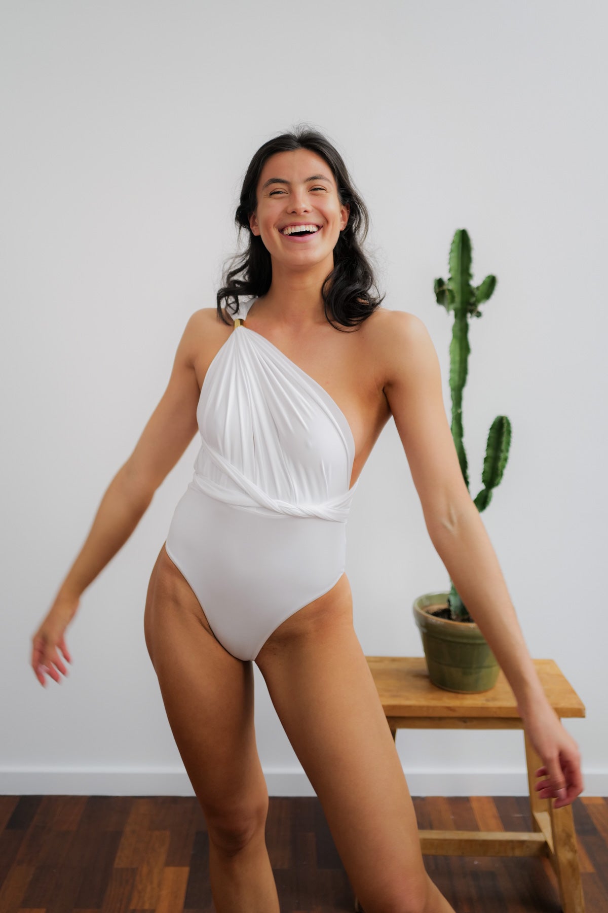 - Der Badeanzug, der mit Rock oder Hose ein cooles Outfit zaubert.