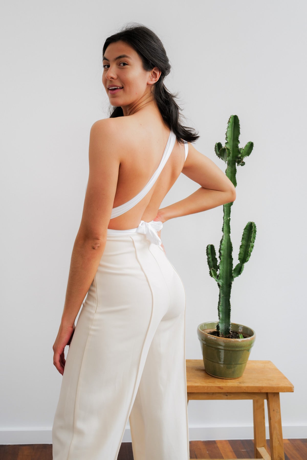 Du kannst unseren Swimsuit auch umgekehrt tragen - also das Vorderteil mit den Bindebahnen am Rücken. So ist der Po-Teil vorne und die Bahnen starten hinten. So ist der Po-Teil etwas cheekier zu tragen. Bedeckt aber noch immer schön den Po.