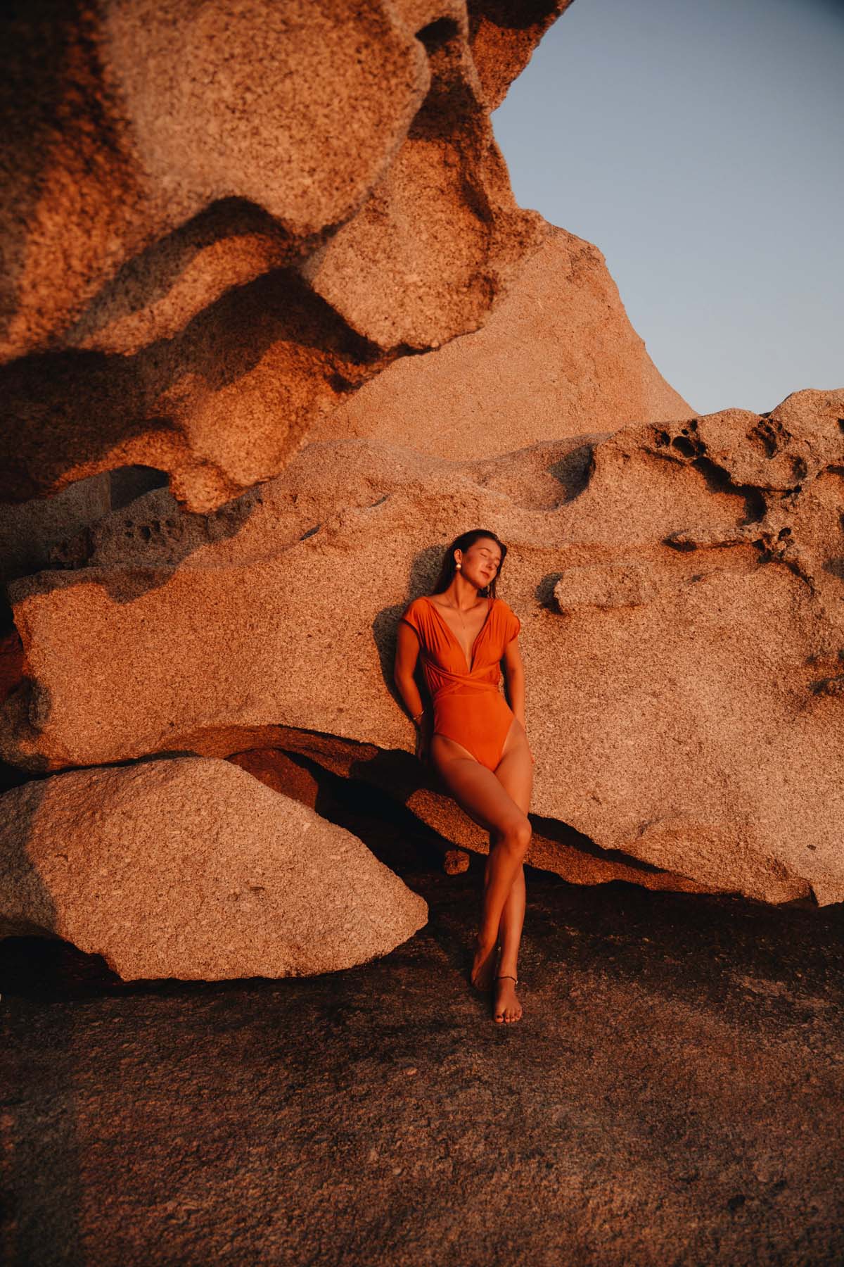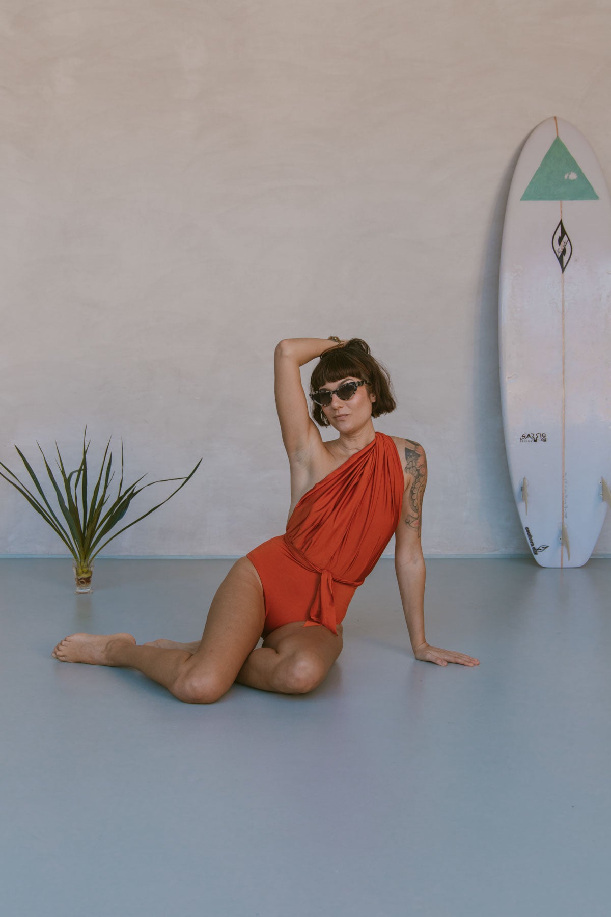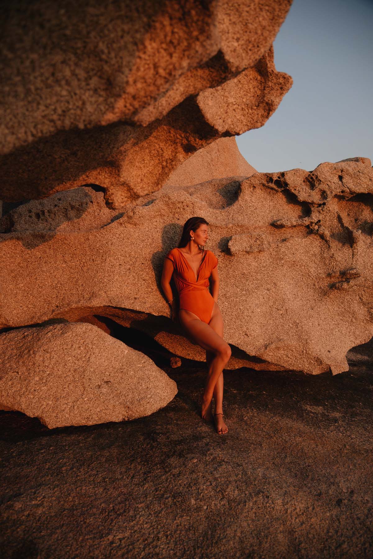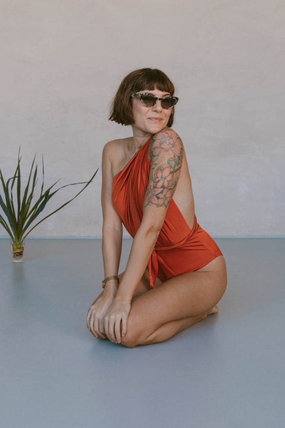 Du kannst unseren Swimsuit klassisch mit 3/5 Po-Bedeckung tragen, oder auch höher gezogen etwas sexier mit “cheeky shape”.
