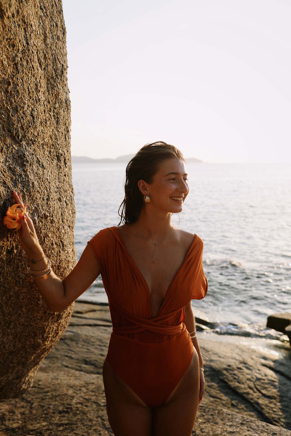 Verwandle deinen Badeanzug im Nu in ein Abend-Top. Einfach eine Hose oder hohen Rock kombinieren und schon hast du das perfekte Abend-Outfit.
