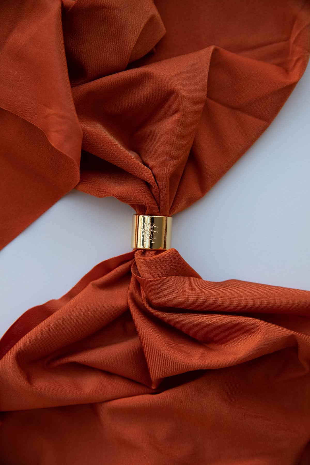 Mit unseren neuen 18k Gold Tubes und sind jetzt noch mehr Bindearten möglich. Unsere Golden Tubes kannst du ganz leicht auf deine Oberteil-Bahnen fädeln und so einen besonderen eye-Catcher Look kreieren.
