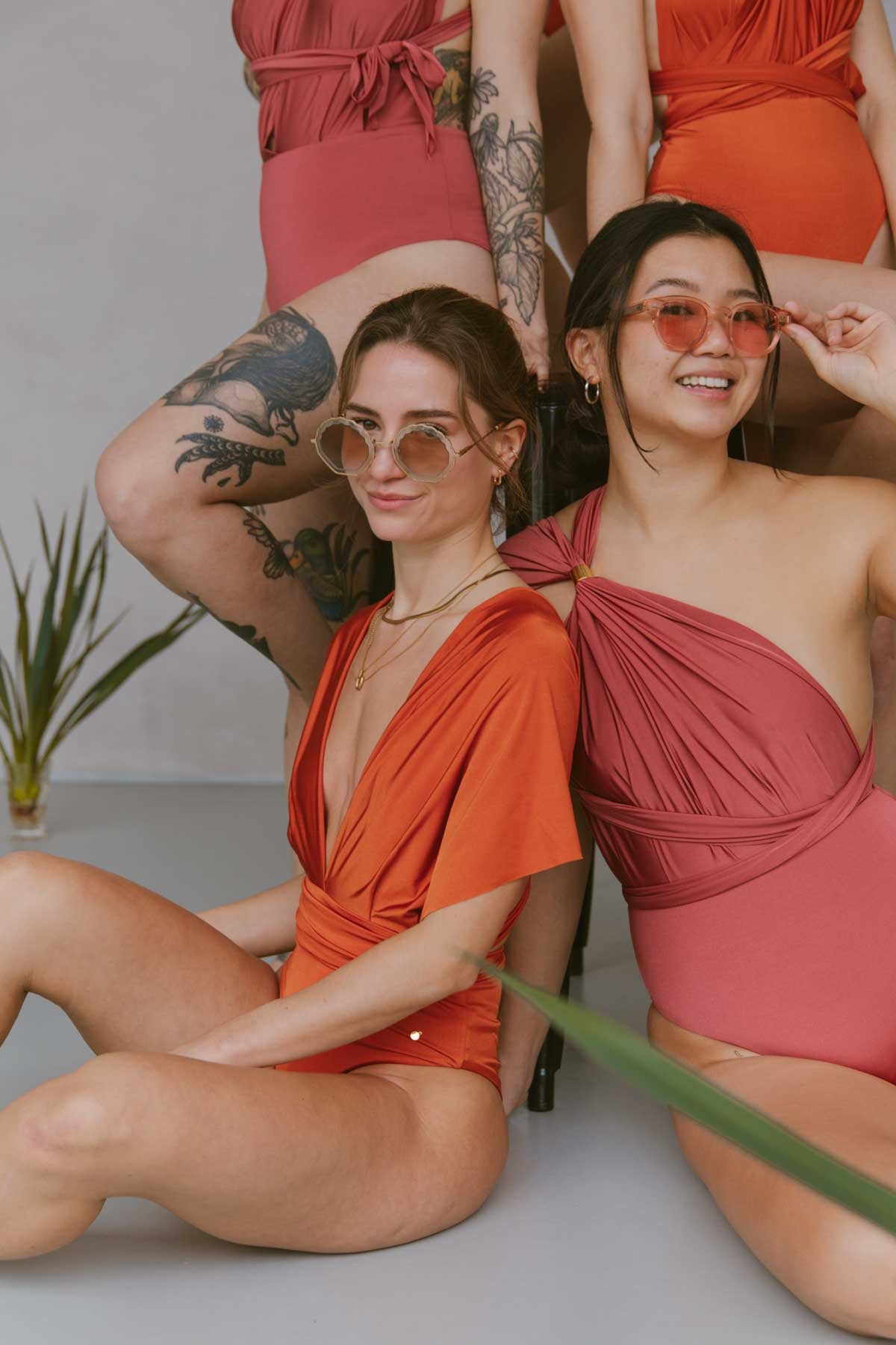 Die Sustainable & Convertible Swimwear Linie von »We Are Flowergirls« wird aus einem regenerated Nylonstoff made in Italy genäht. Dieser Nylonstoff wird aus regenerated Nylon hergestellt - dieses Nylon heißt ECONYL® und ist OEKO-TEX Standard 100 zertifiziert.