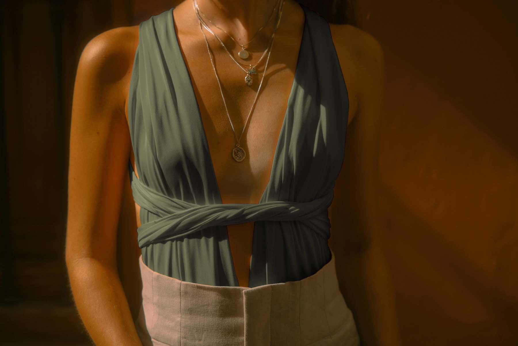 Verwandle deinen Badeanzug im Nu in ein Abend-Top. Einfach eine Hose oder hohen Rock kombinieren und schon hast du das perfekte Abend-Outfit.