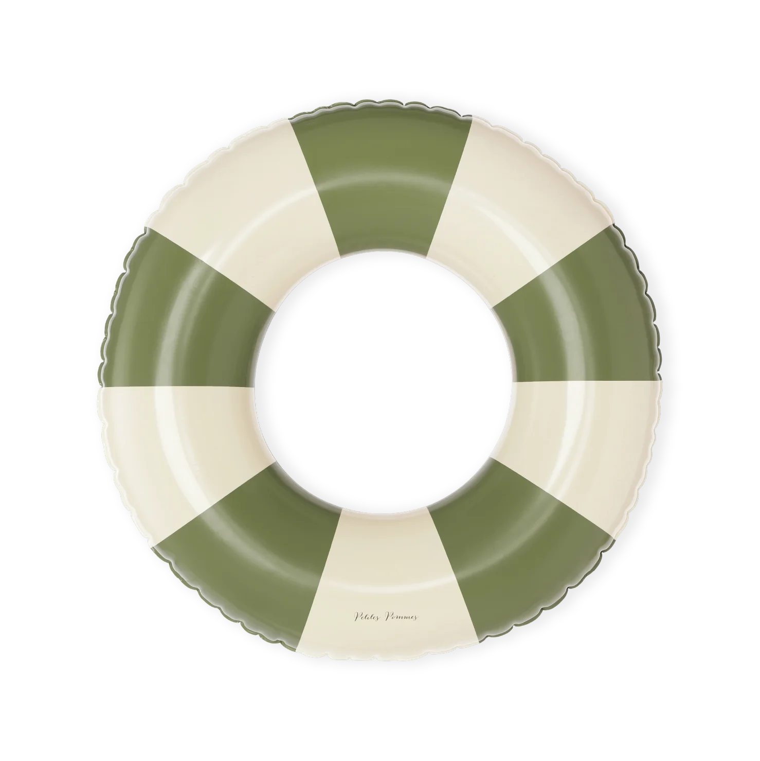 The Petites Pommes swim ring is a reborn childhood classic - made with the attention to detail we have strived to make it last for seasons. Our characteristic striped floats come in 4 different sizes for toddler to adult, and in a range of beautiful colours to complete any summer look!