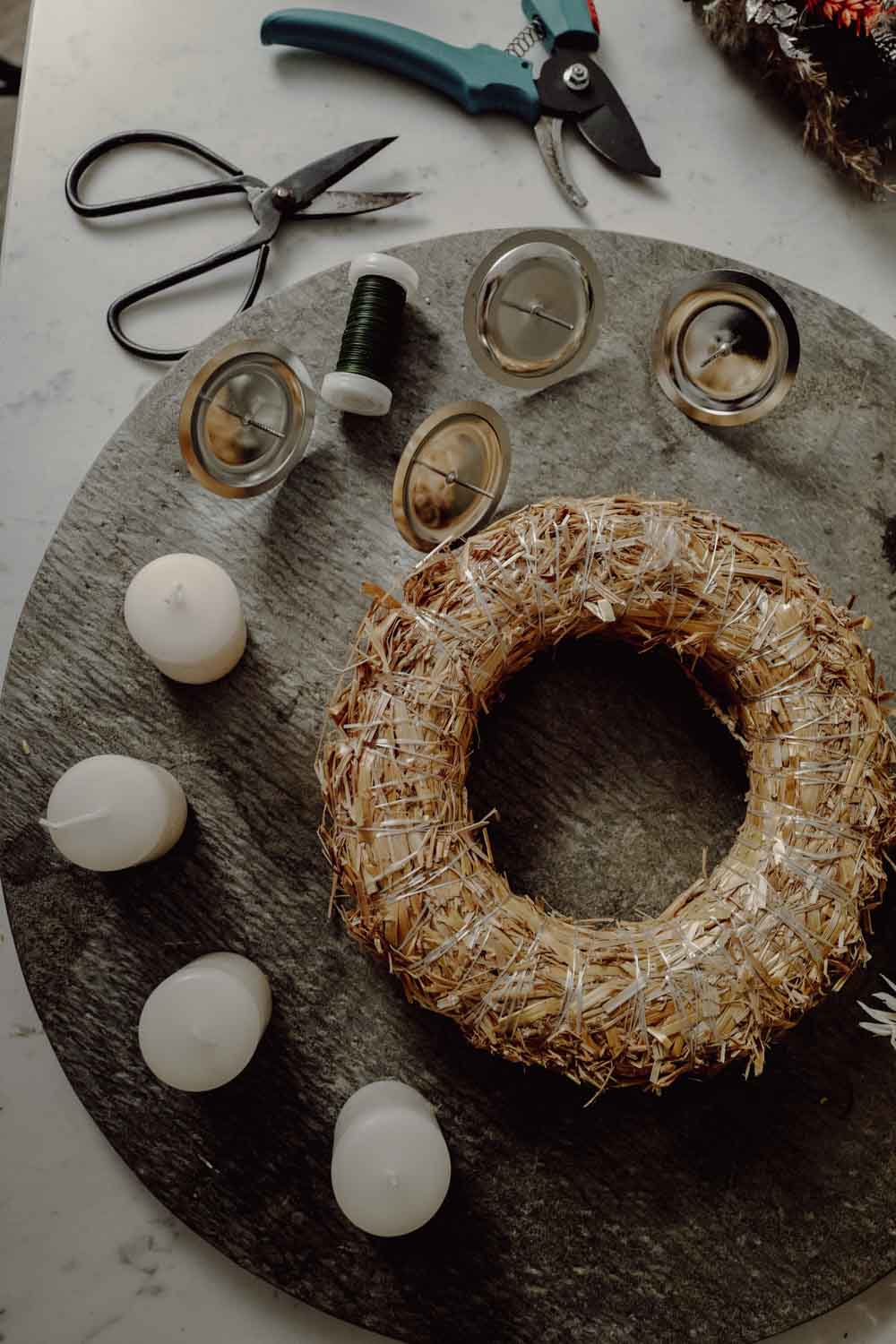 Der Adventskranz, der viele Jahre hält und auch als Tür- oder Wandkranz verwendet werden kann.
