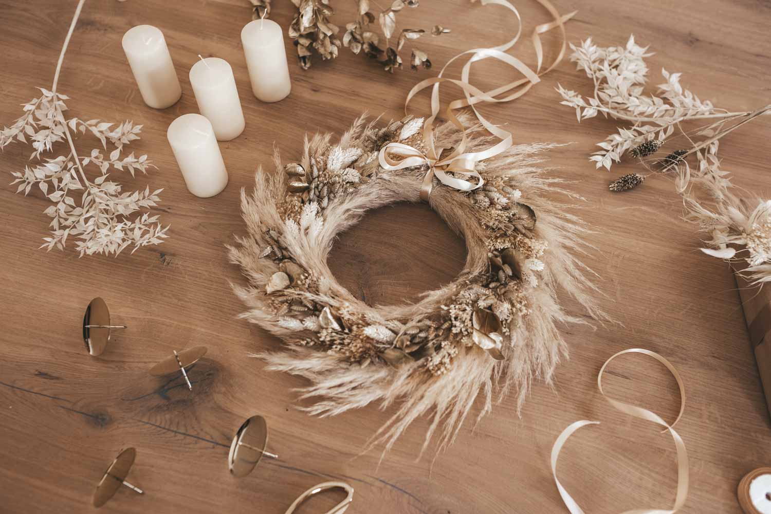 Binde gemeinsam mit den Flowergirls deinen eigenen Adventskranz aus Pampasgras und anderen Flower Elementen für die Ewigkeit. Lerne mit Dried Flowers kreativ zu werden und zaubere zugleich die perfekte Christmas Dekoration für dein Zuhause.