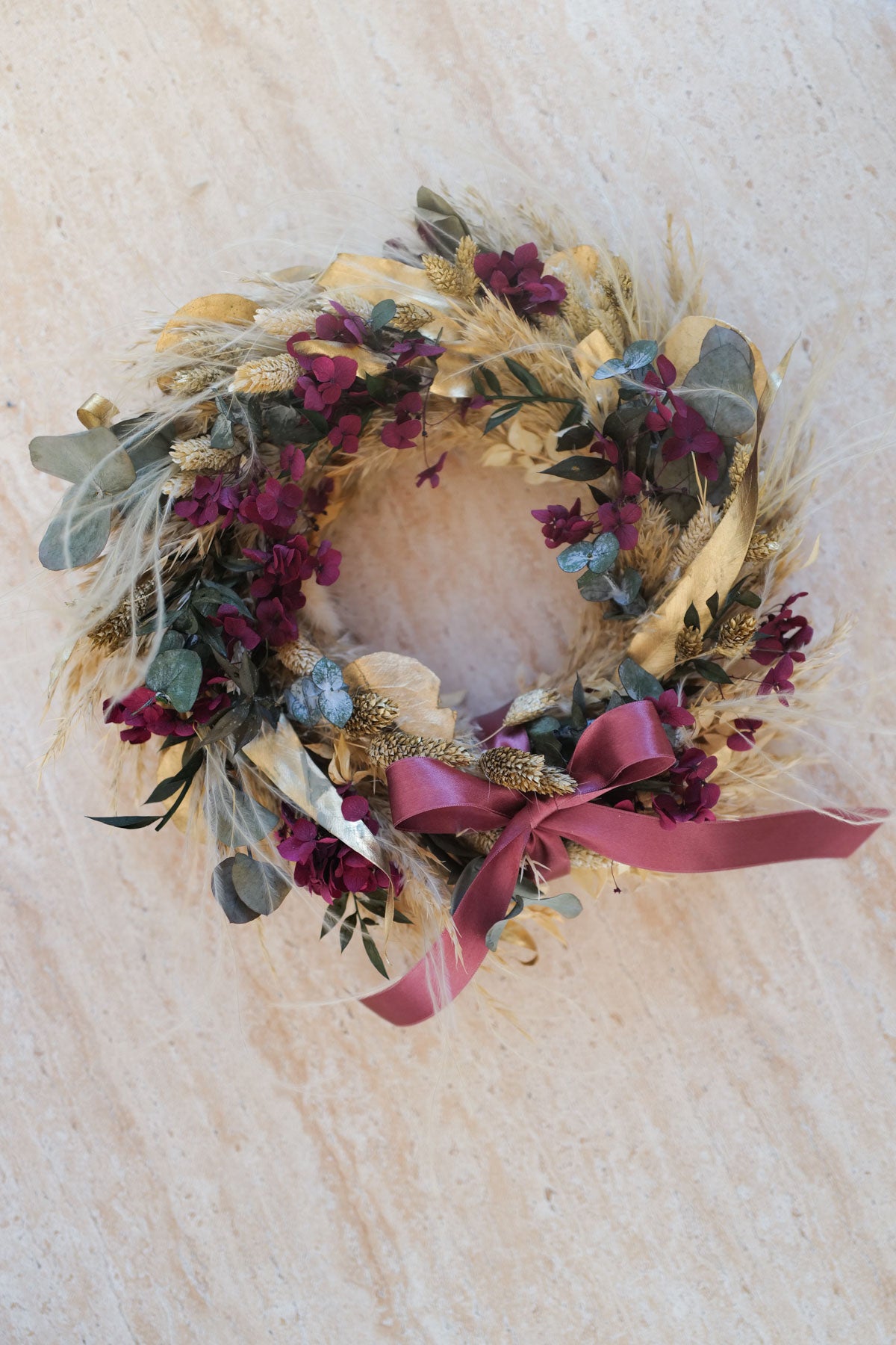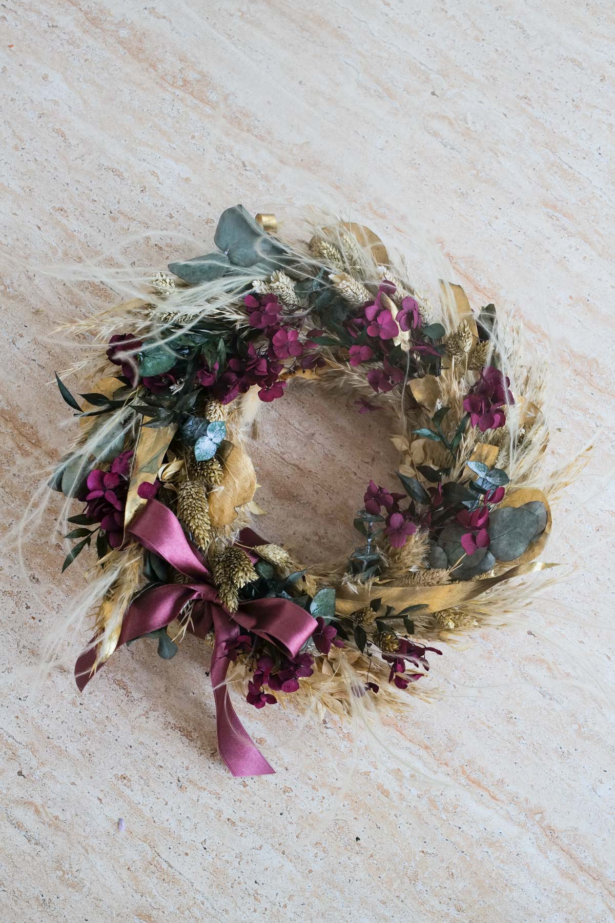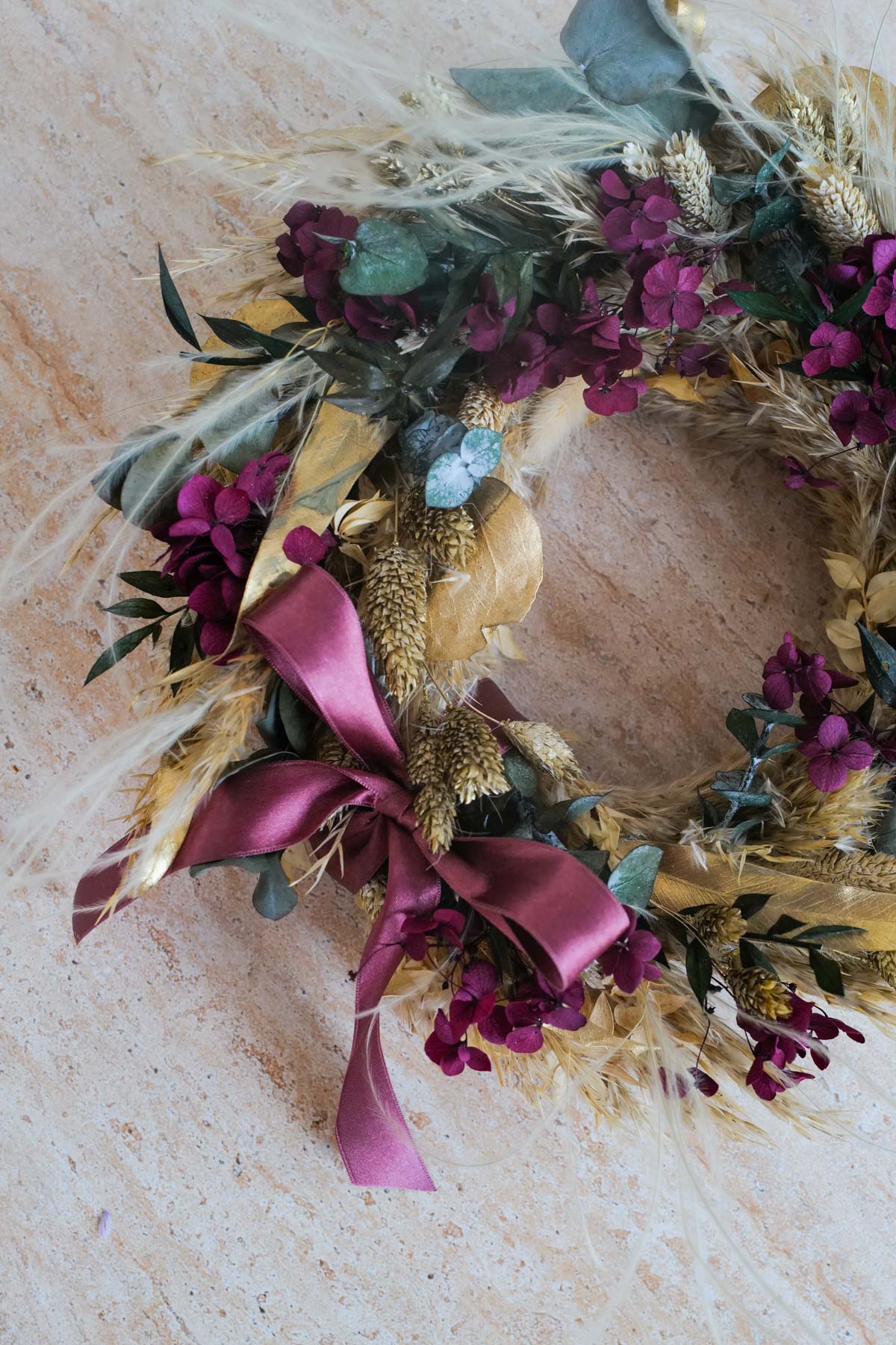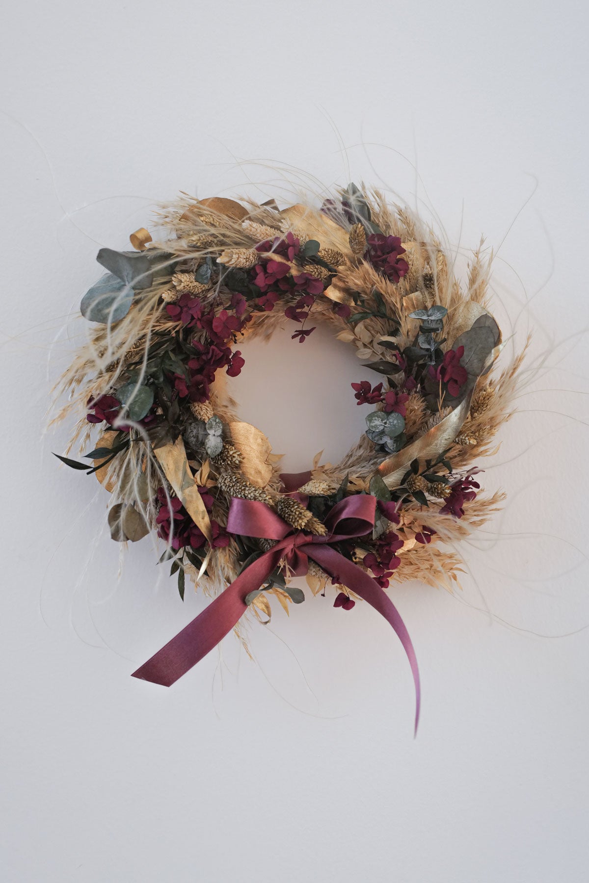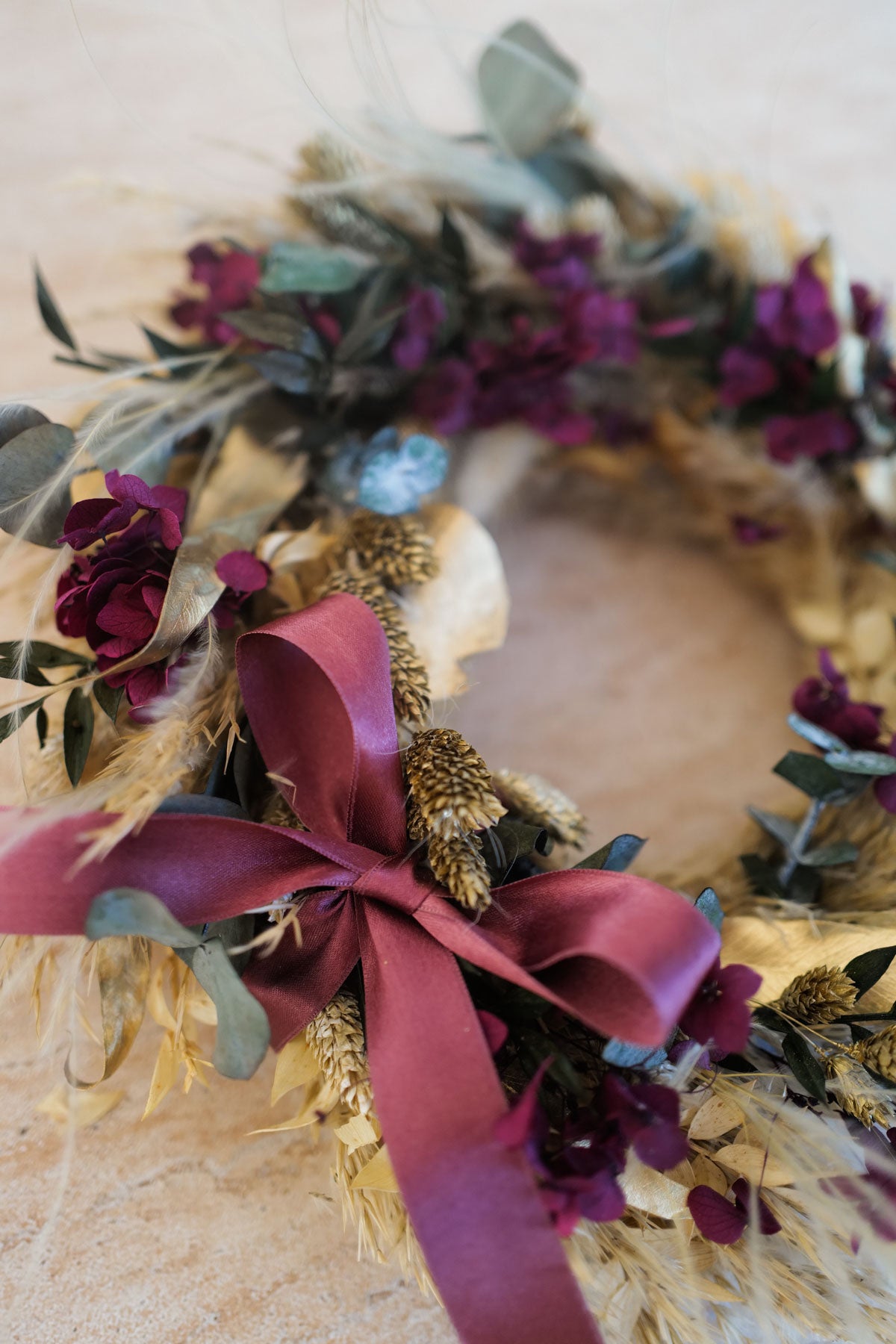 Hochwertig getrocknete und konservierte Blüten, Gräser und Blätter lassen unsere Kränze viele Weihnachts-Saisonen erblühen. Denn sie verlieren weder Volumen noch die Farbe.