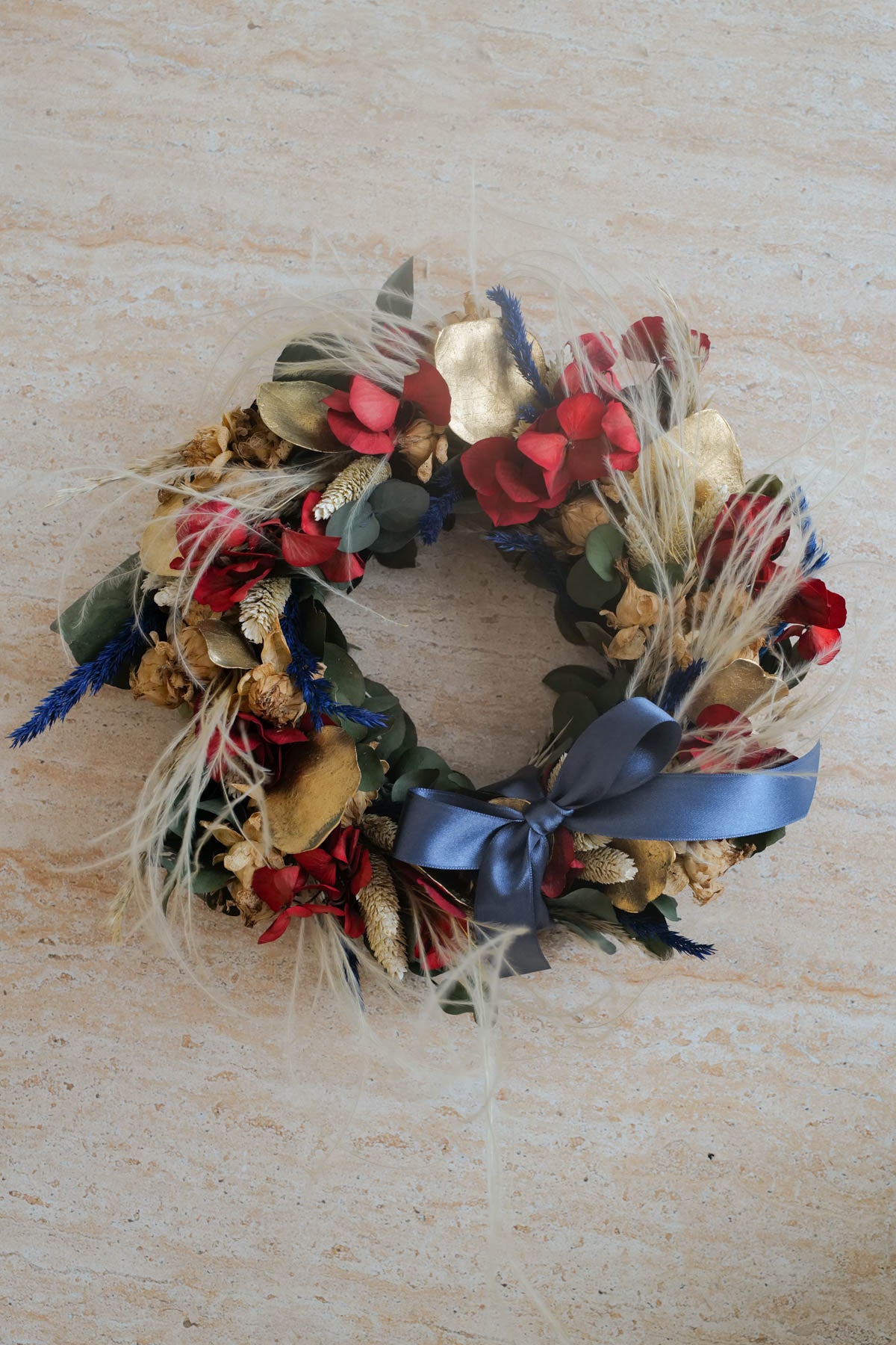 Hochwertig getrocknete und konservierte Blüten, Gräser und Blätter lassen unsere Kränze viele Weihnachts-Saisonen erblühen. Denn sie verlieren weder Volumen noch die Farbe.