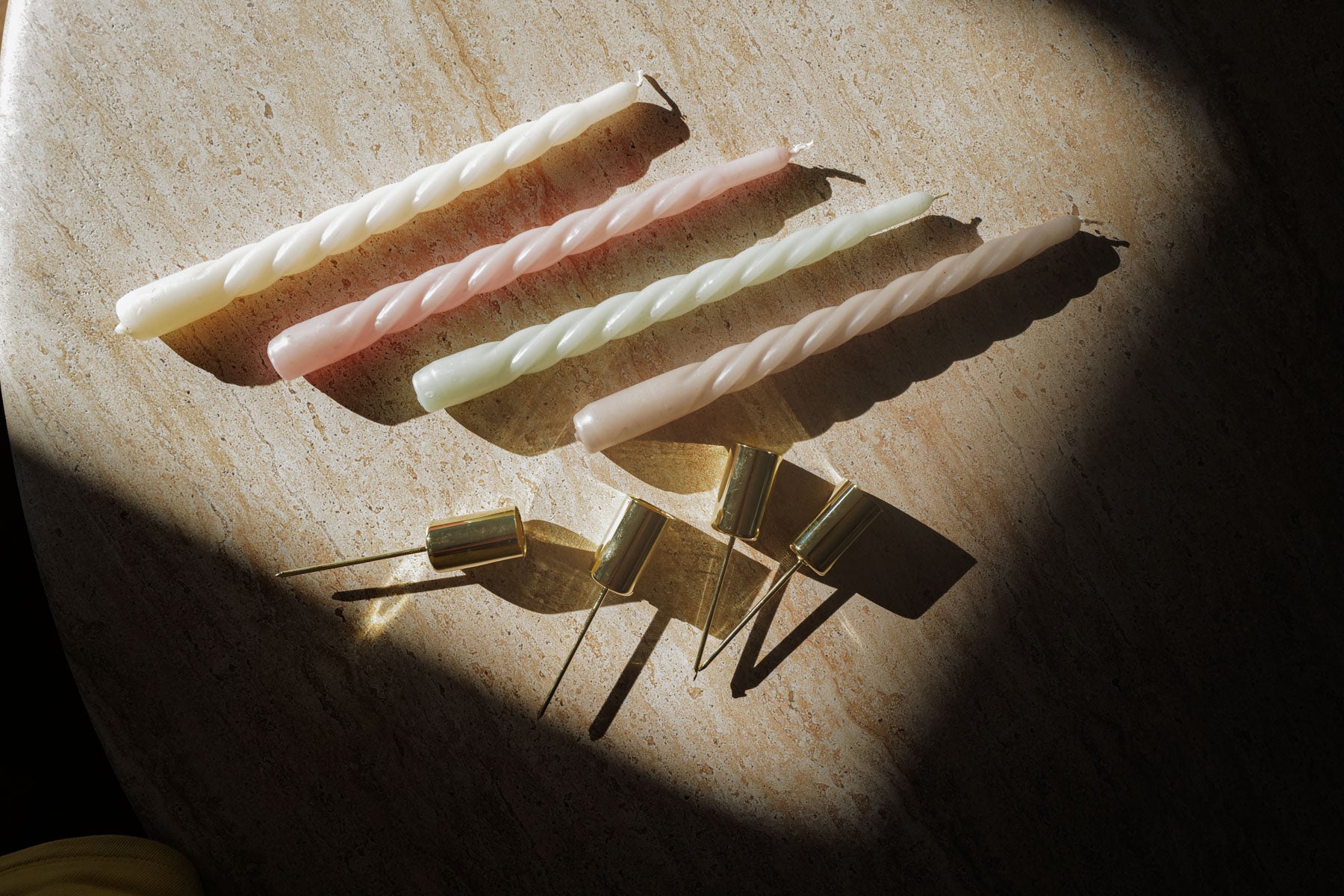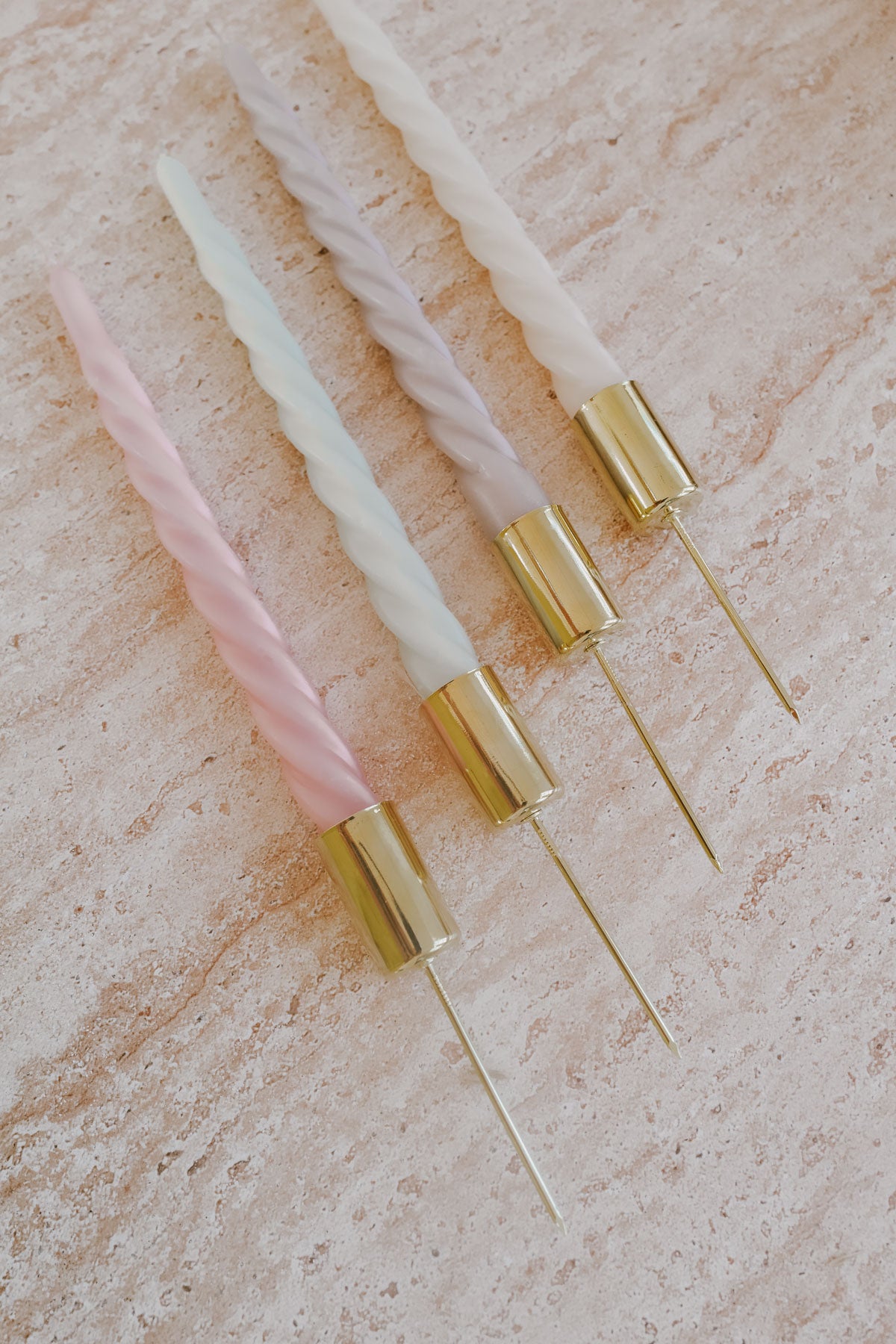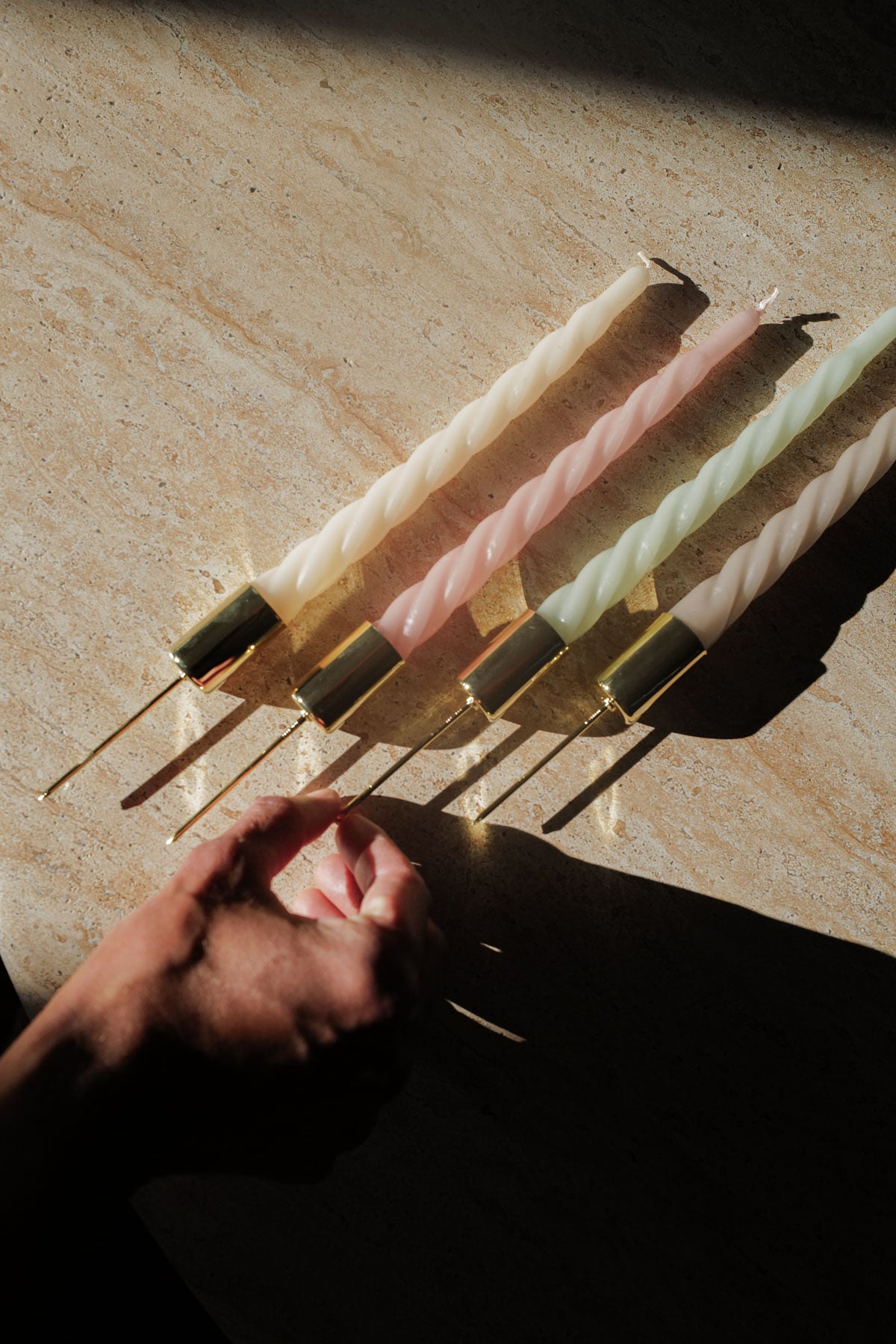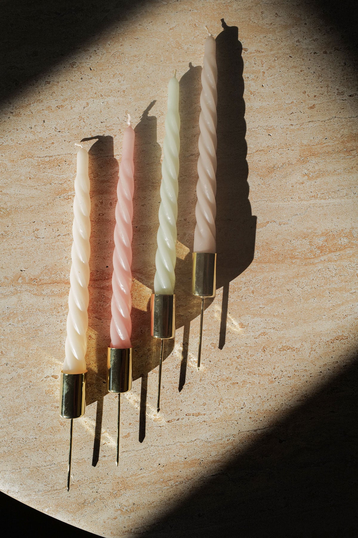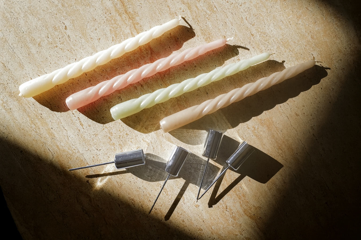 - 4 Stück bunte pastellfarbene Stabkerzen aus Wachs (gedreht)