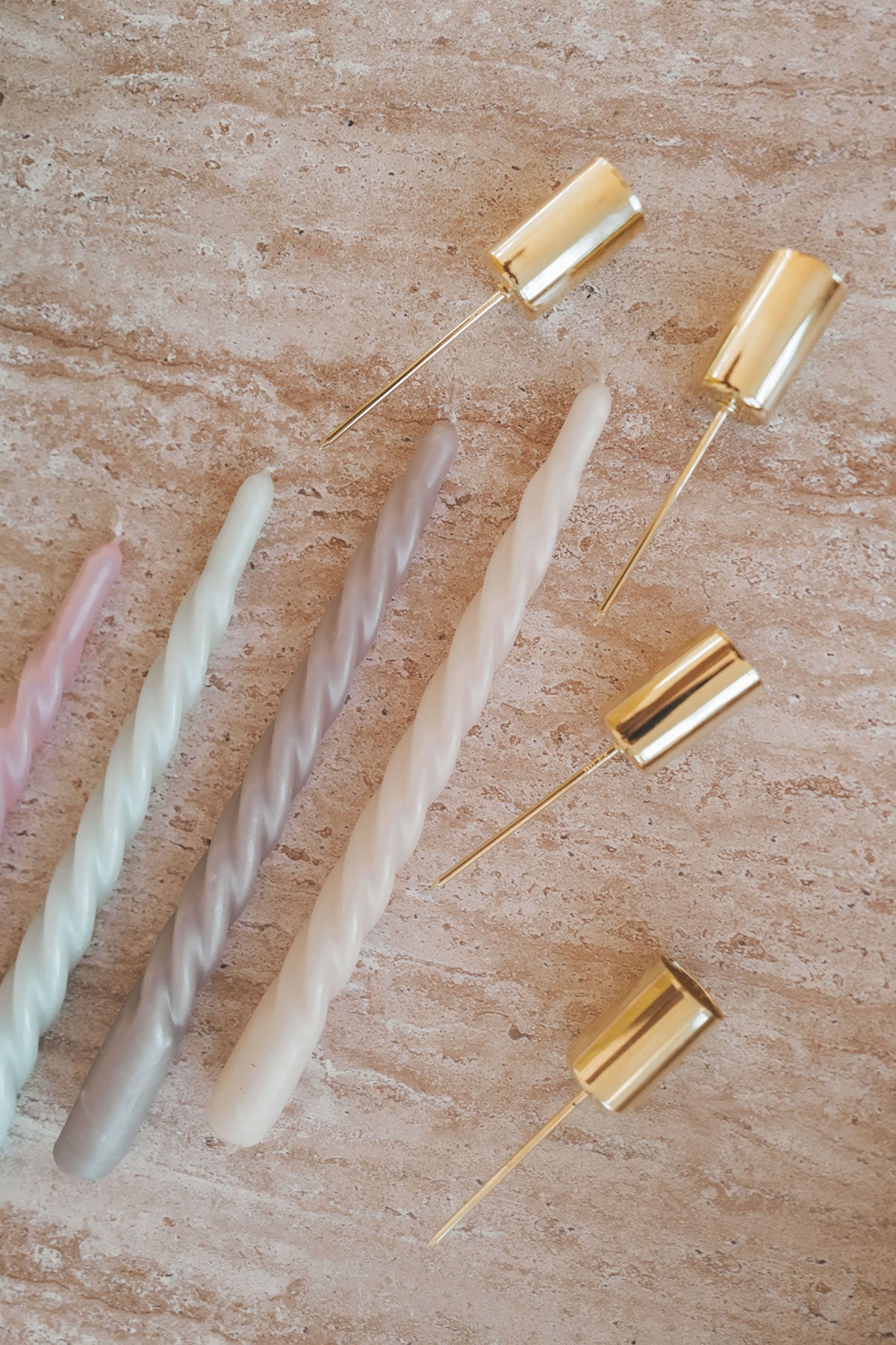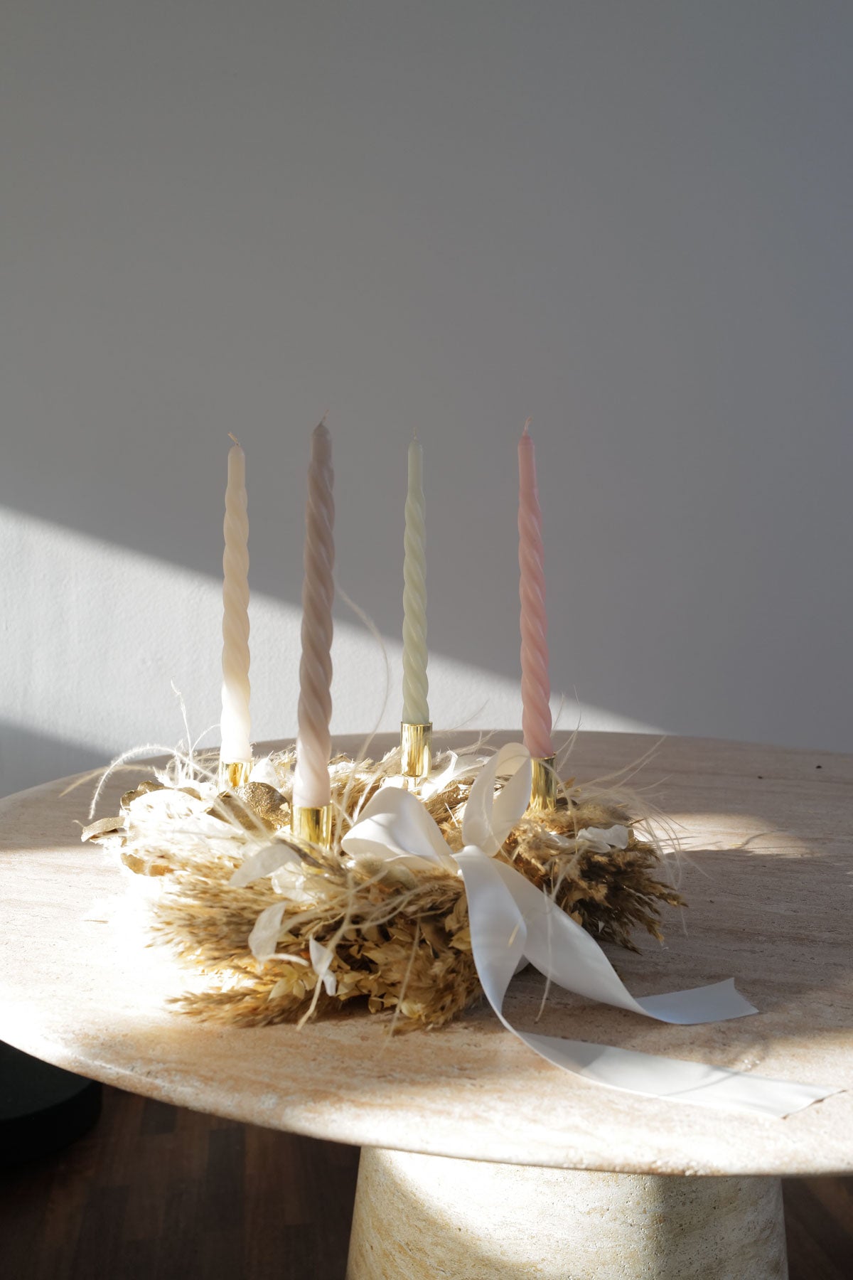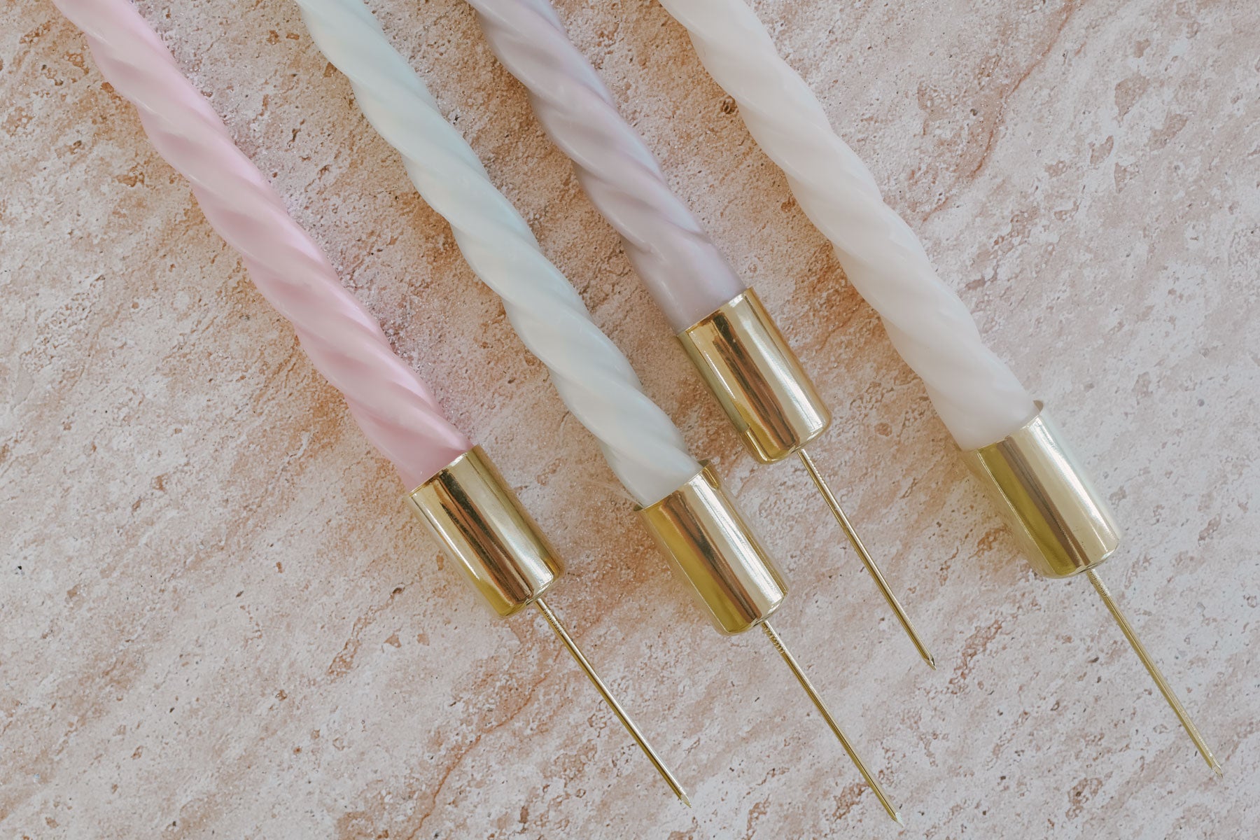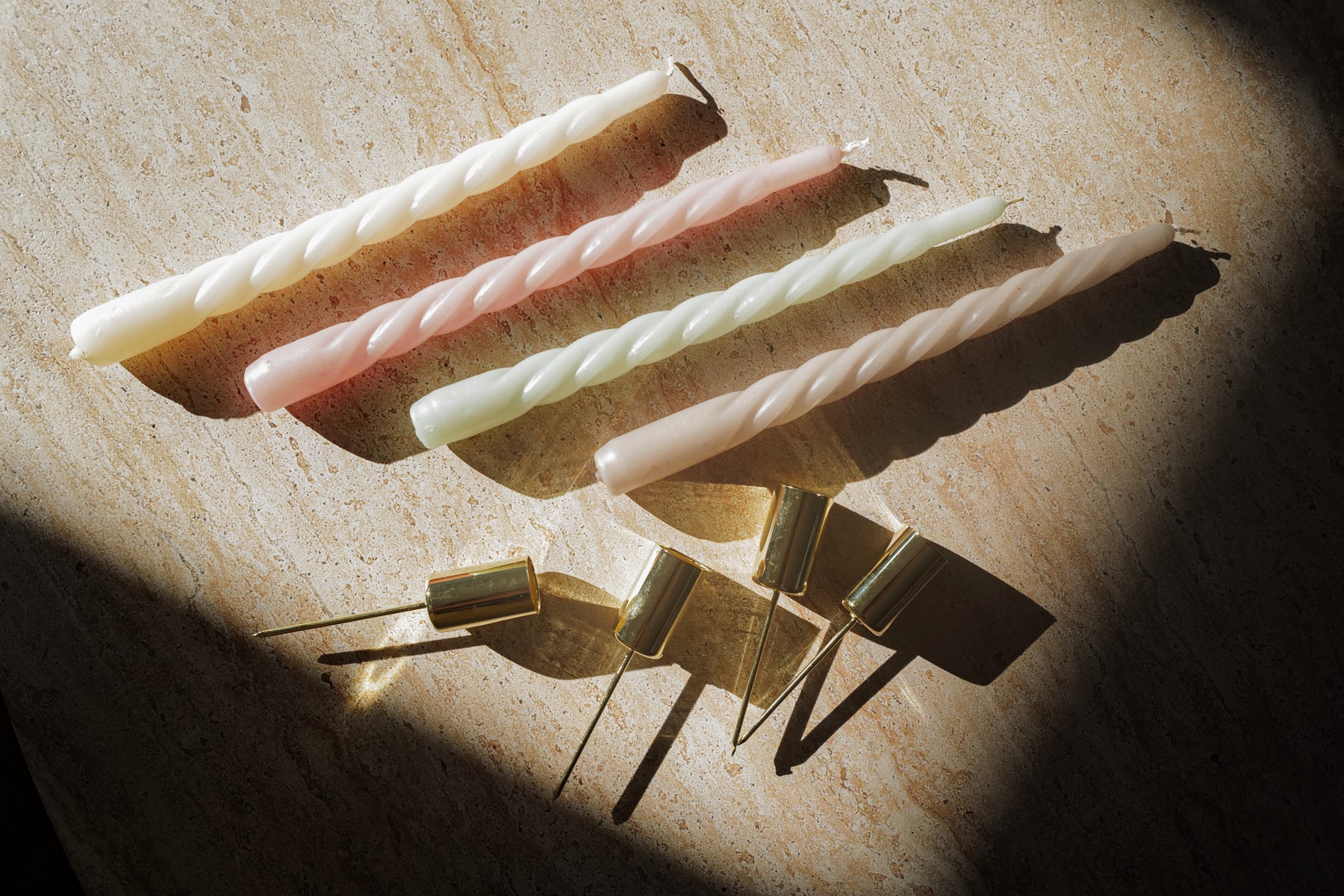 - 4 Stück bunte pastellfarbene Stabkerzen aus Wachs (gedreht)