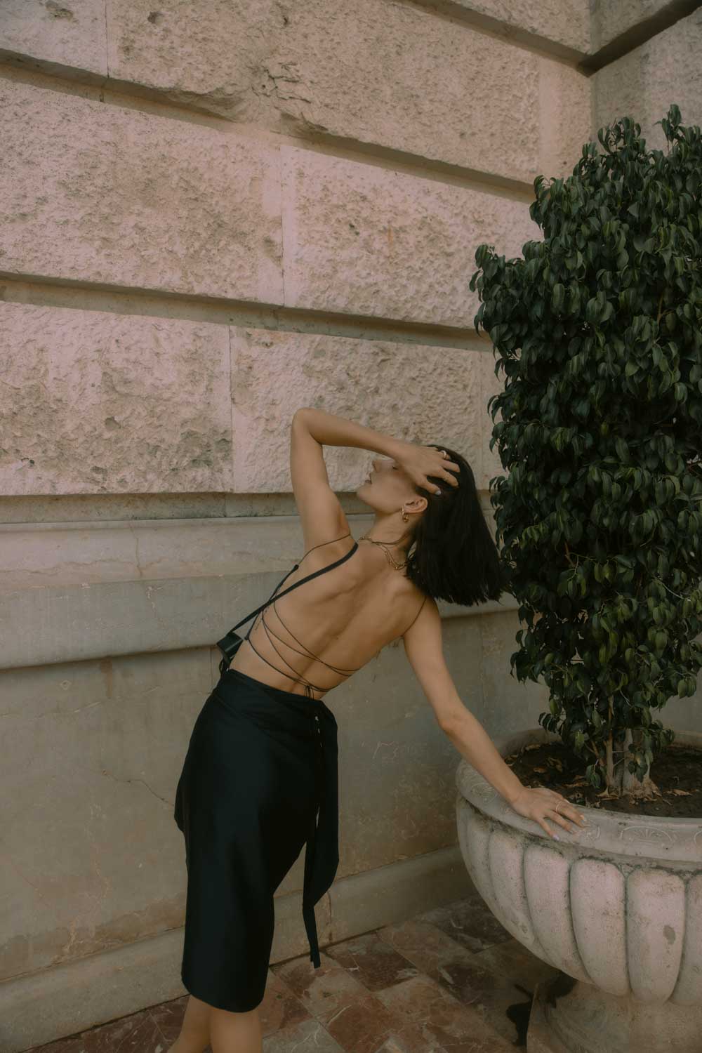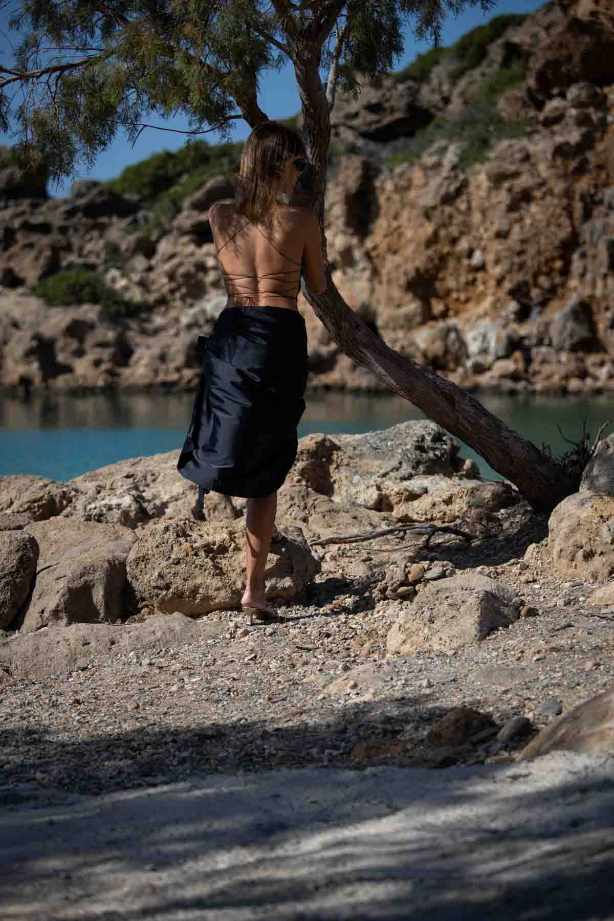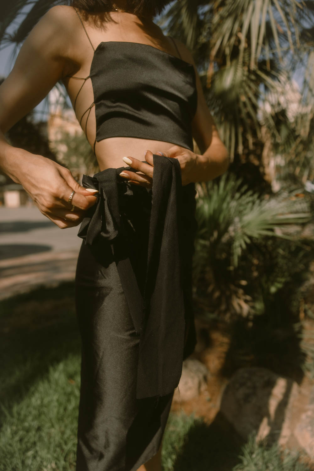 Die Idee zur »Valencia - Capsule Collection« kam uns im Designprozess unserer Swimwear-Line. Wir wollten einen Wickelrock zu den Wickelbadeanzügen entwerfen, der den Swimsuit im Nu in ein Outfit verwandelt. Gemeinsam mit Sabrina, Gründerin des Wiener Taschenlabels SABORKA, tüftelten wir an Schnitt, Länge, Material und Verarbeitung um den perfekten Wickelrock für jeden Shape zu entwerfen. Im Designprozess entstanden dann plötzlich unser fließendes Hängerchen-Dress zum Binden und das Schnürtop in Satin und aus veganem Leder.
