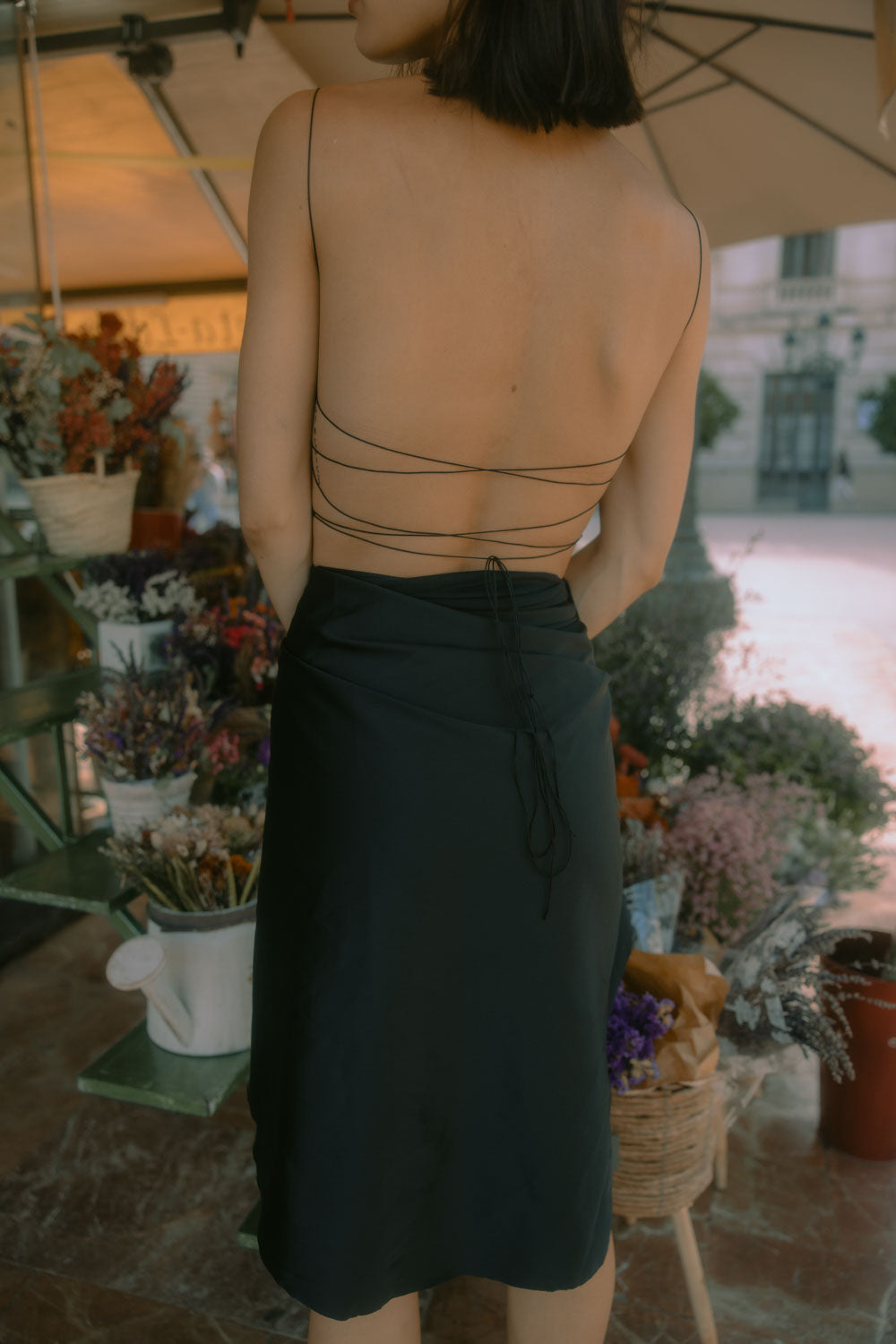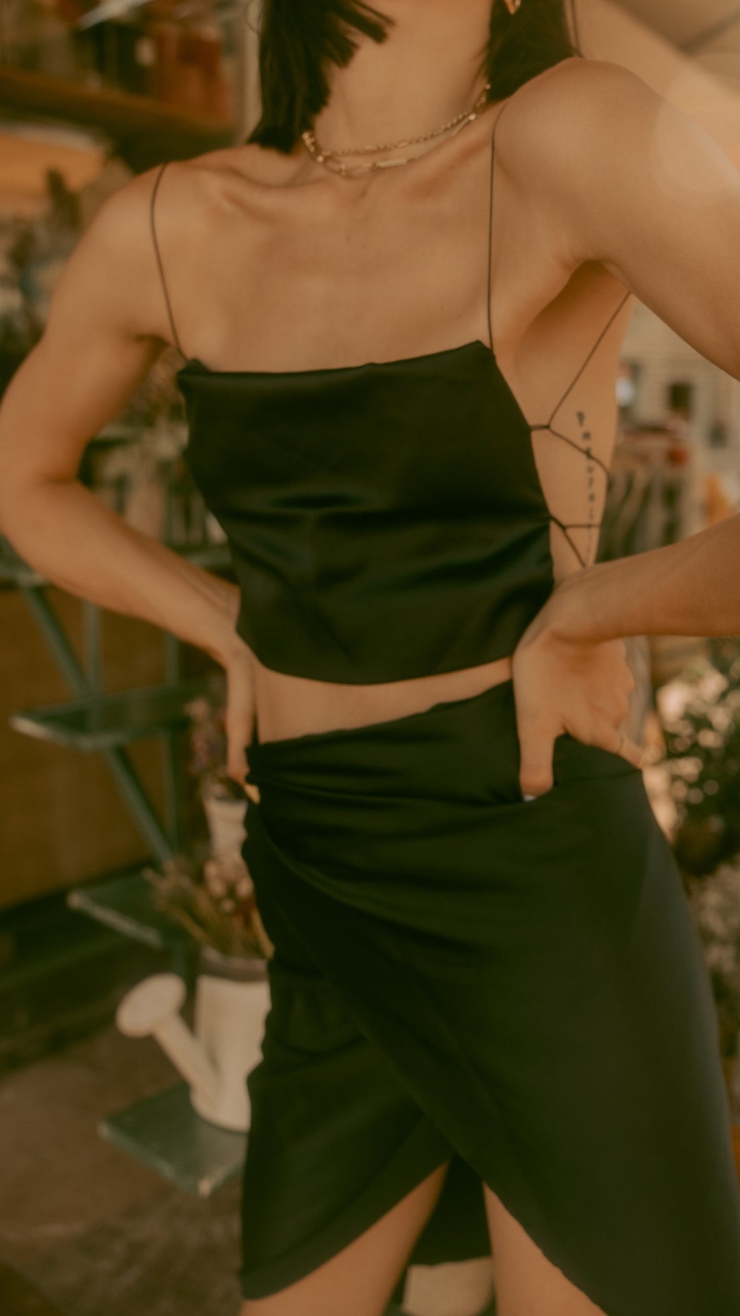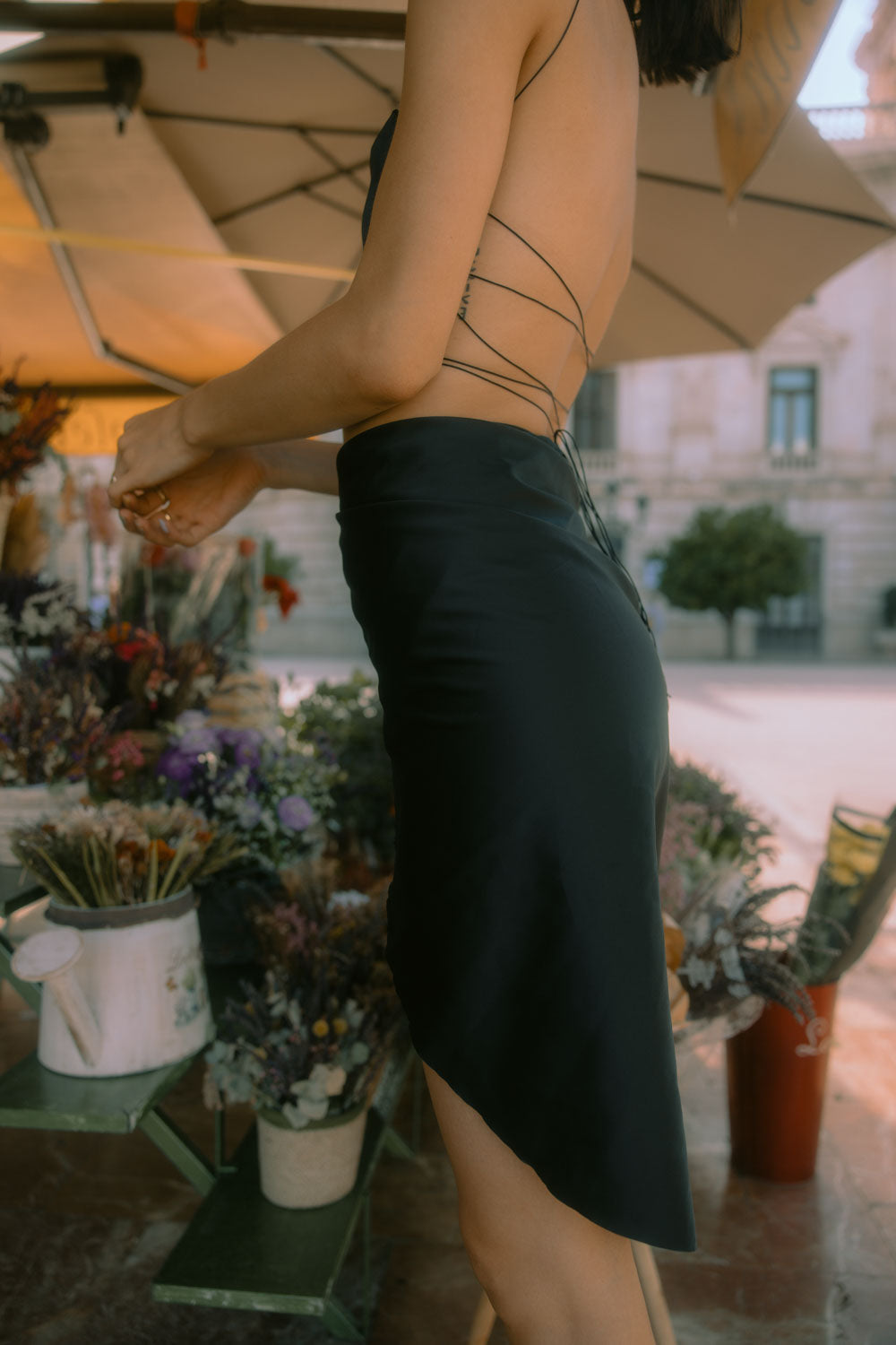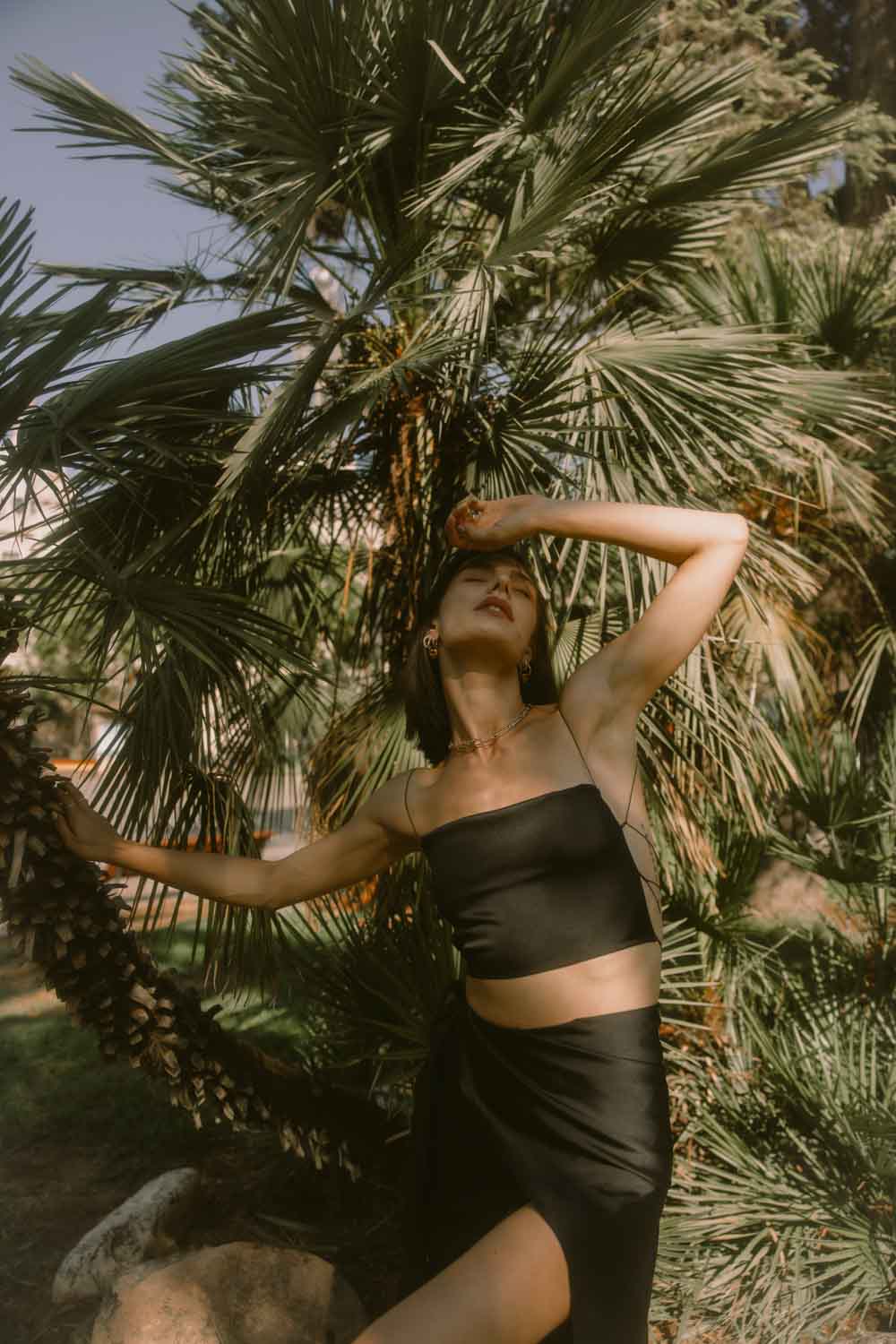 Die Idee zur »Valencia - Capsule Collection« kam uns im Designprozess unserer Swimwear-Line. Wir wollten einen Wickelrock zu den Wickelbadeanzügen entwerfen, der den Swimsuit im Nu in ein Outfit verwandelt. Gemeinsam mit Sabrina, Gründerin des Wiener Taschenlabels SABORKA, tüftelten wir an Schnitt, Länge, Material und Verarbeitung um den perfekten Wickelrock für jeden Shape zu entwerfen. Im Designprozess entstanden dann plötzlich unser fließendes Hängerchen-Dress zum Binden und das Schnürtop in Satin und aus veganem Leder.