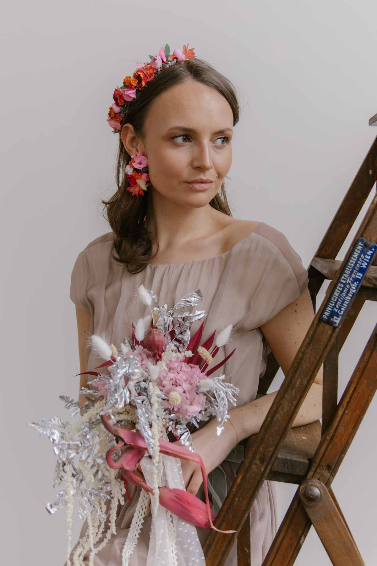 All pieces from We Are Flowergirls are handmade in Vienna and will last a lifetime. The accessories and flower creations are all unique and each piece is therefore only available once. The designs, colors and sizes are made as shown in the pictures - however, each piece is individually handmade and may differ in small details.